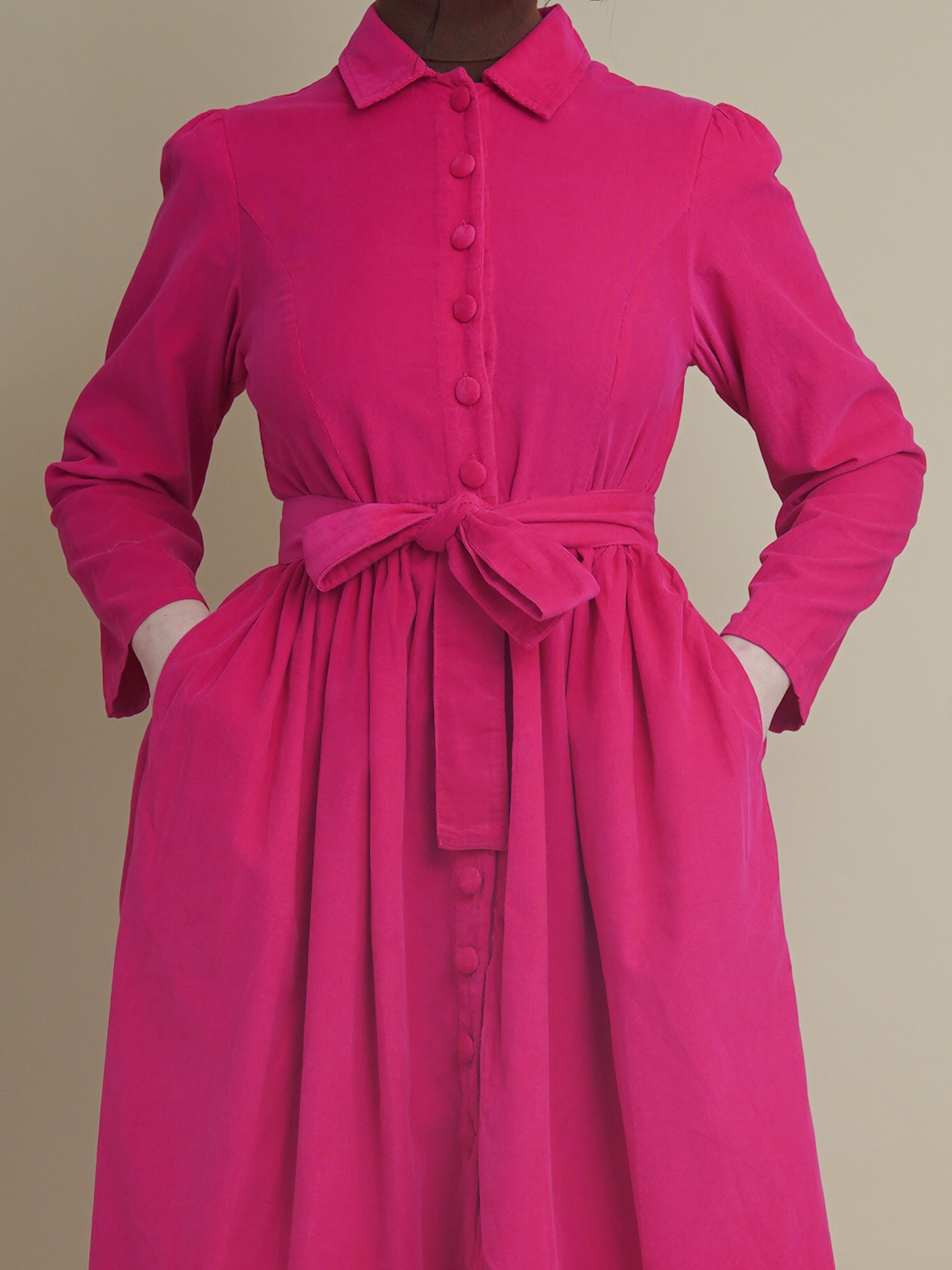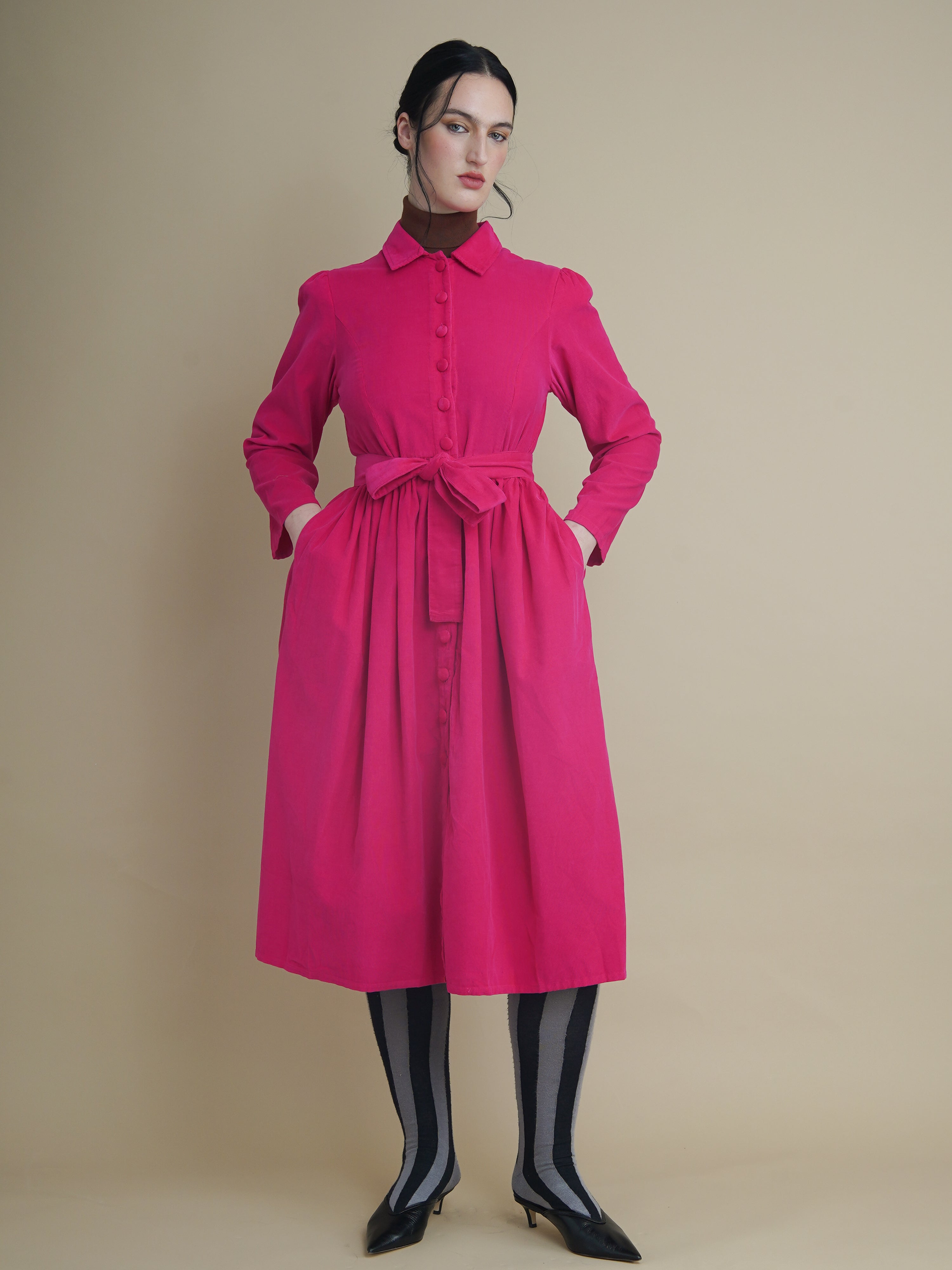 1 reviewPeju Hot Pink Needlecord Shirt Dress