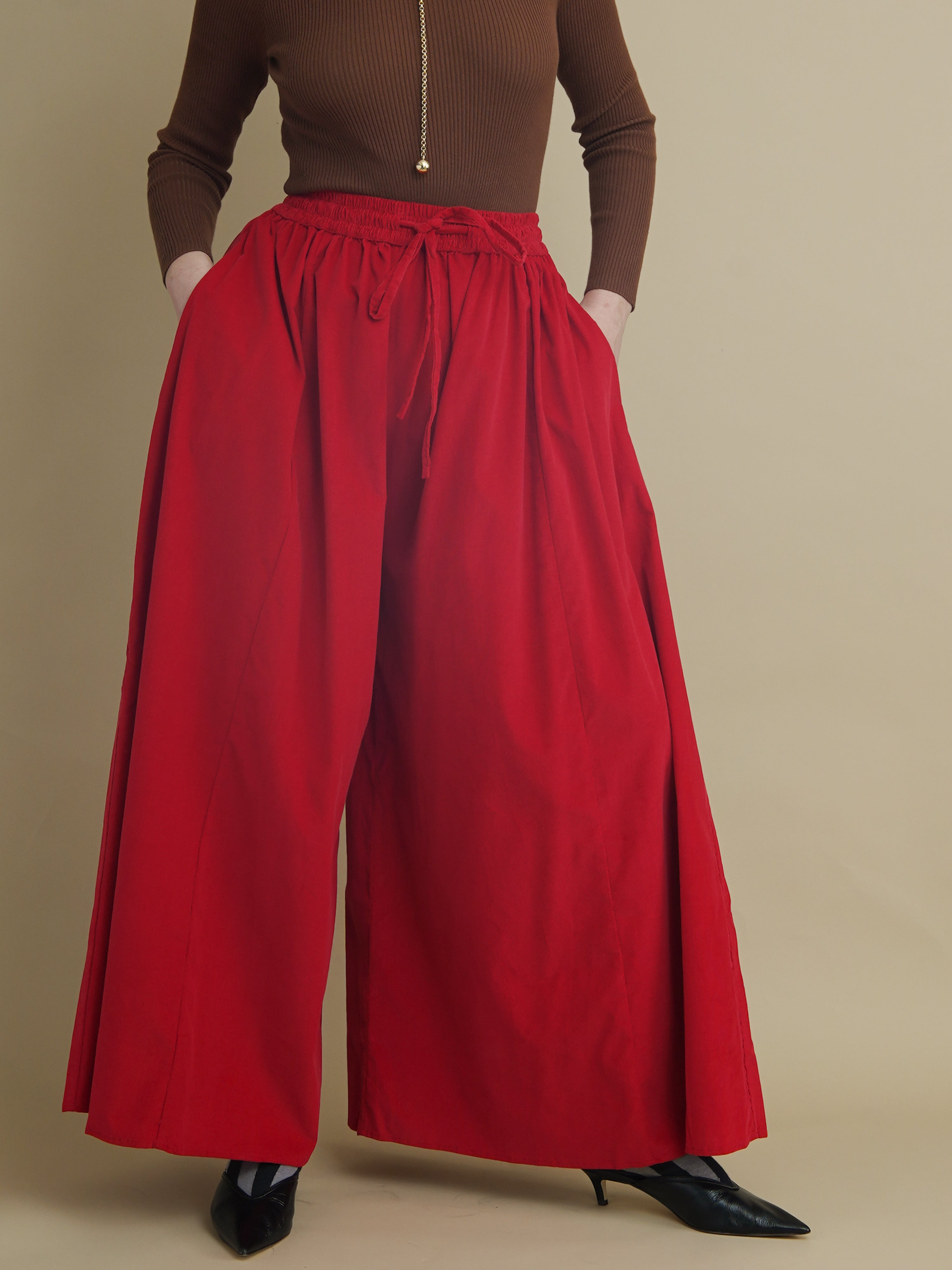 Charlie Red Corduroy Wide-Leg Palazzo Pants