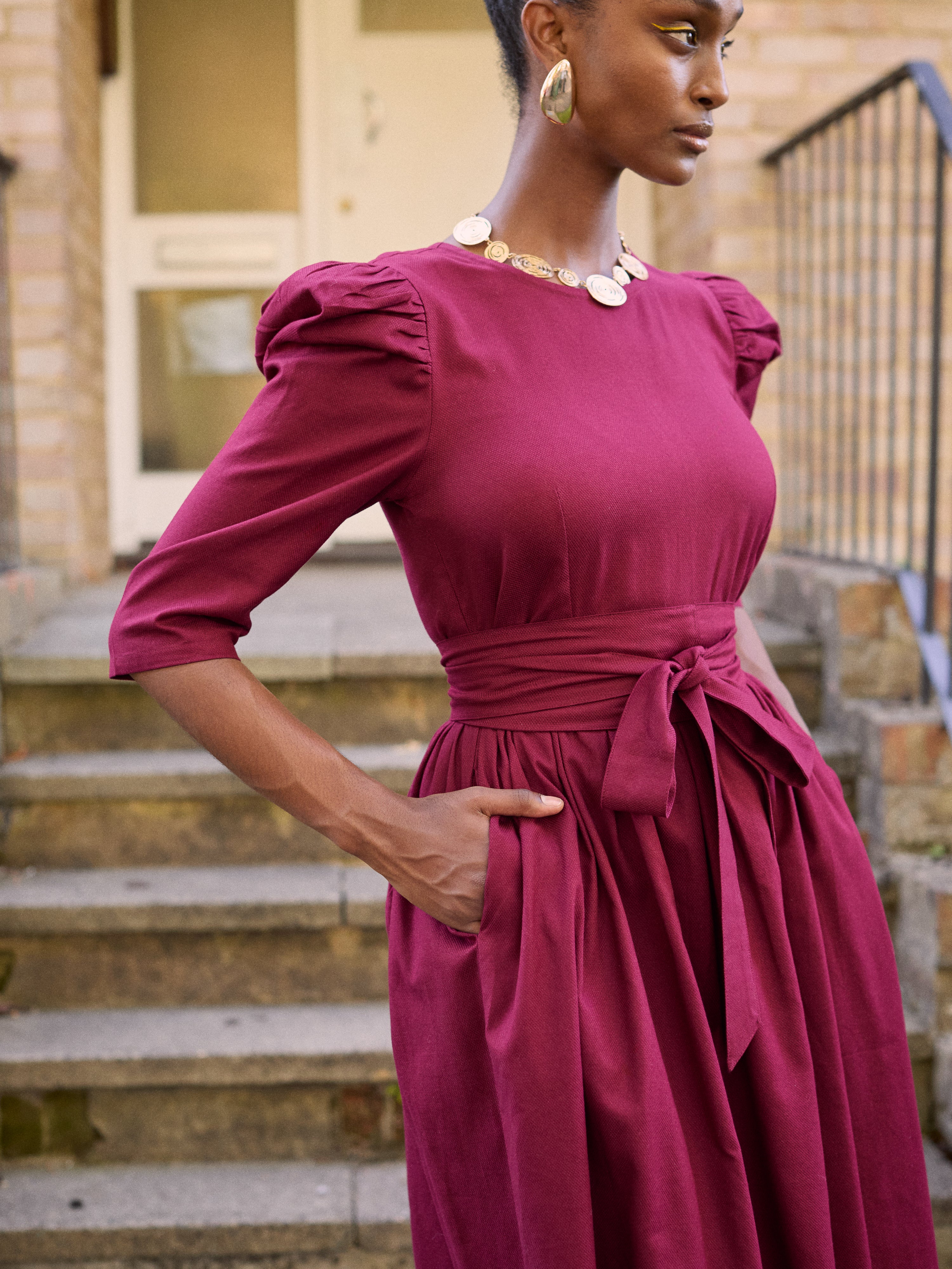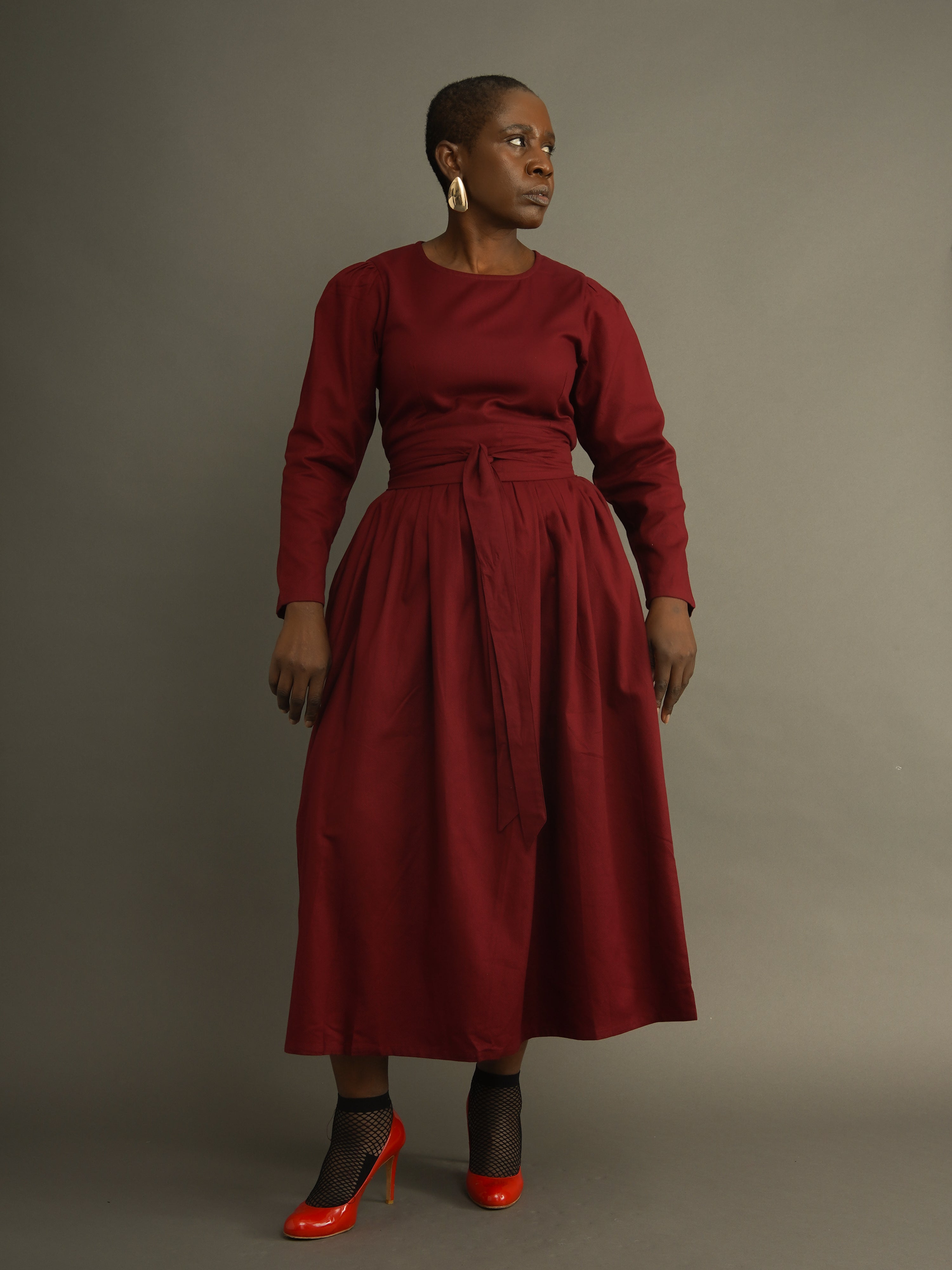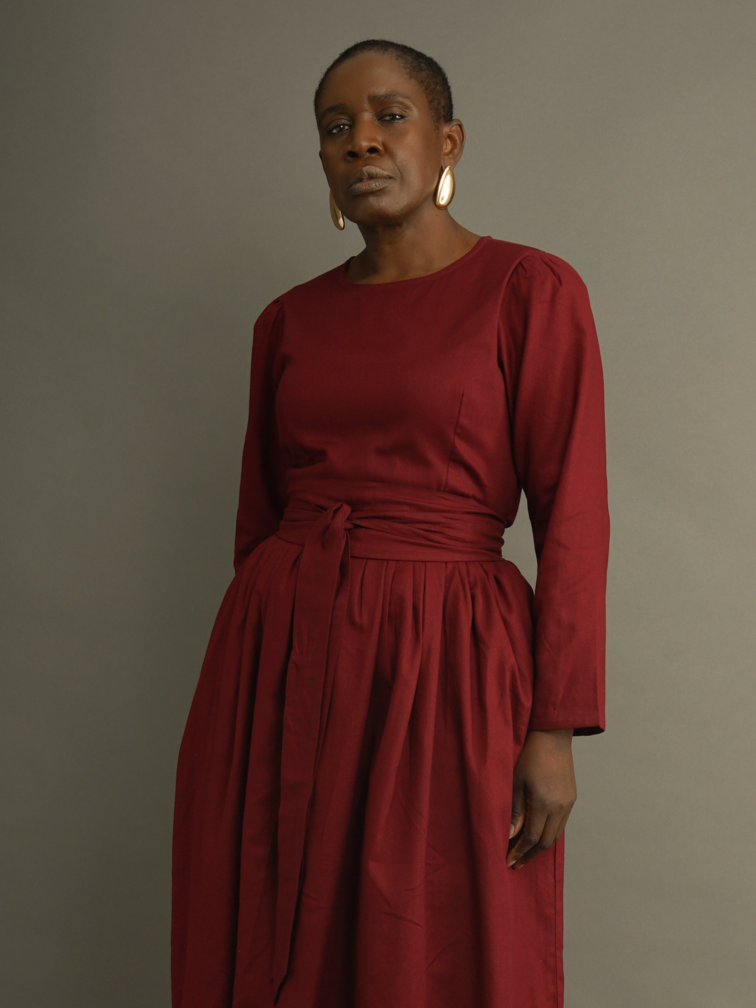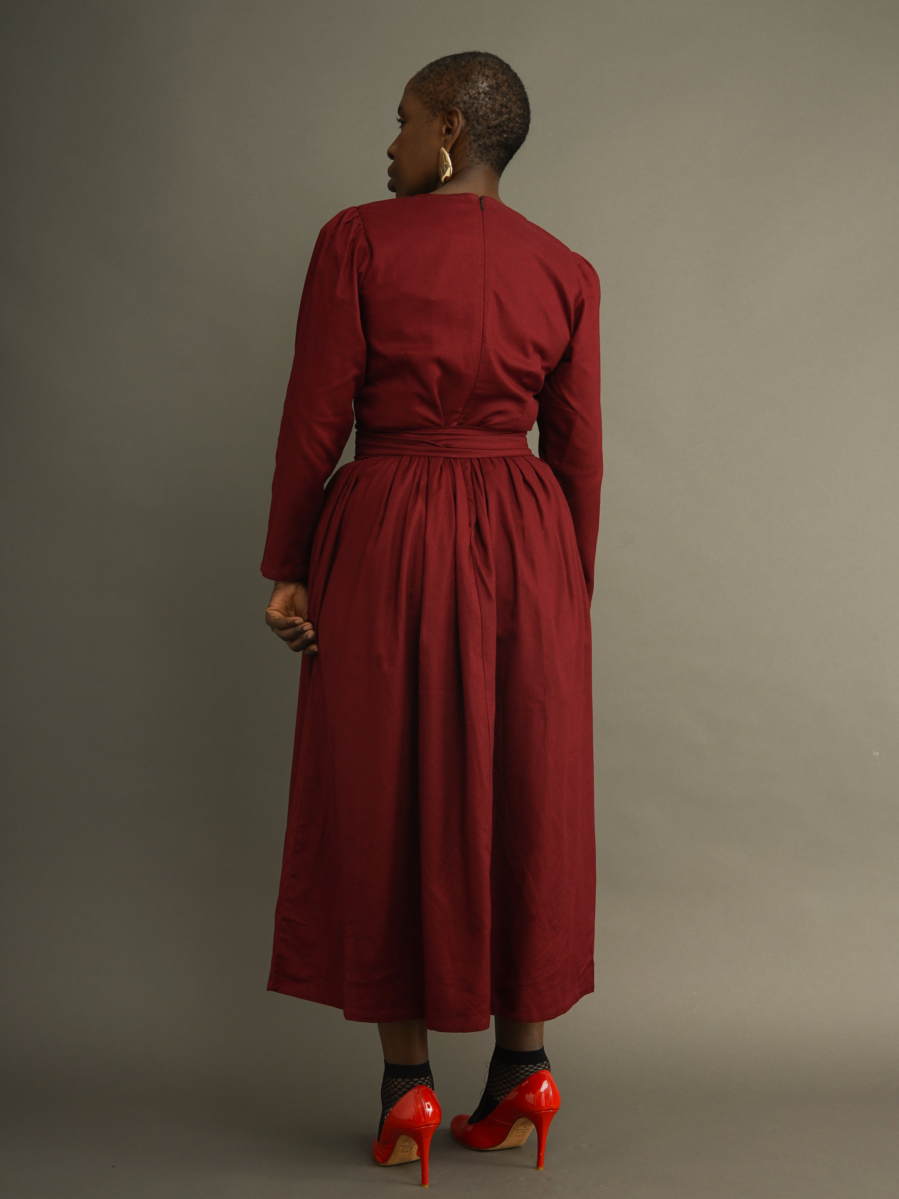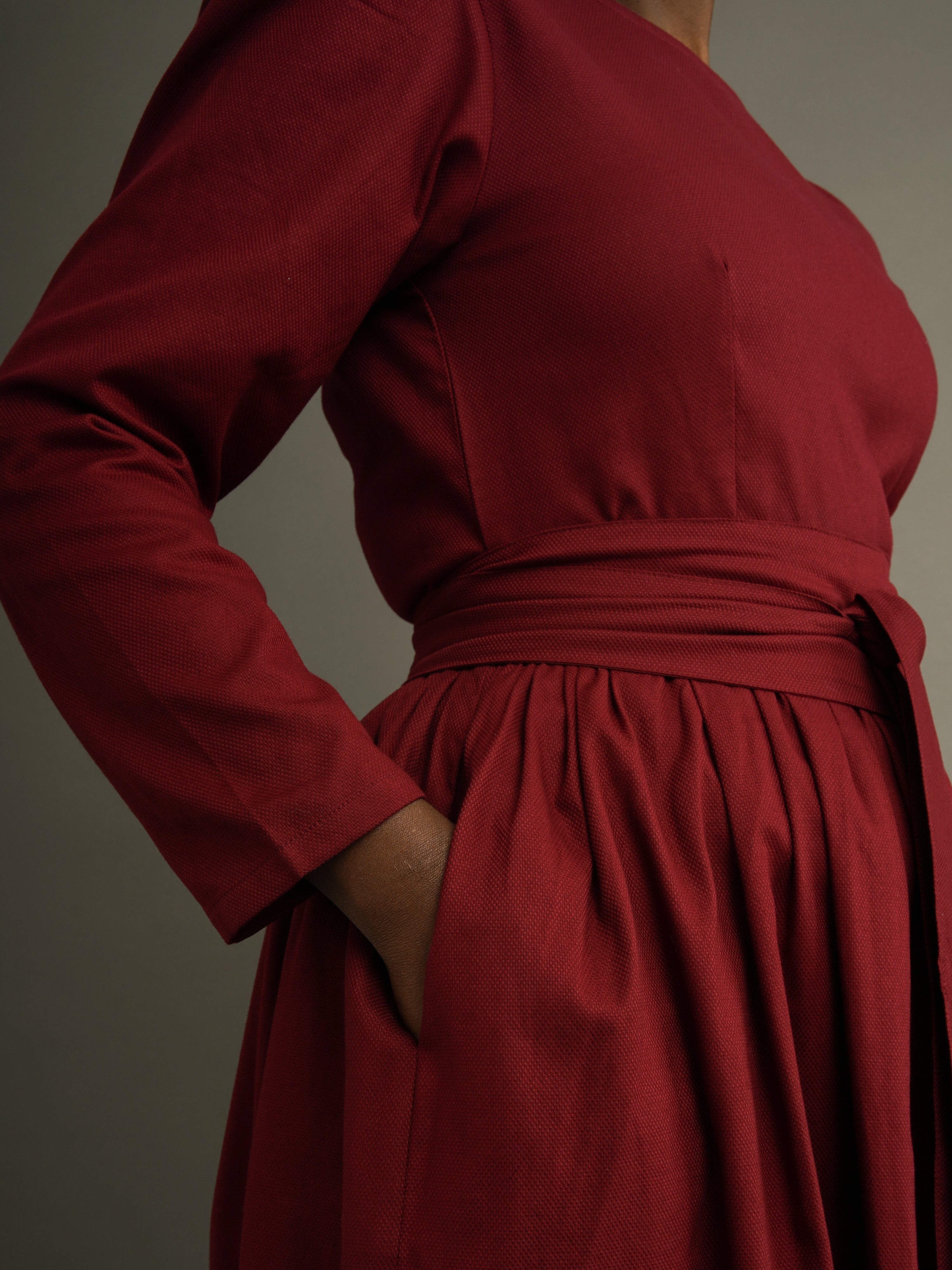 The Amina Dress — Heavy Dobby Edition in Burgundy