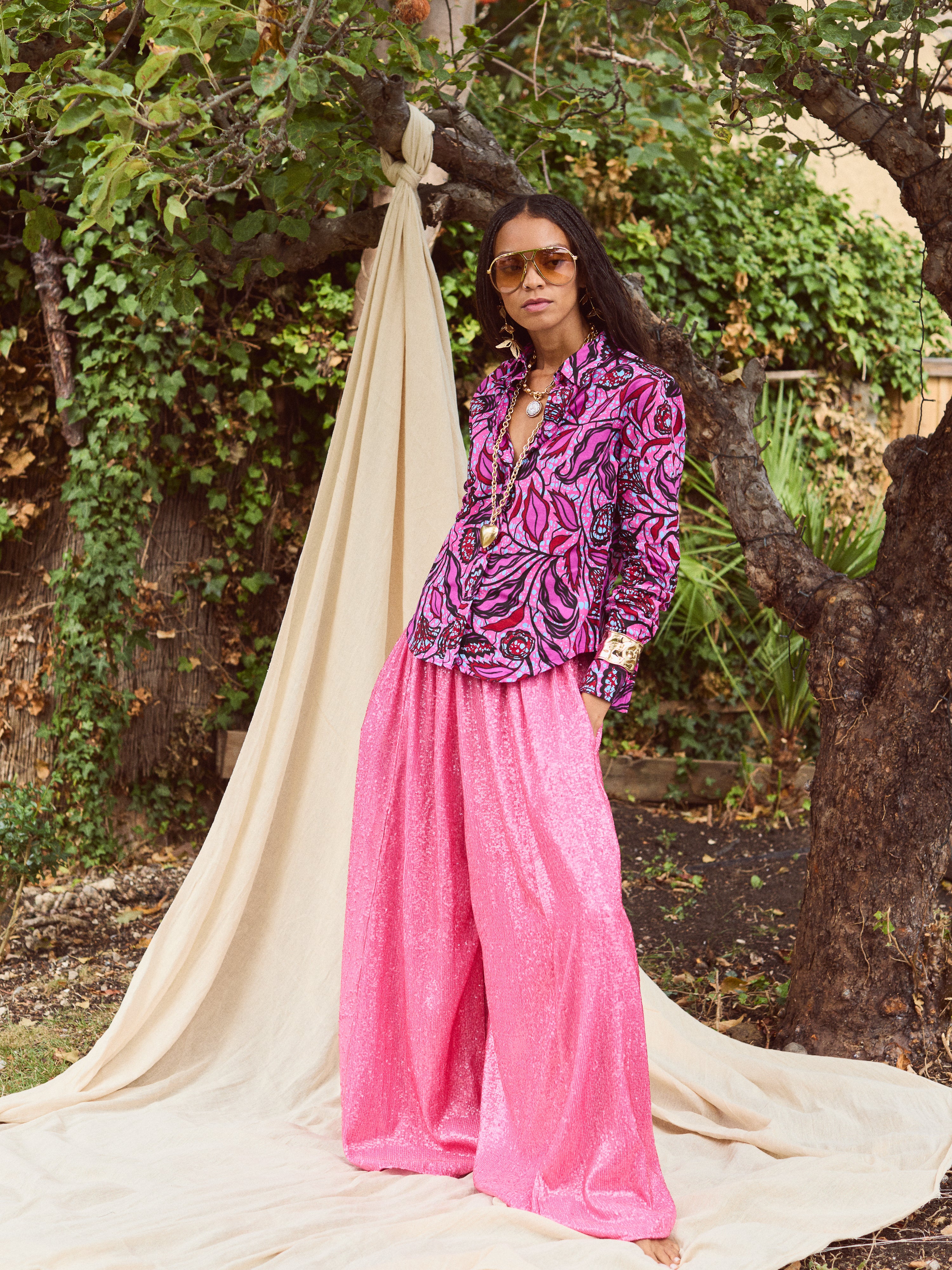 1 reviewCharlie Red Corduroy Wide-Leg Palazzo Pants