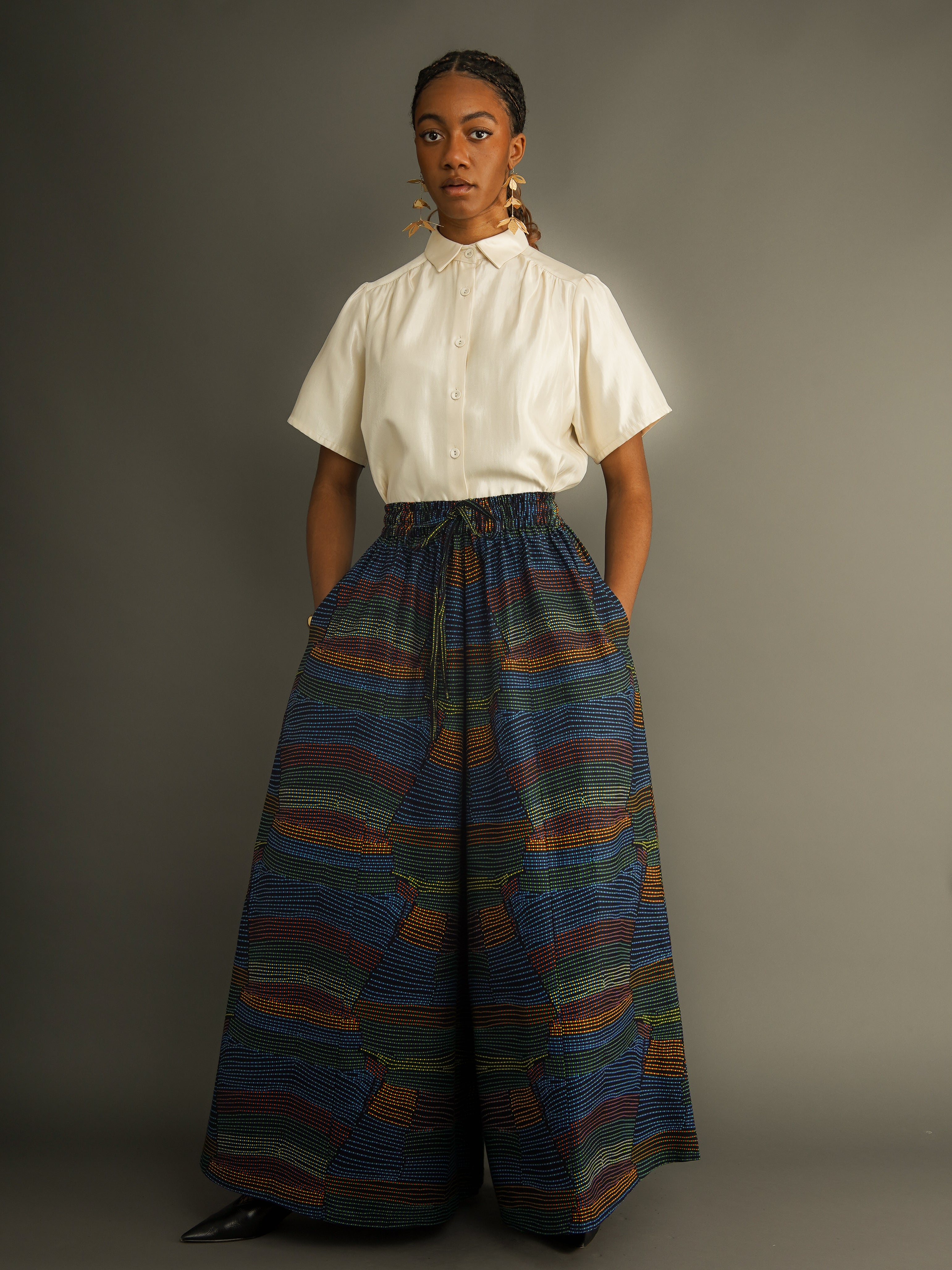 Each pair is handmade in Surulere, Lagos, by our trusted seamstress, supporting skilled, small-scale craftsmanship rather than factory production. The result is a garment made with care, intention, and respect for the people behind it.