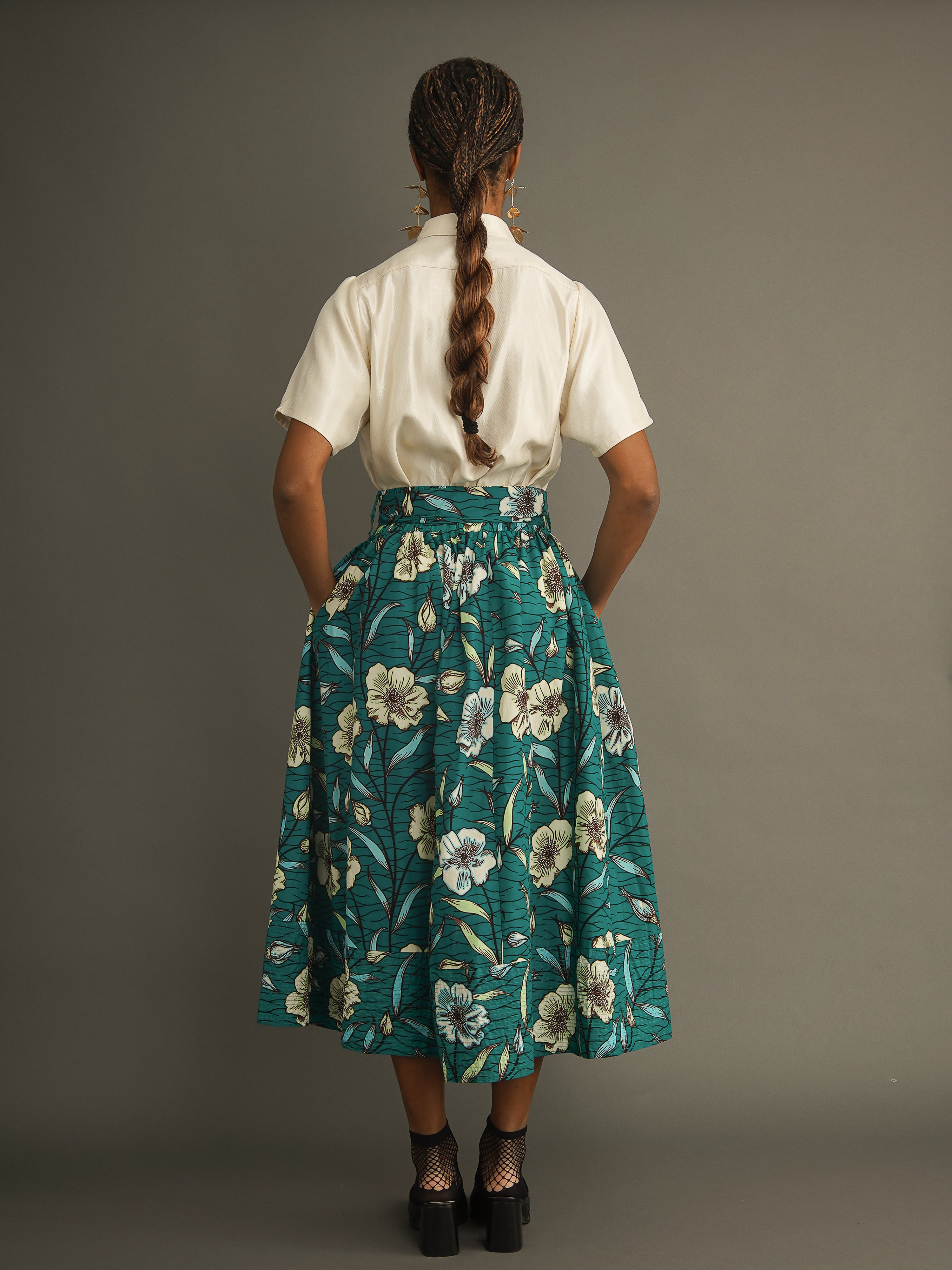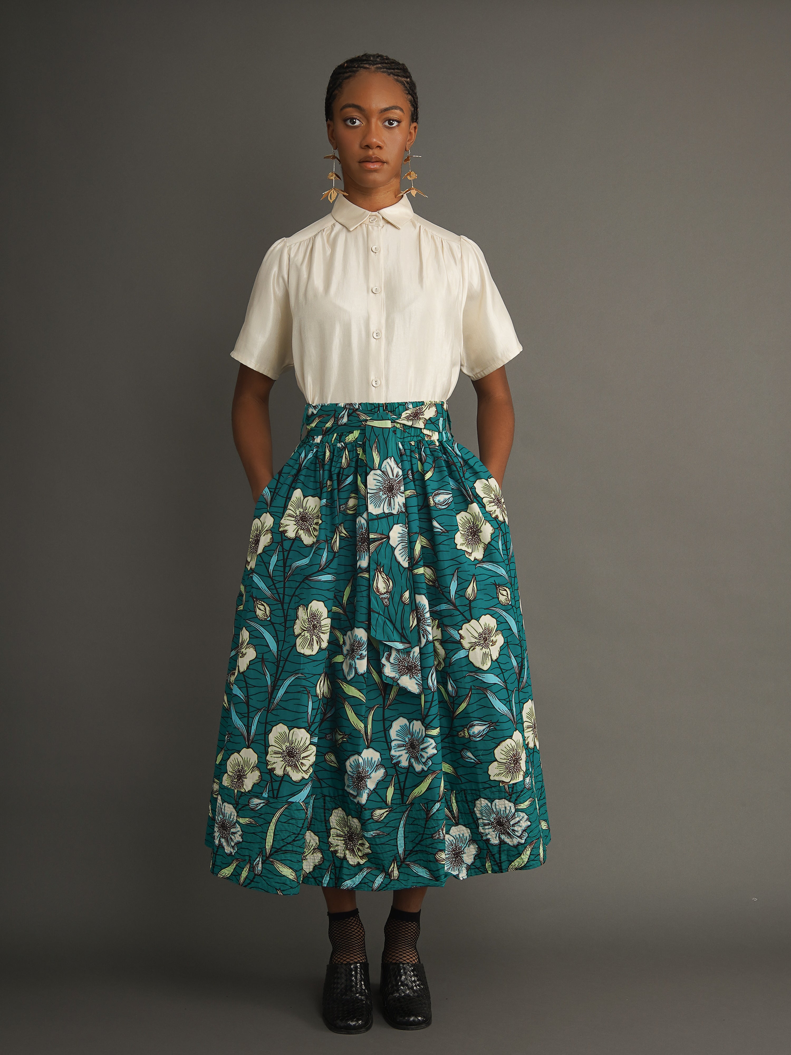 Naija Gathered Skirt – Structured Dutch Wax Cotton