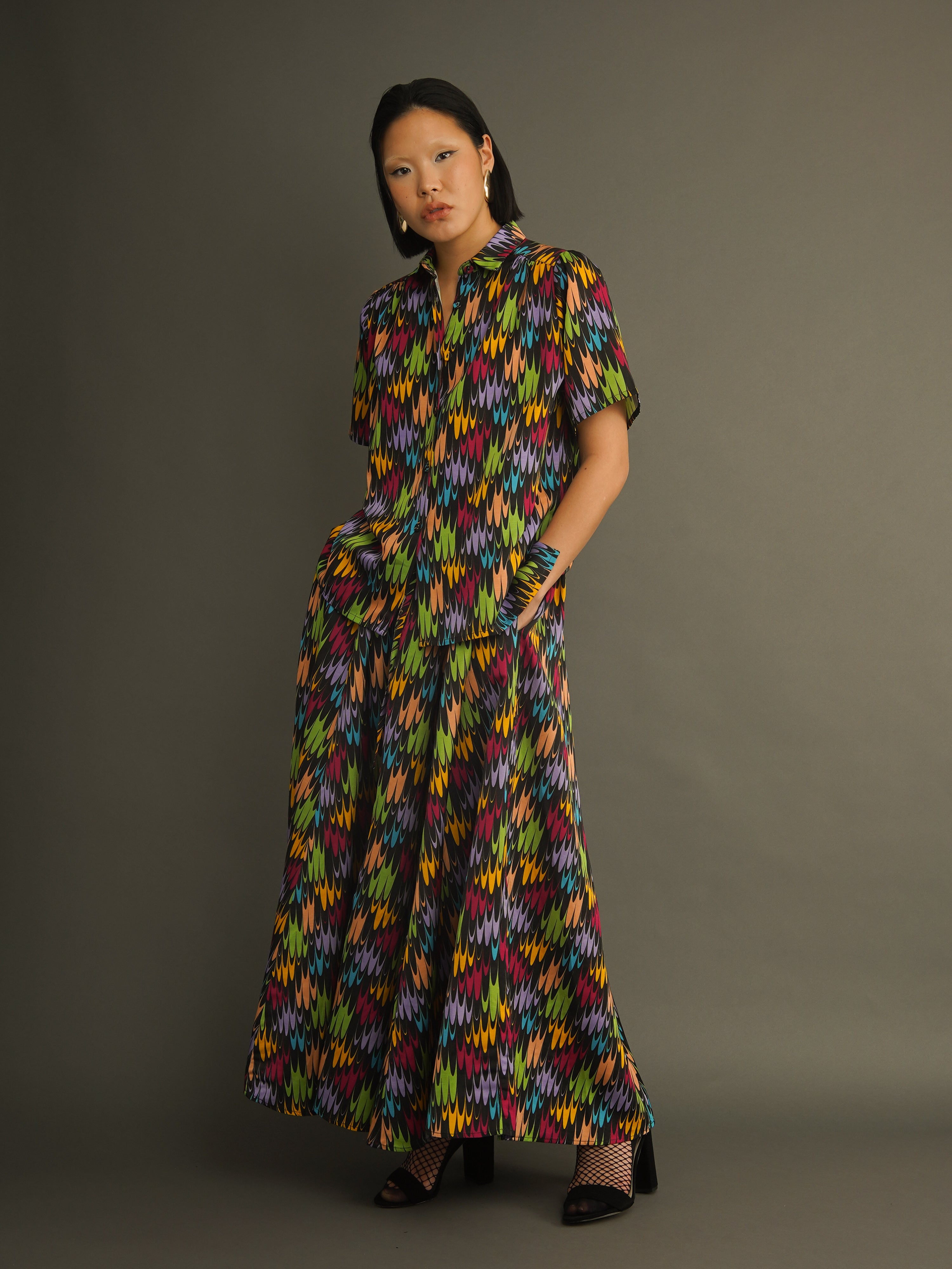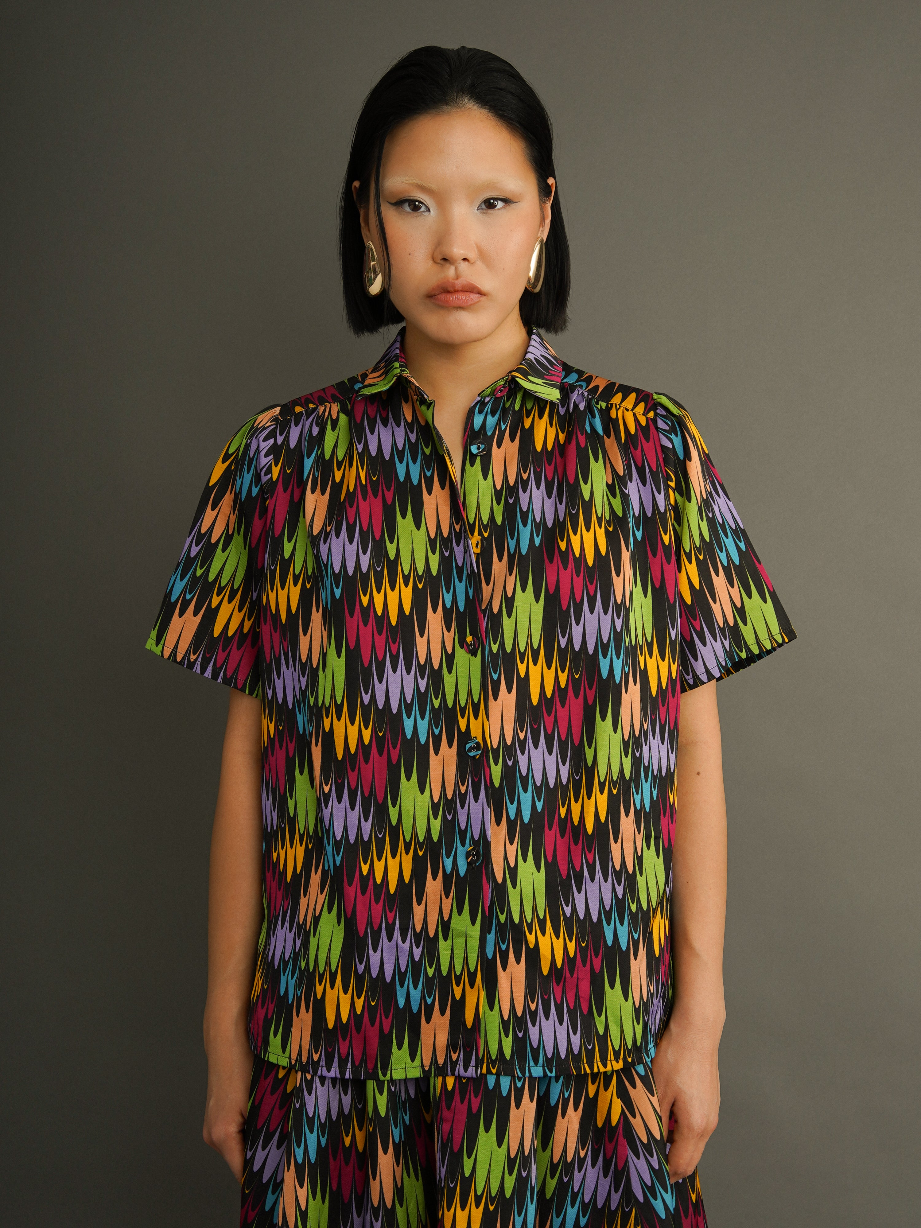 Muse Shirt Multicolour Flame Print in Rayon-Linen Blend
