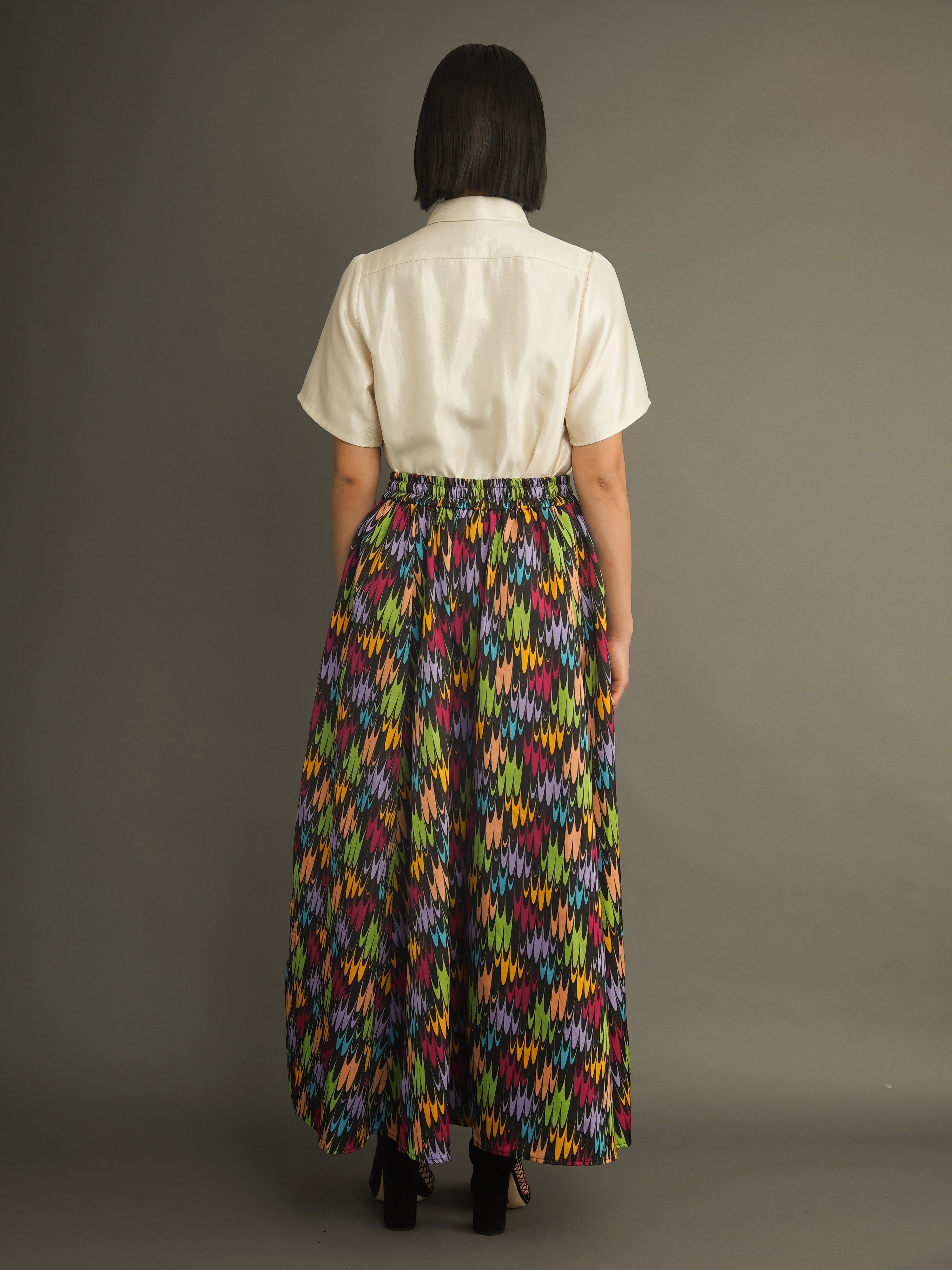 Muse Maxi Skirt - Multicolour Flame Print in Rayon-Linen Blend