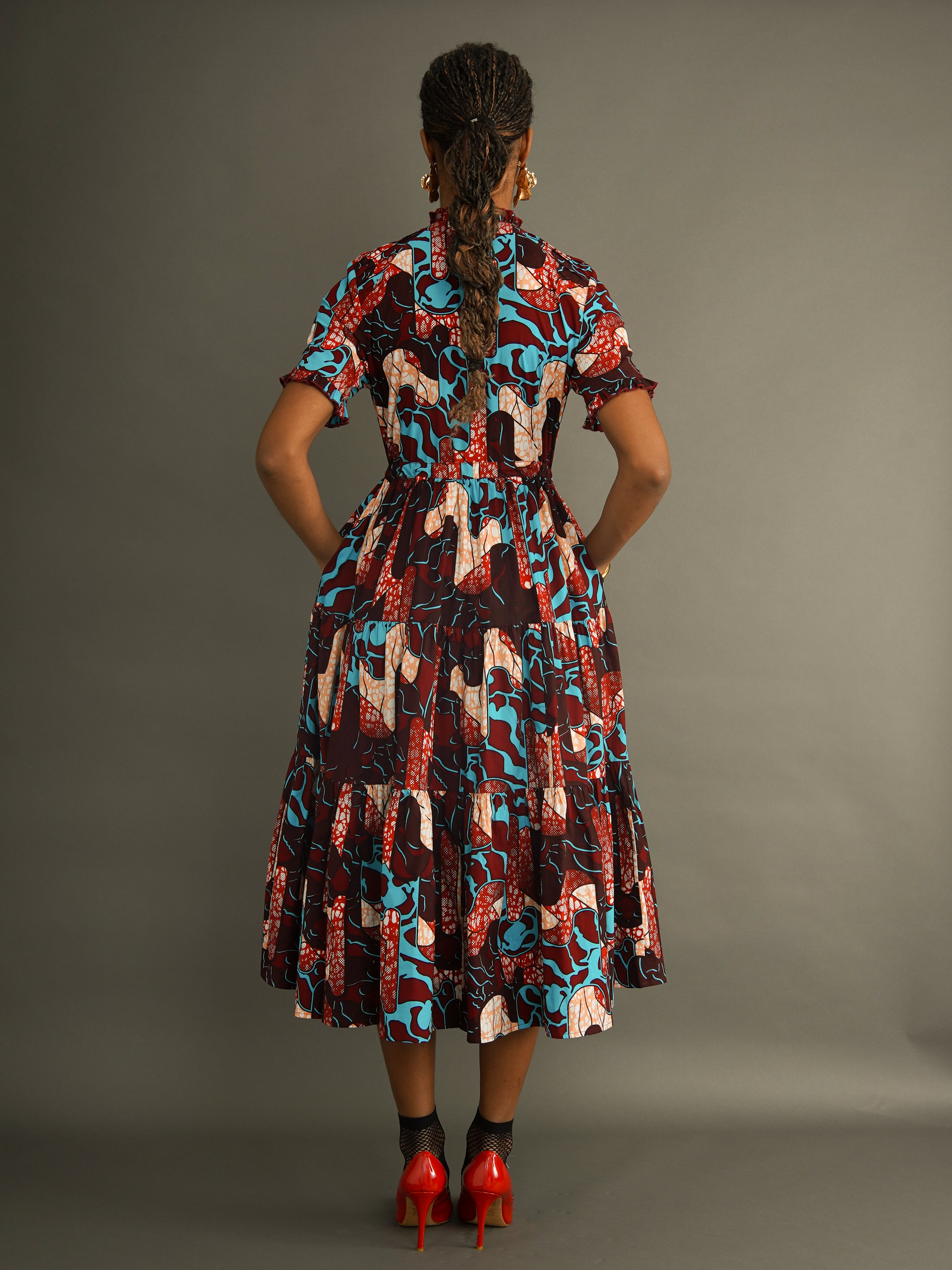 Practical shirt dress, maxi, and midi dresses in bold African prints, stripes, florals, and abstract patterns. Crafted in breathable cotton for work, occasion or everyday wear.