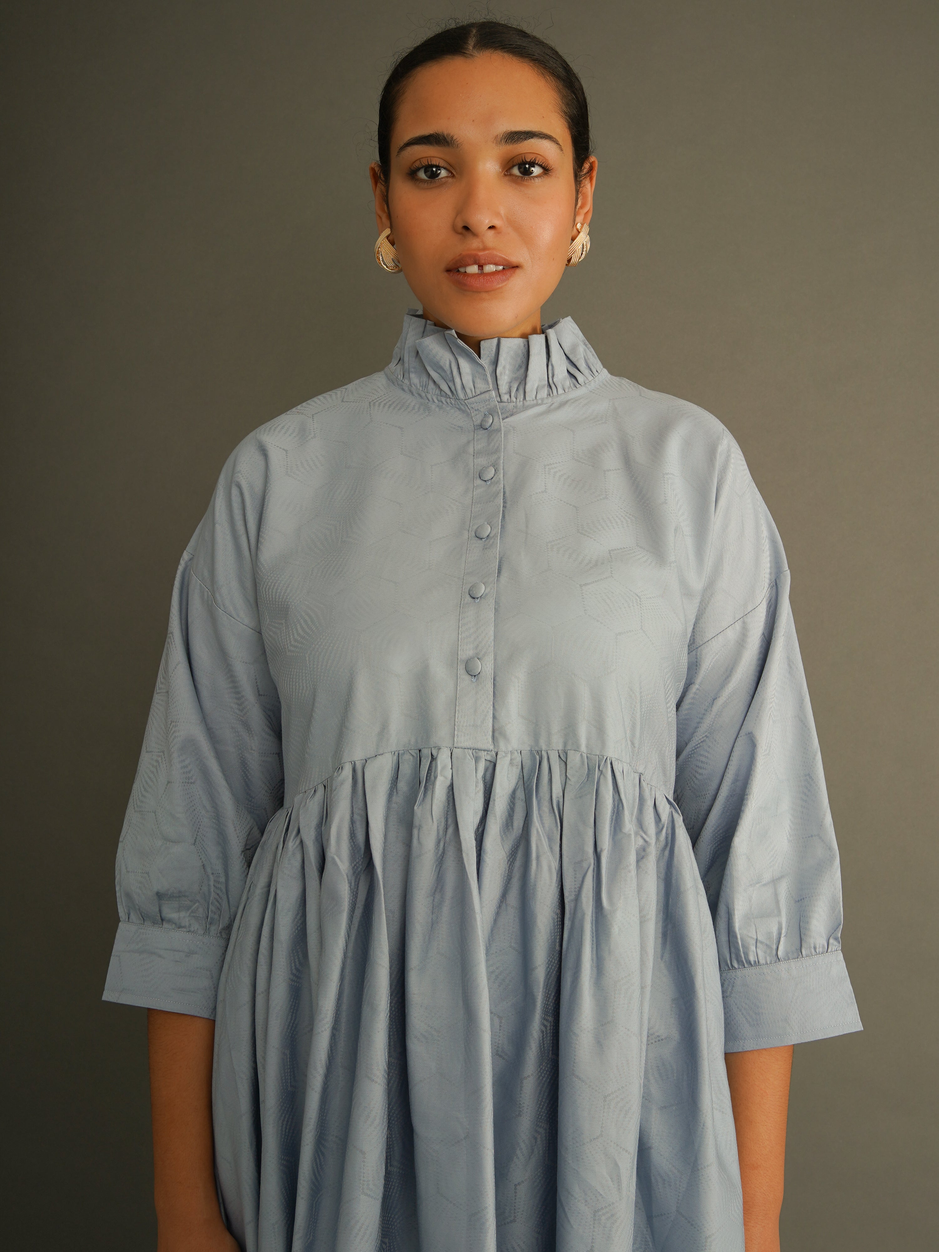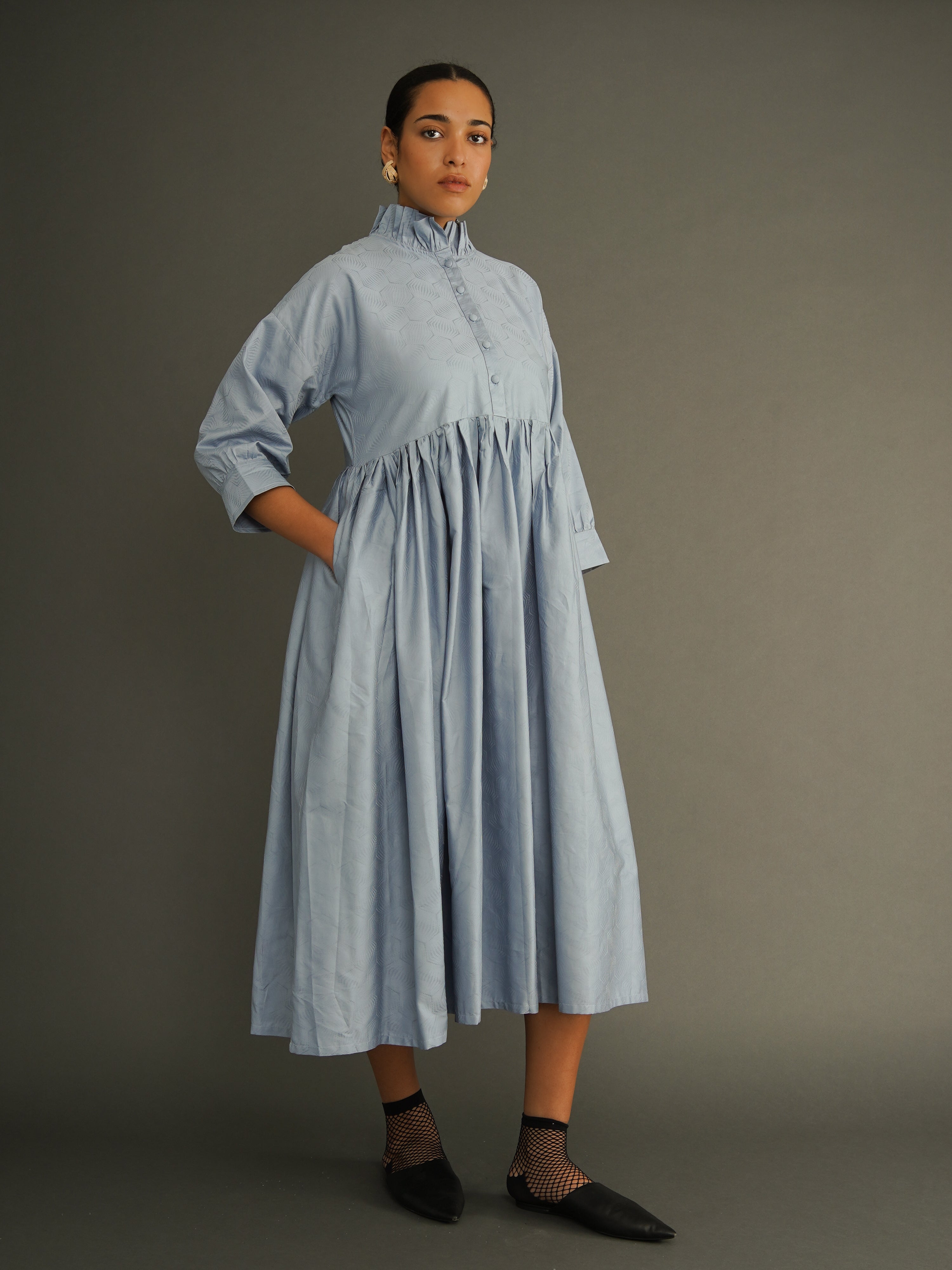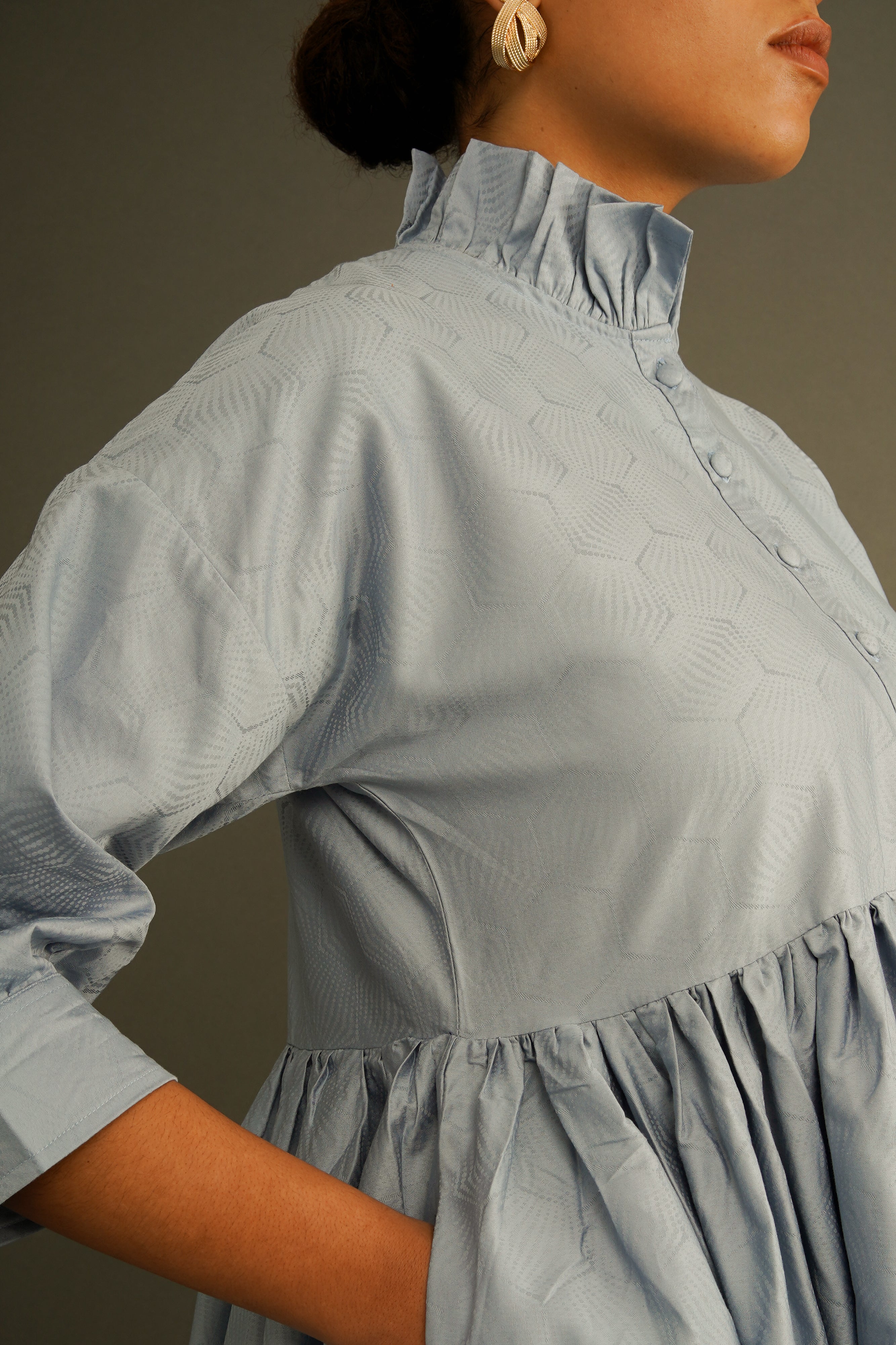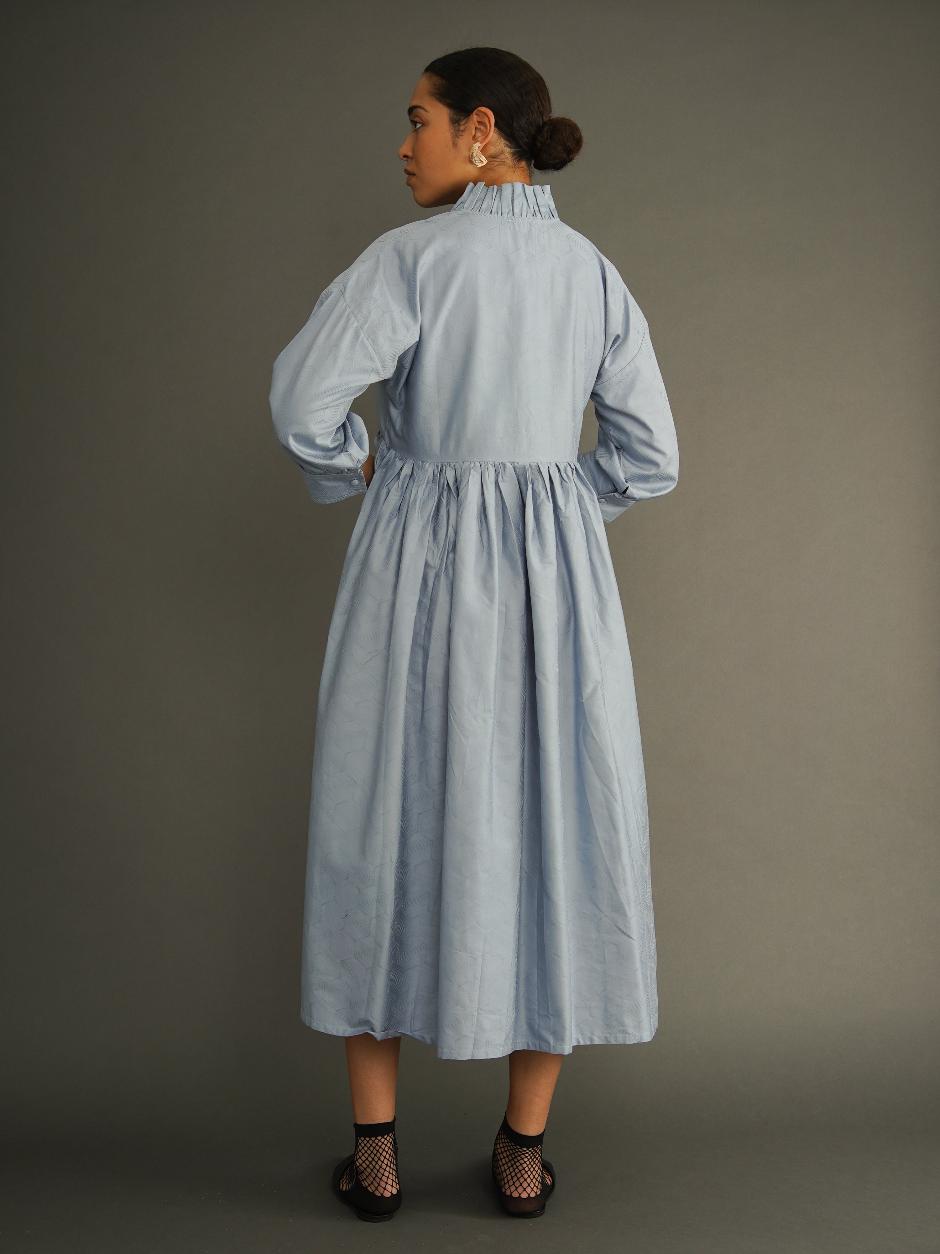 Doyin Sky Blue Midi Dress in Jacquard Cotton