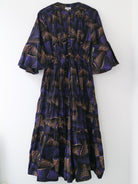 Mandarin collar. Pleated bodice. Short flared sleeves and a dreamy tiered skirt with pockets, it’s a piece that combines practicality with elegance.