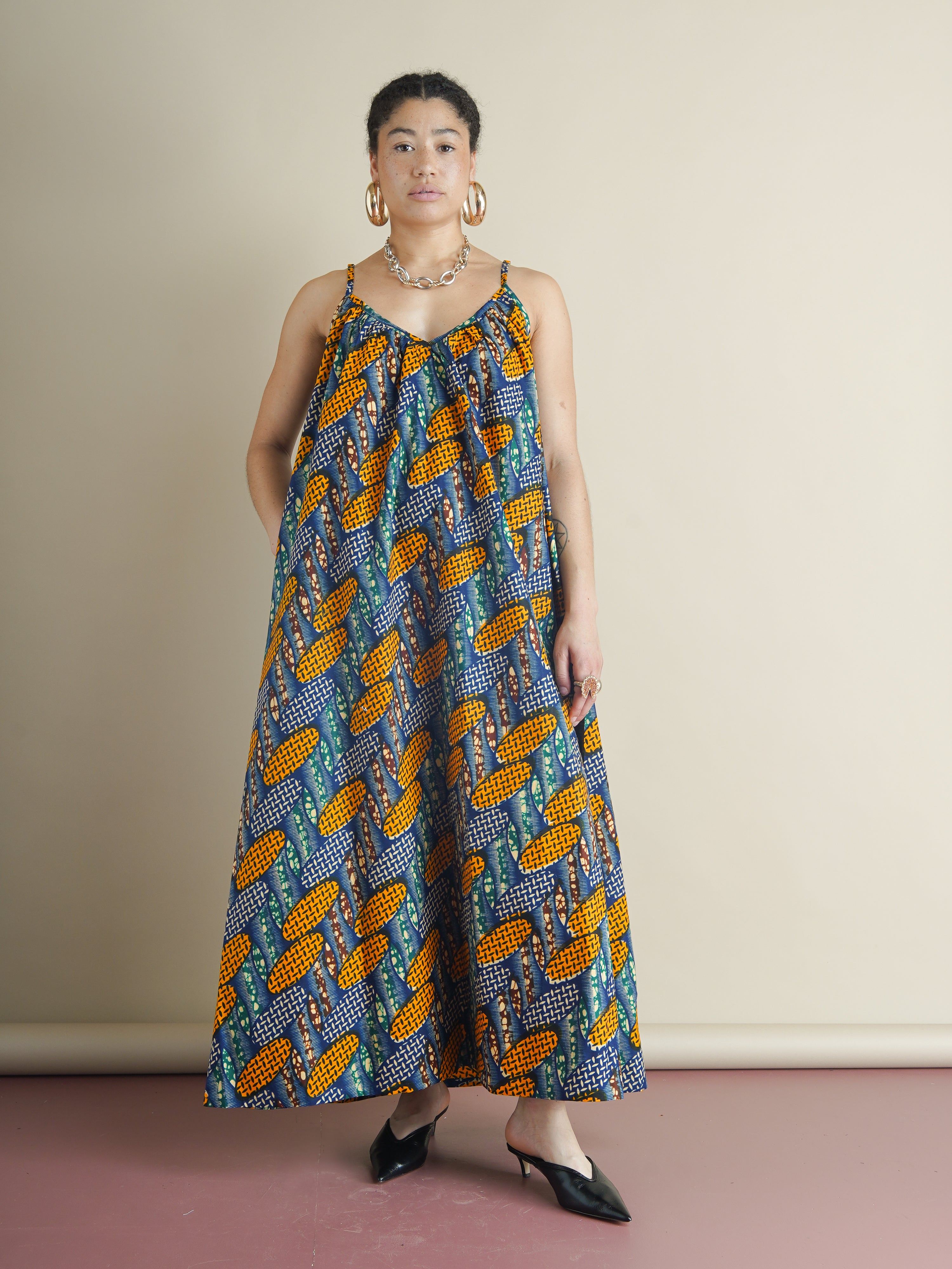 Introducing our exquisite oversized Yemitola Slip Dress, crafted with care from 100% screen-printed cotton.