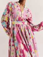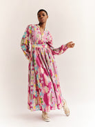 Yetunde Abstract Print Maxi Dress – Long Sleeve, Airy Cotton