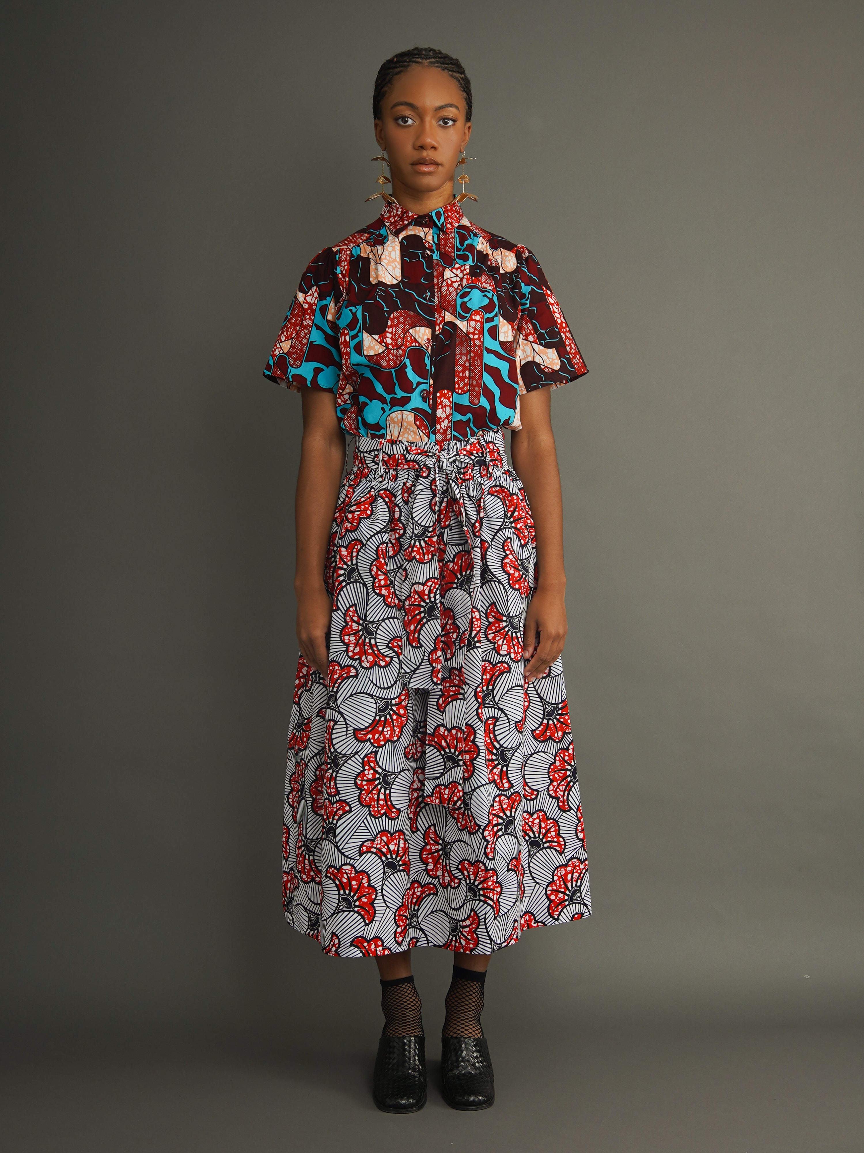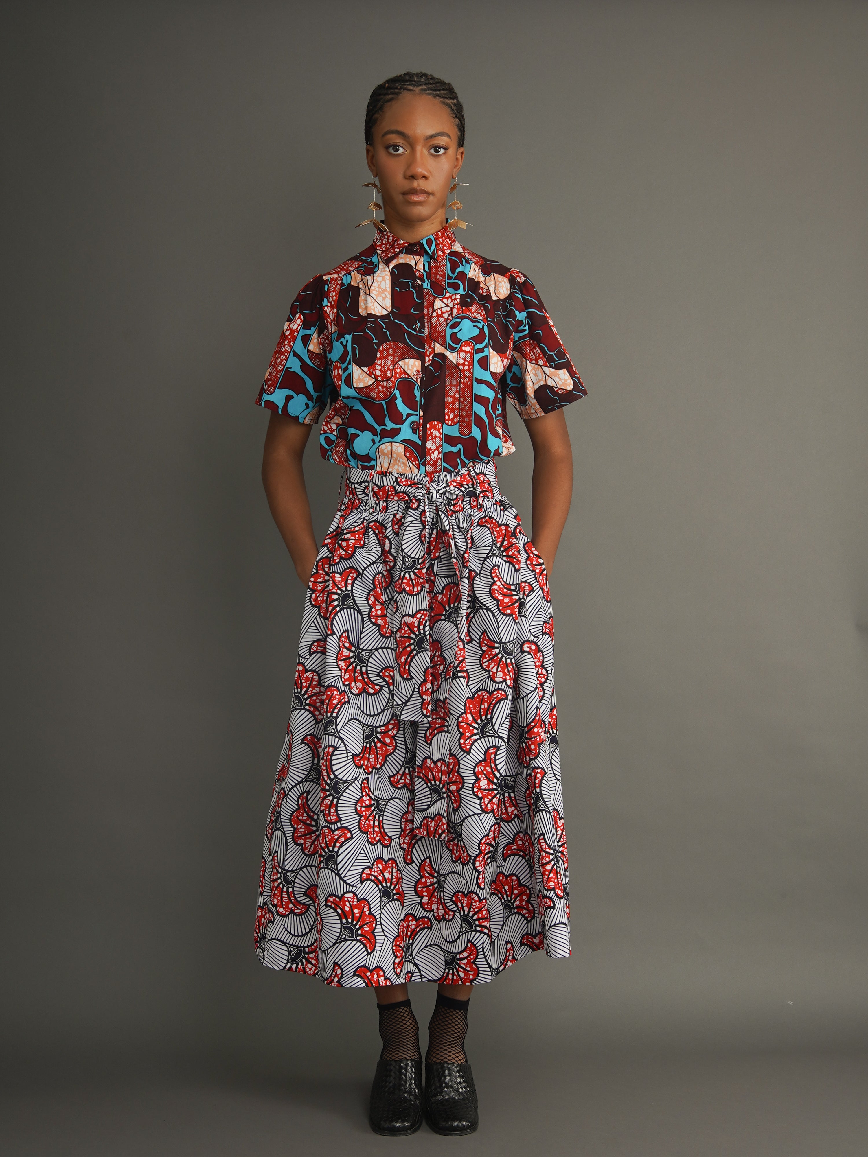Naija Gathered Skirt – Structured Dutch Wax Cotton
