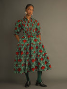 Designed with an Italian collar, statement sleeves finished with elasticated cuffs, and a tiered skirt that moves beautifully, it’s the perfect balance of ease and structure. Complete with side pockets for everyday practicality.