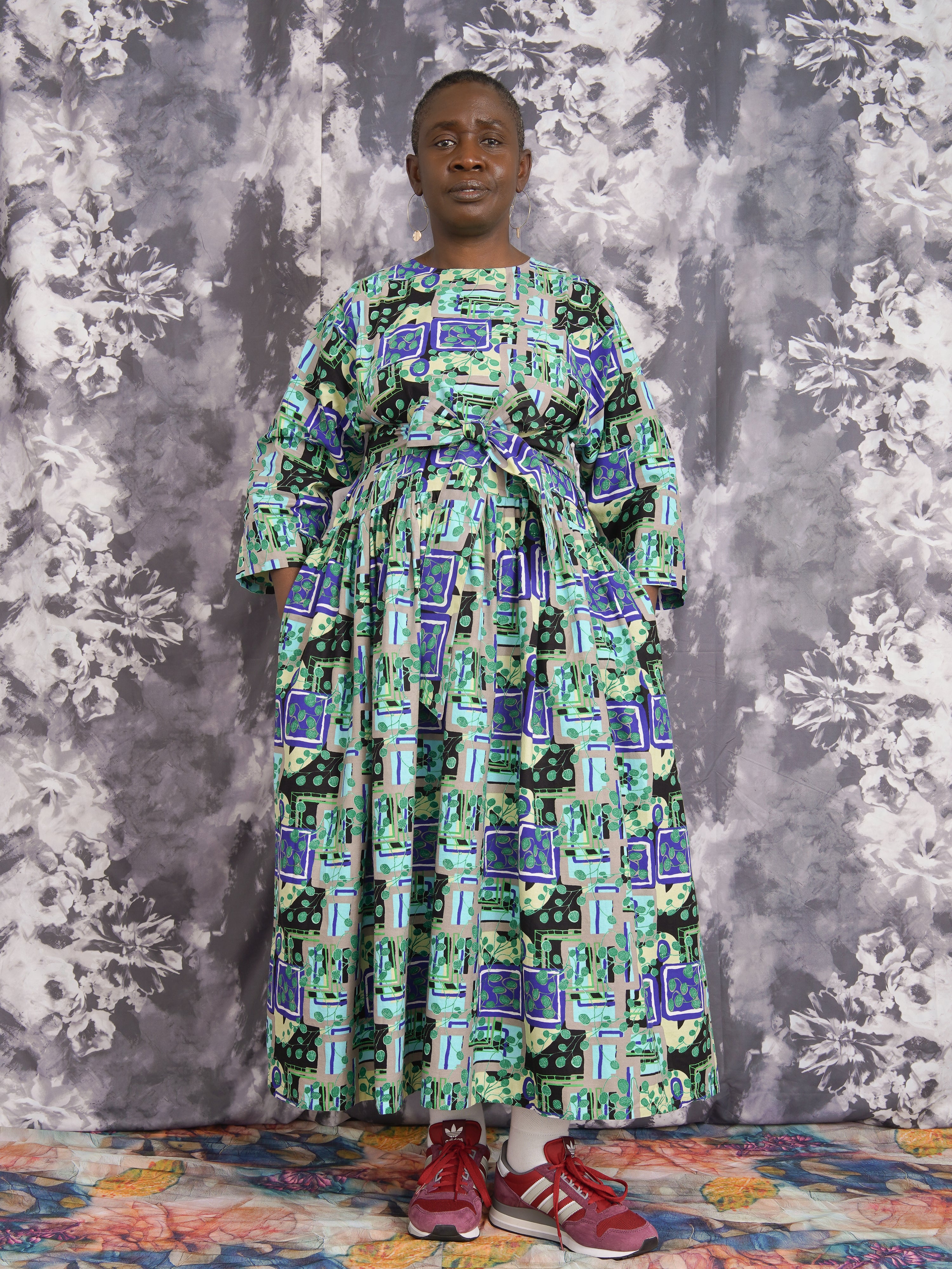 A bold dress with roots in art and intention. This limited-edition piece is crafted from structured 100% organic Dutch Wax cotton—fabric remaining from our collaboration with Tate. Its relaxed silhouette flows with ease, while the detachable belt allows for shape and structure as you choose. Designed for women who value comfort, beauty, and story.