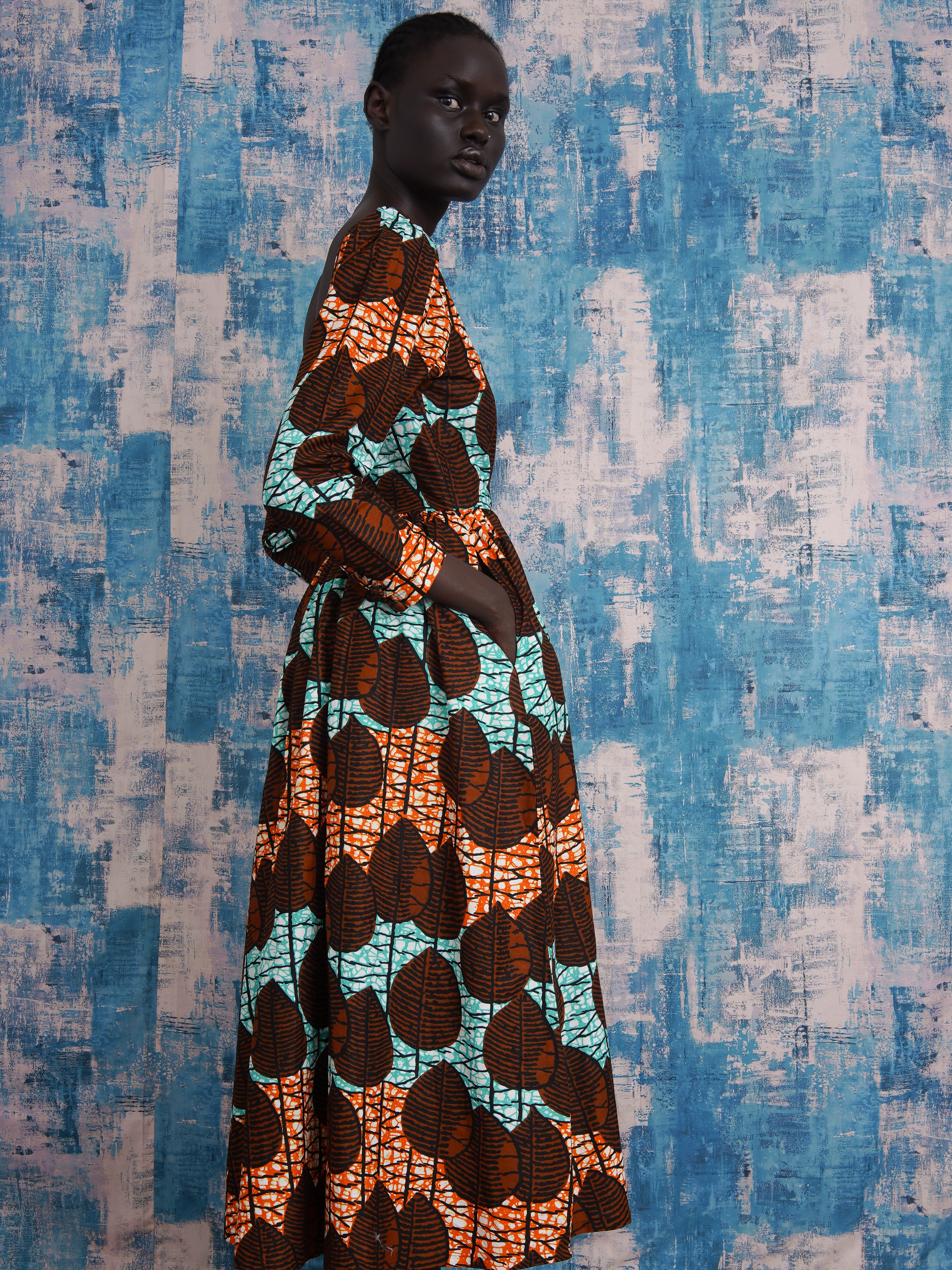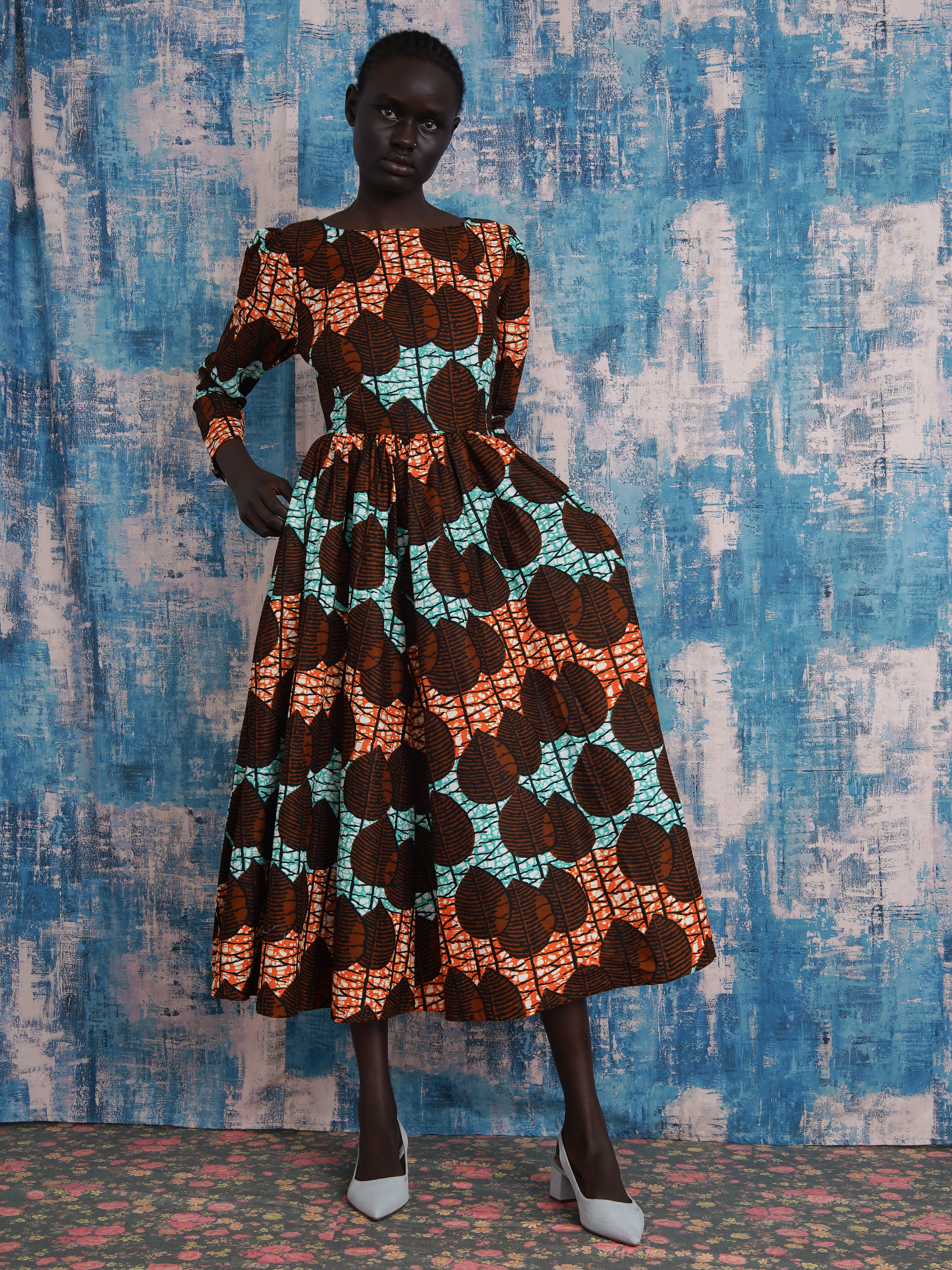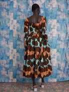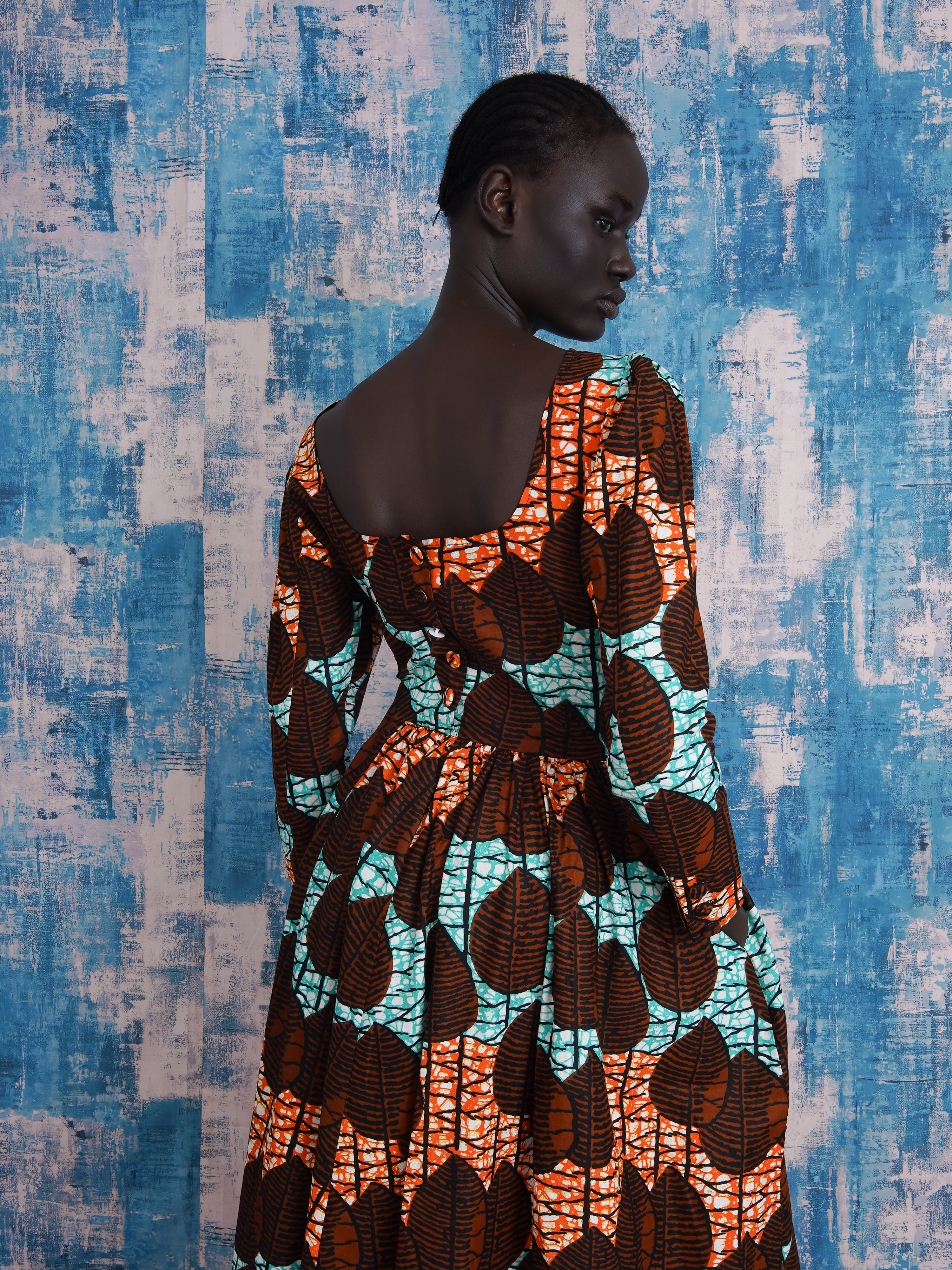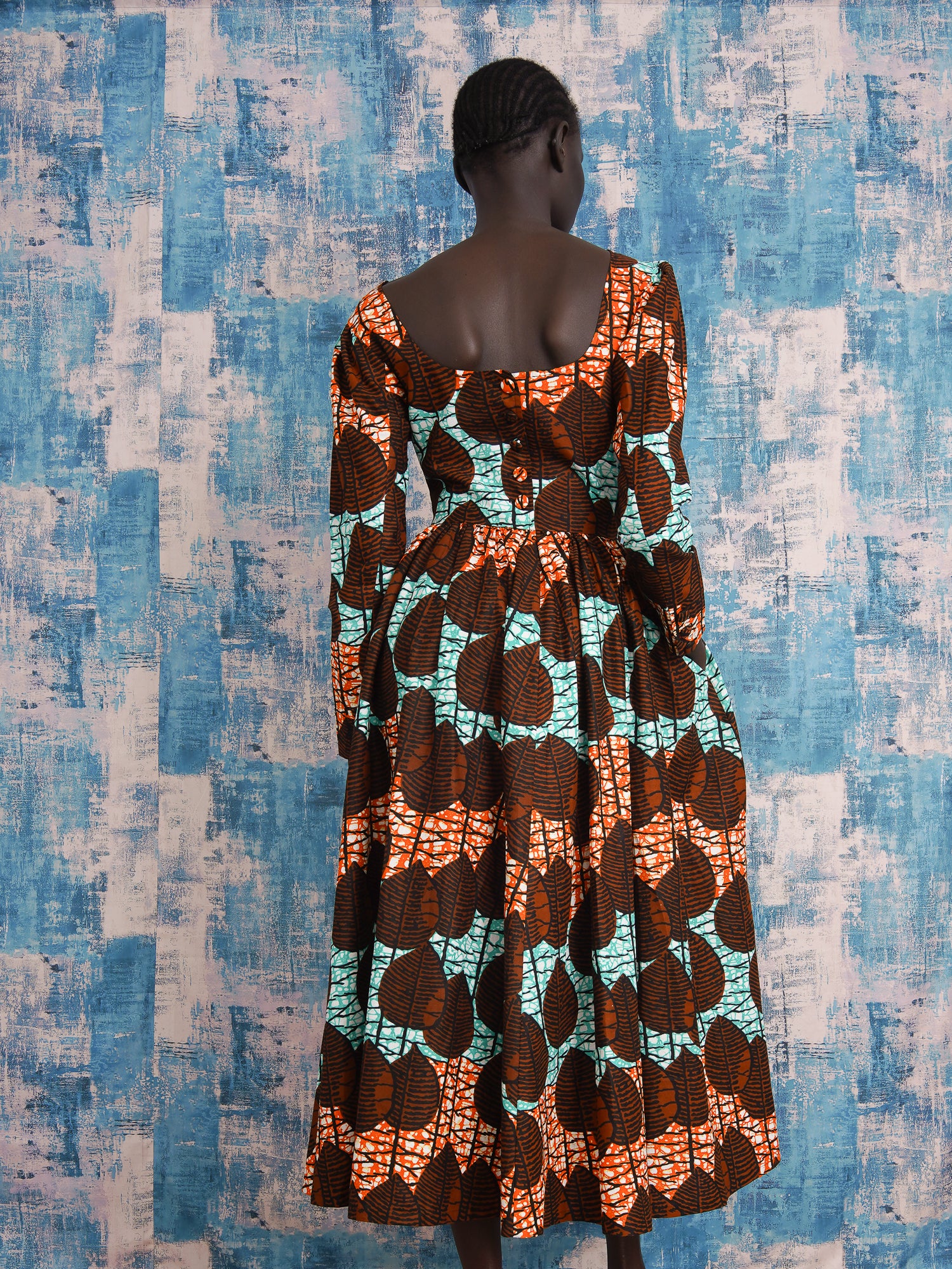 Introducing the Balogun Dress by Kemi Telford — a piece where sophistication meets romance. Crafted in a bold African-inspired print, this timeless silhouette combines a fitted bodice, puff sleeves, and a voluminous full skirt that moves beautifully with every step.