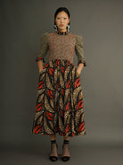 Our artisans spent a full day hand-embellishing the chest of each dress with shimmering sequins and beads. Every stitch, every sparkle is placed by hand, making each Greta dress a one-of-a-kind treasure. The intricate beadwork celebrates craftsmanship while allowing the bold pattern to shine.