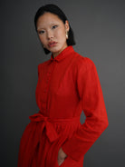 Amina Linen Shirt Dress – Red