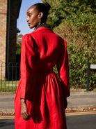 The Amina Dress is cut from beautifully washed heavy weight luxirious Belgian linen that holds its shape yet feels soft against the skin. Bold in red, this dress has a quiet confidence — the kind that turns heads without trying.