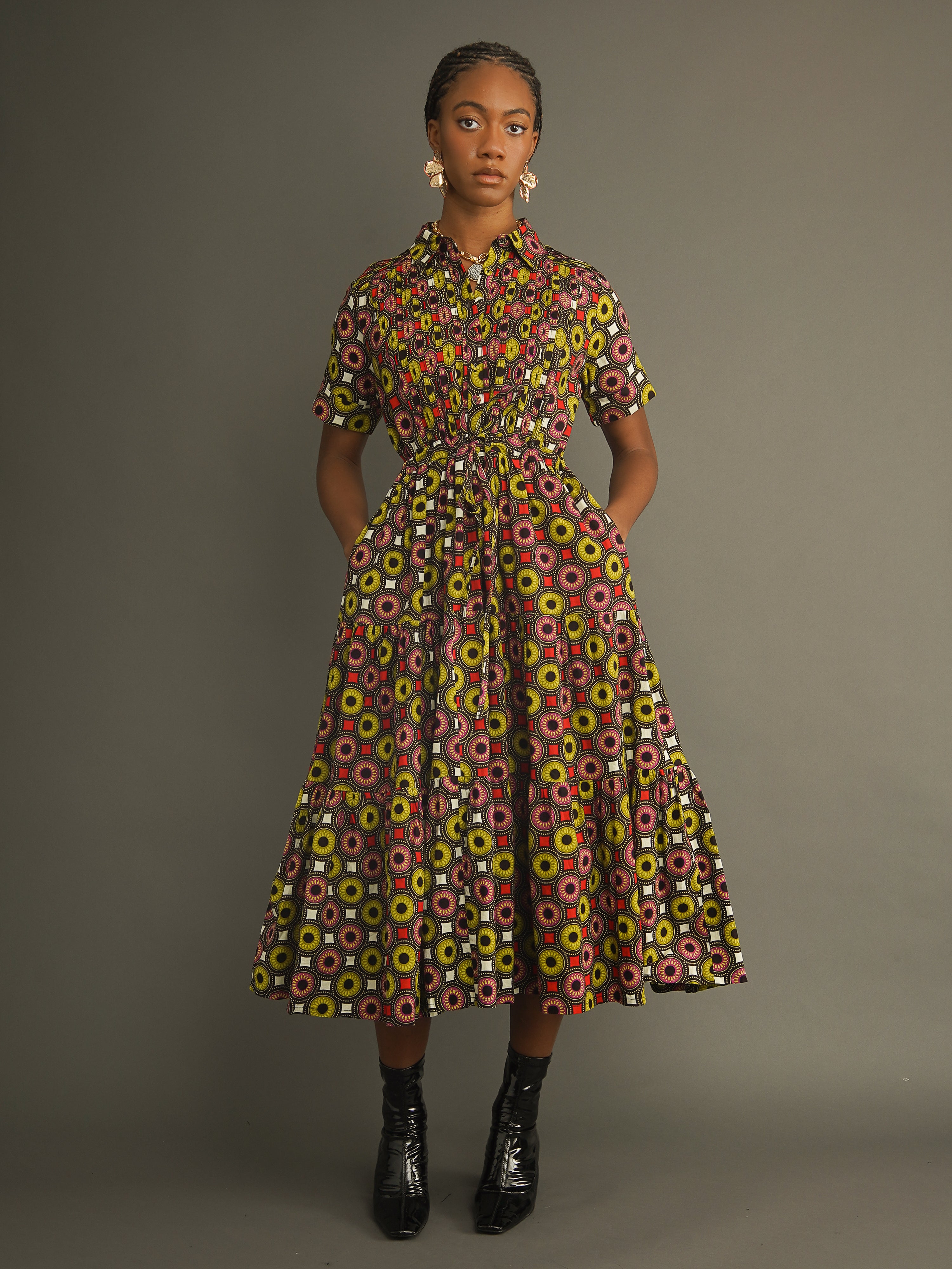 Our ever-popular drawstring dress comes back with a bang in this amazing print.