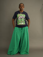 A modern classic with a vintage twist. The Charlie Green Palazzo Pants are crafted from lightweight nylon-spandex with a soft cotton lining—think retro athleisure, reimagined for today. The oversized, wide-leg fit offers movement, shape, and ease.