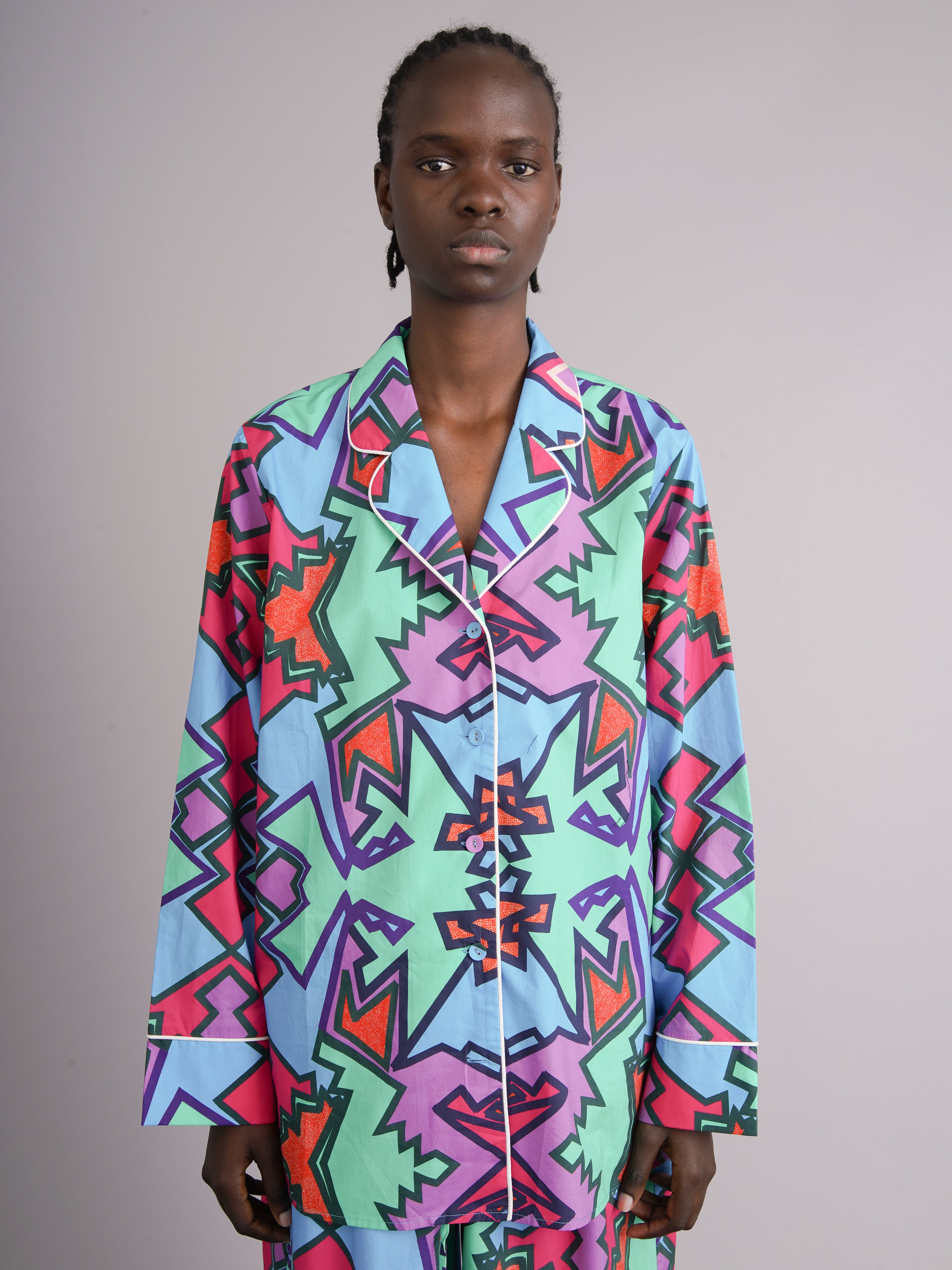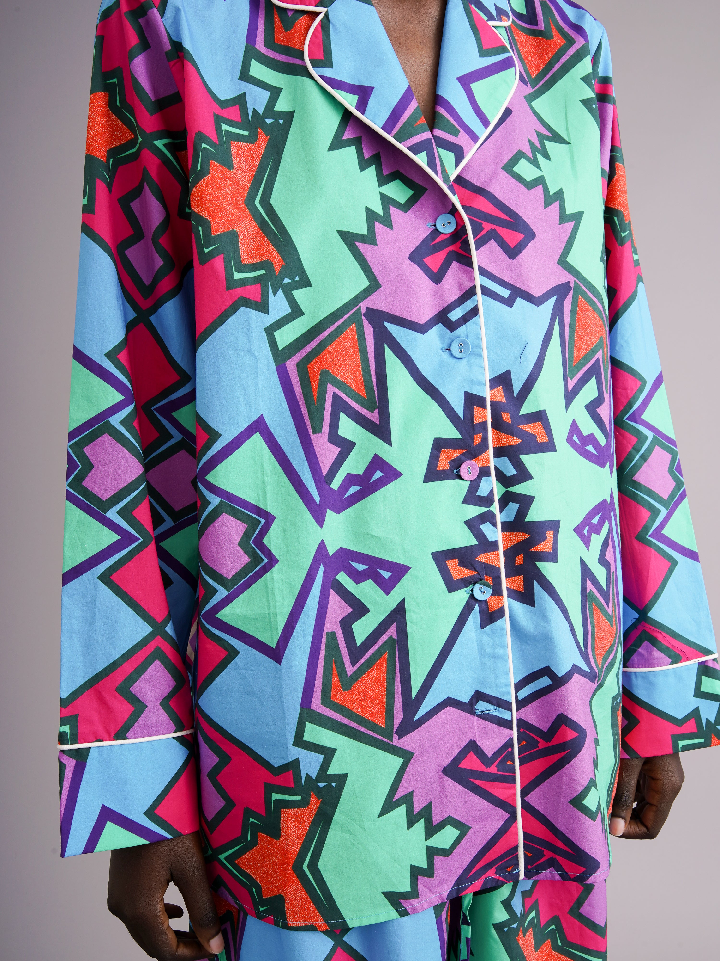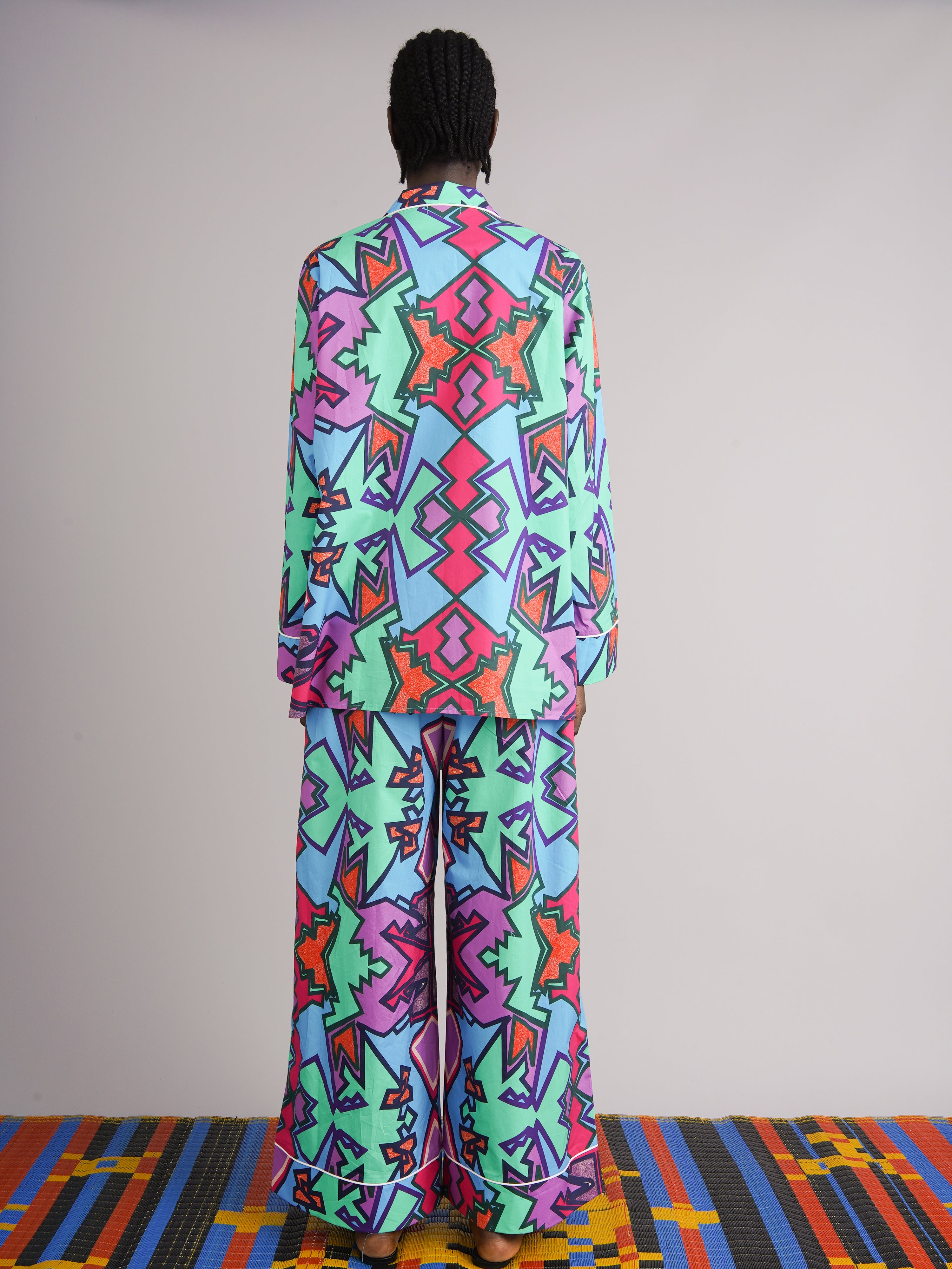 Cut from our signature bold print, these fabulous 100% cotton pyjamas is the perfect item your wardrobe needs. This pyjama set is designed to be worn out as it is too fabulous to be worn in bed. Wear it with a pair of heels or flats and see how the wide-leg trousers will drape beautifully on you.