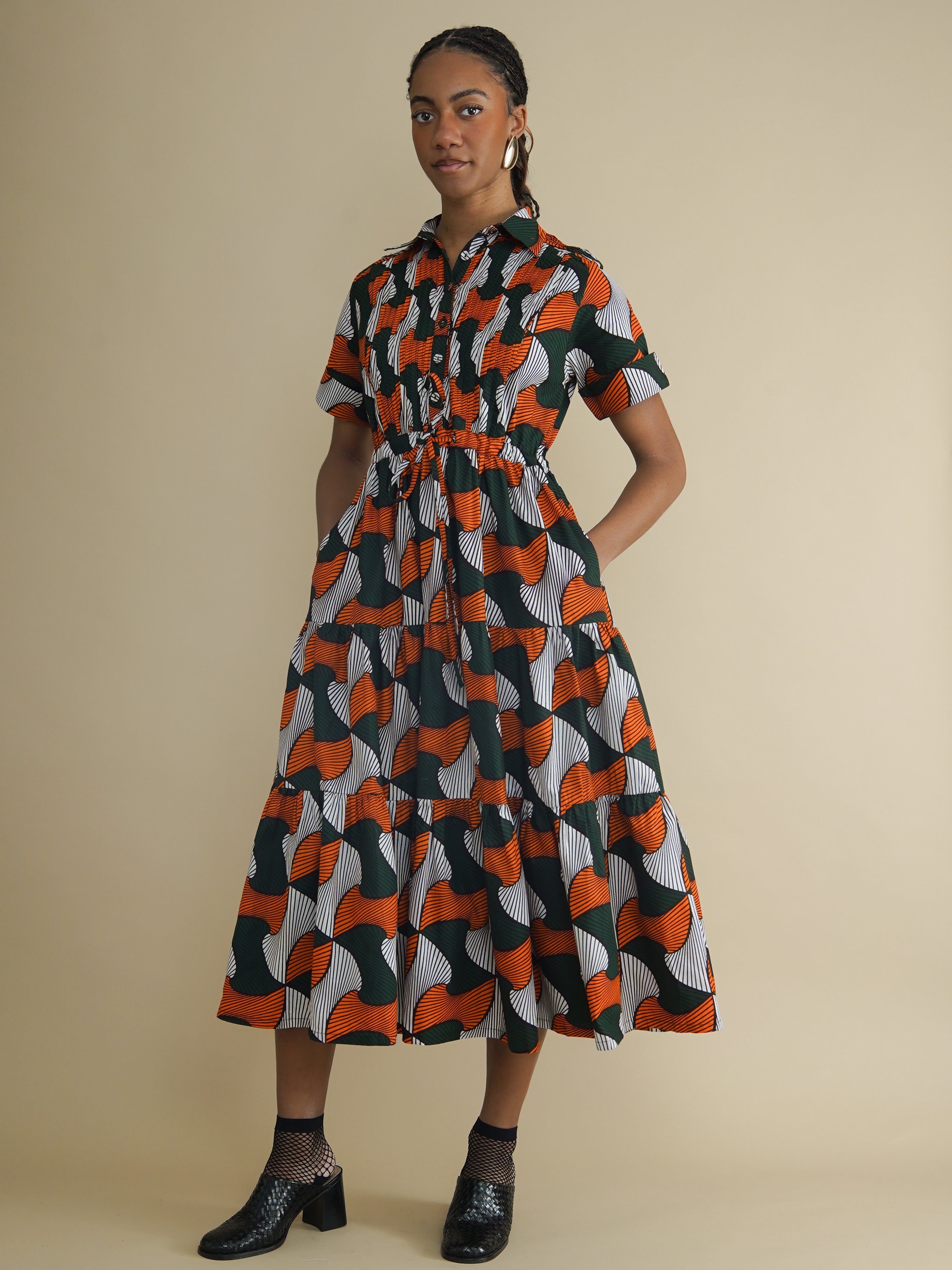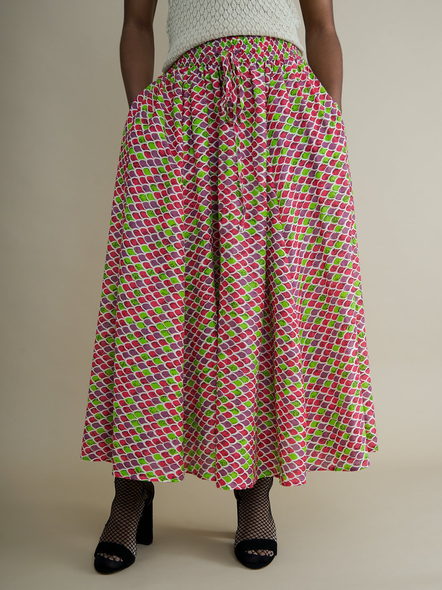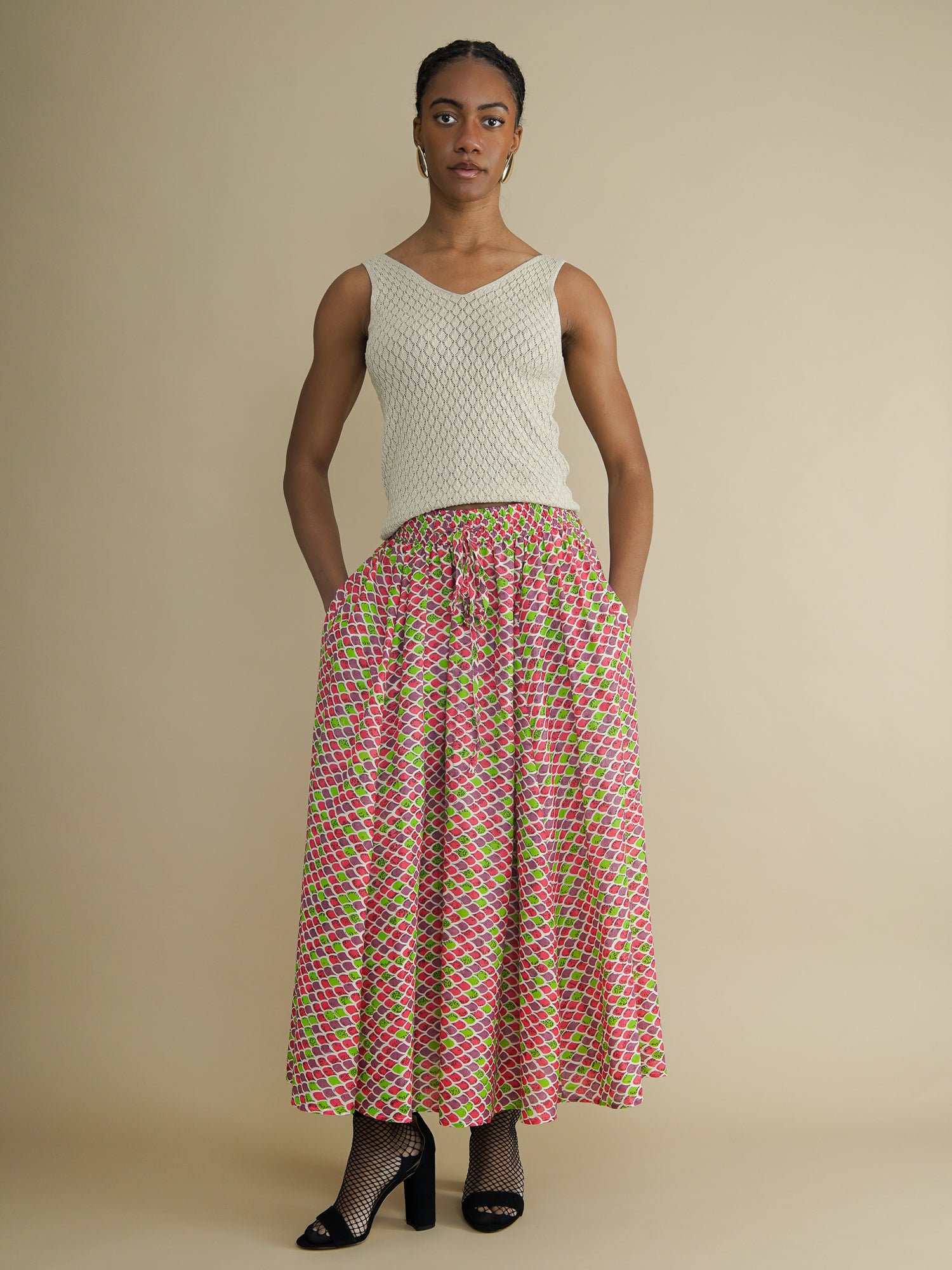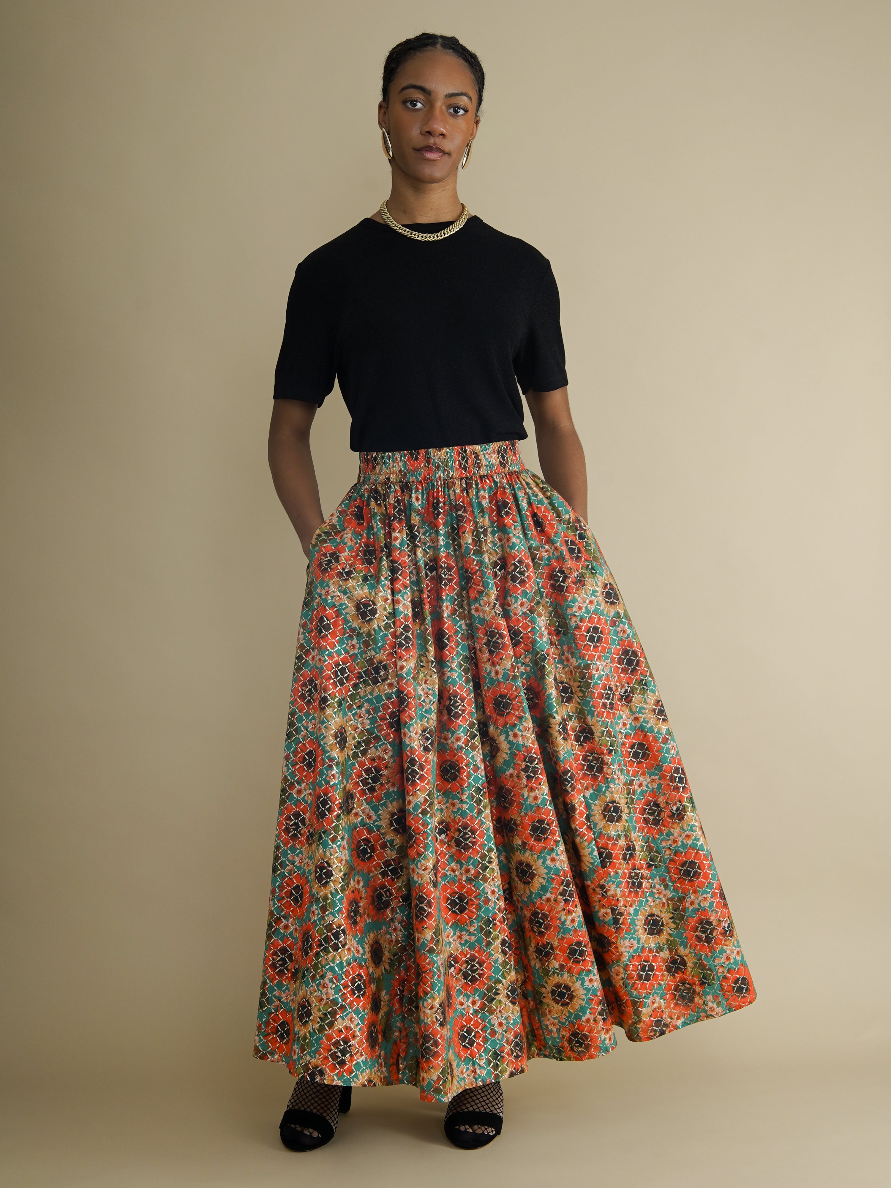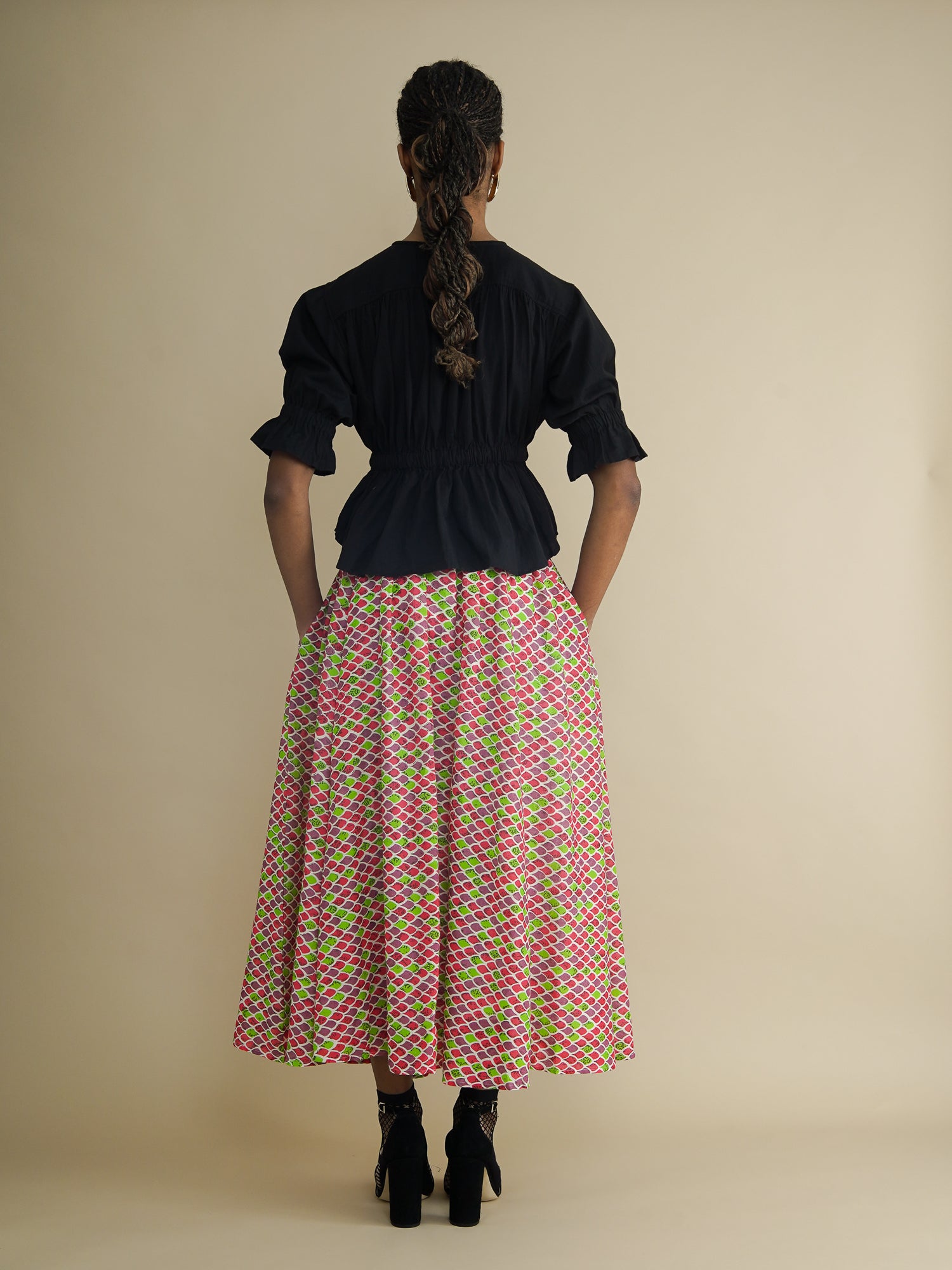 Yemi Full Gathered Midi Skirt – Structured Dutch Wax Cotton