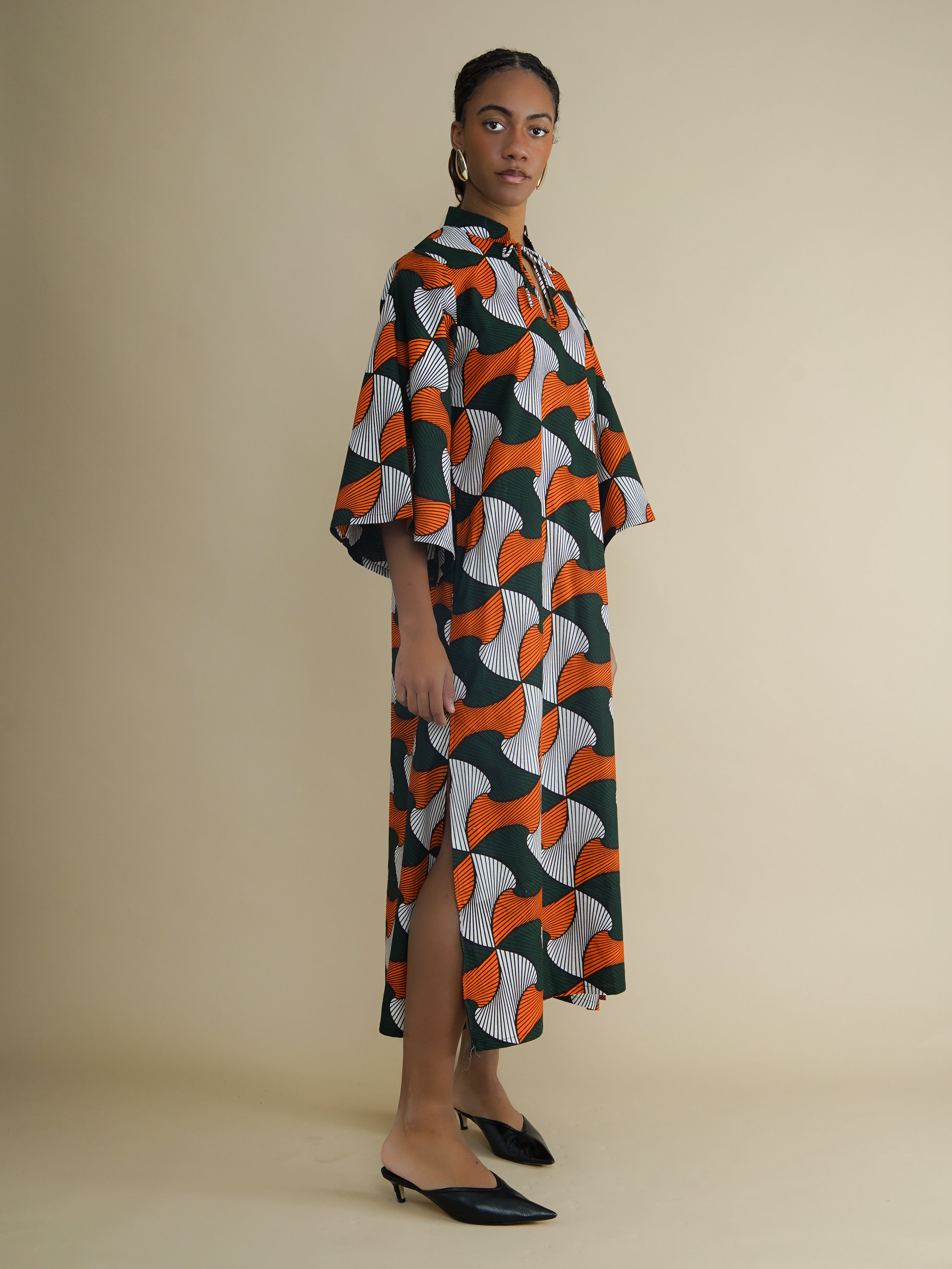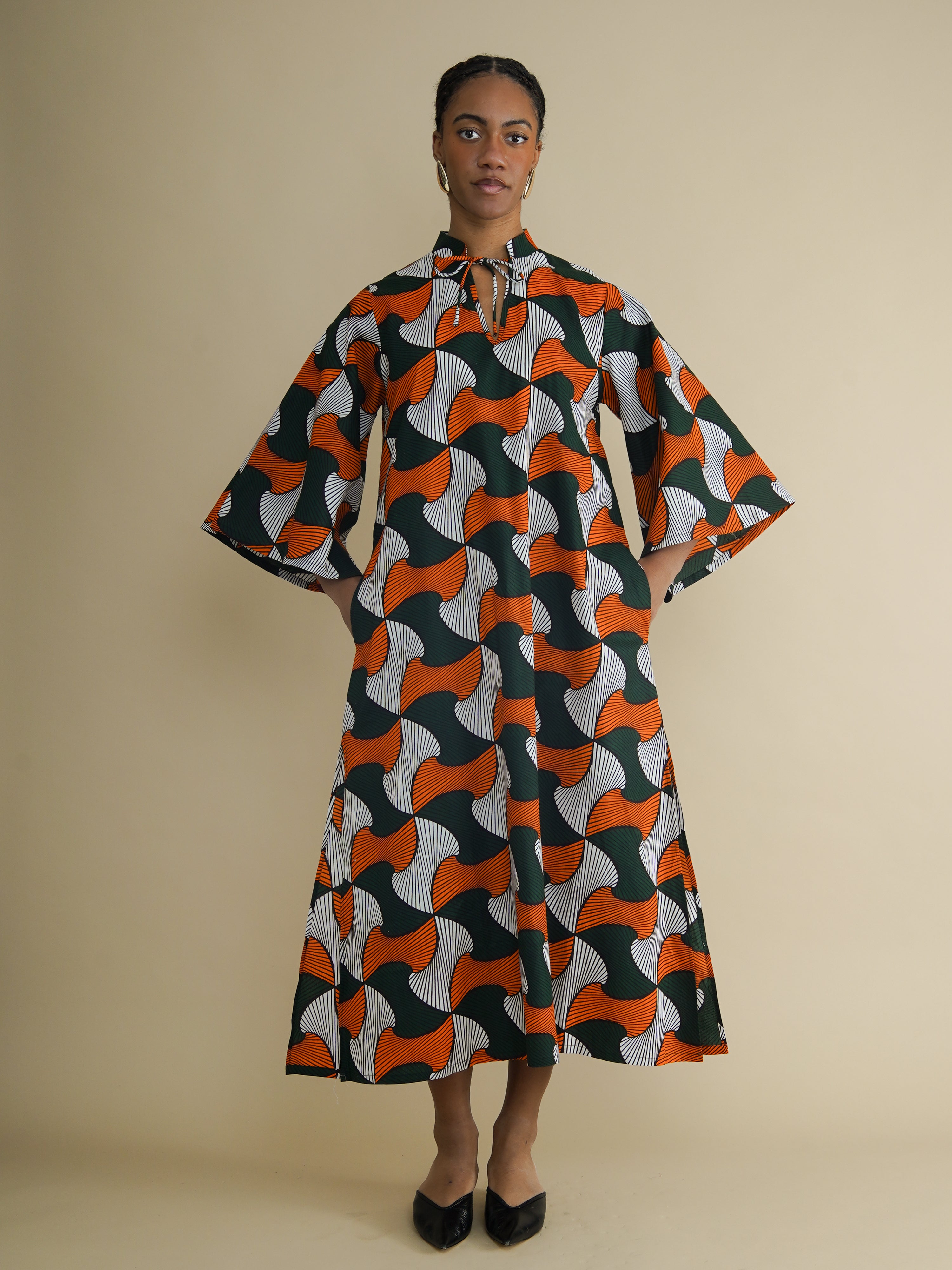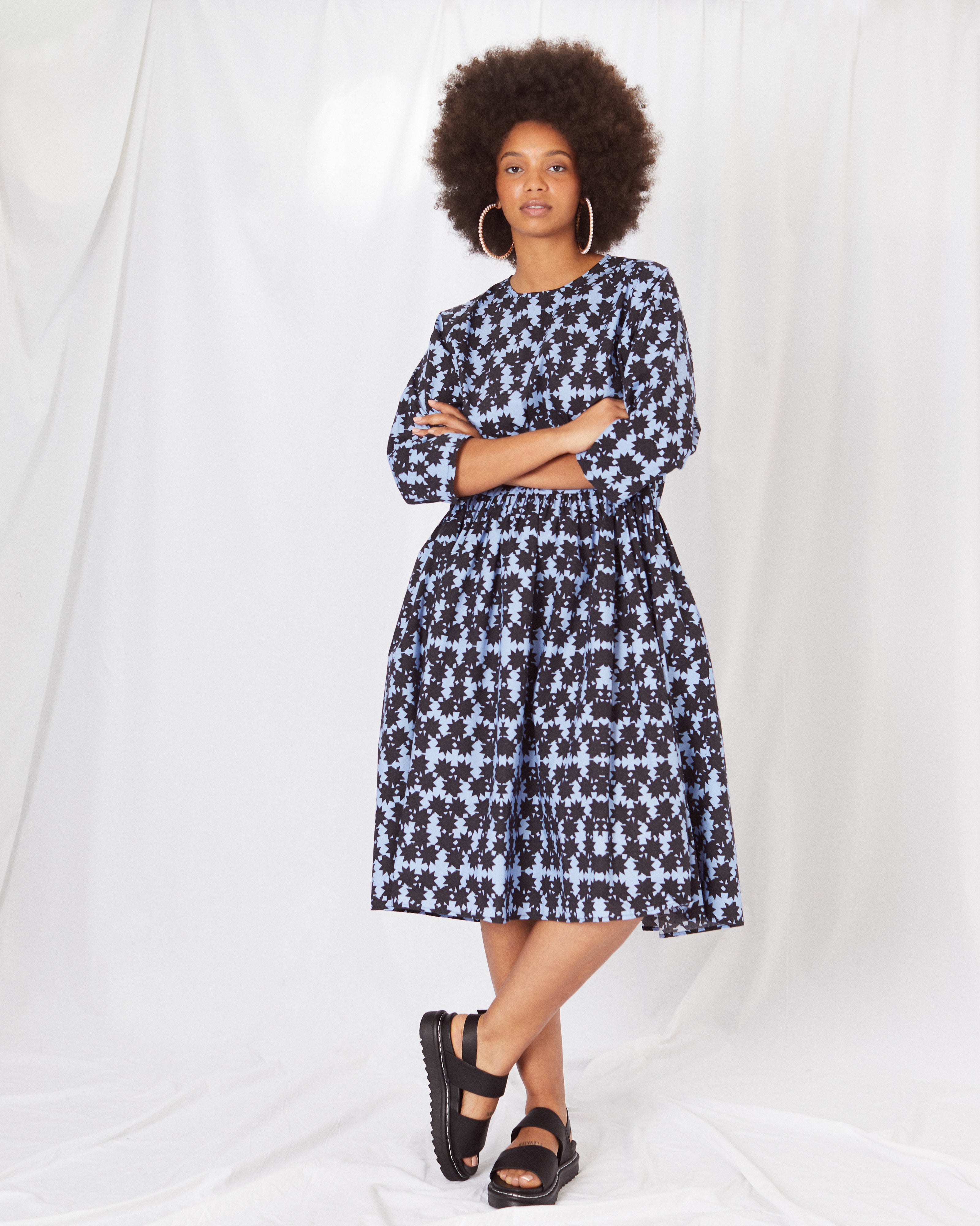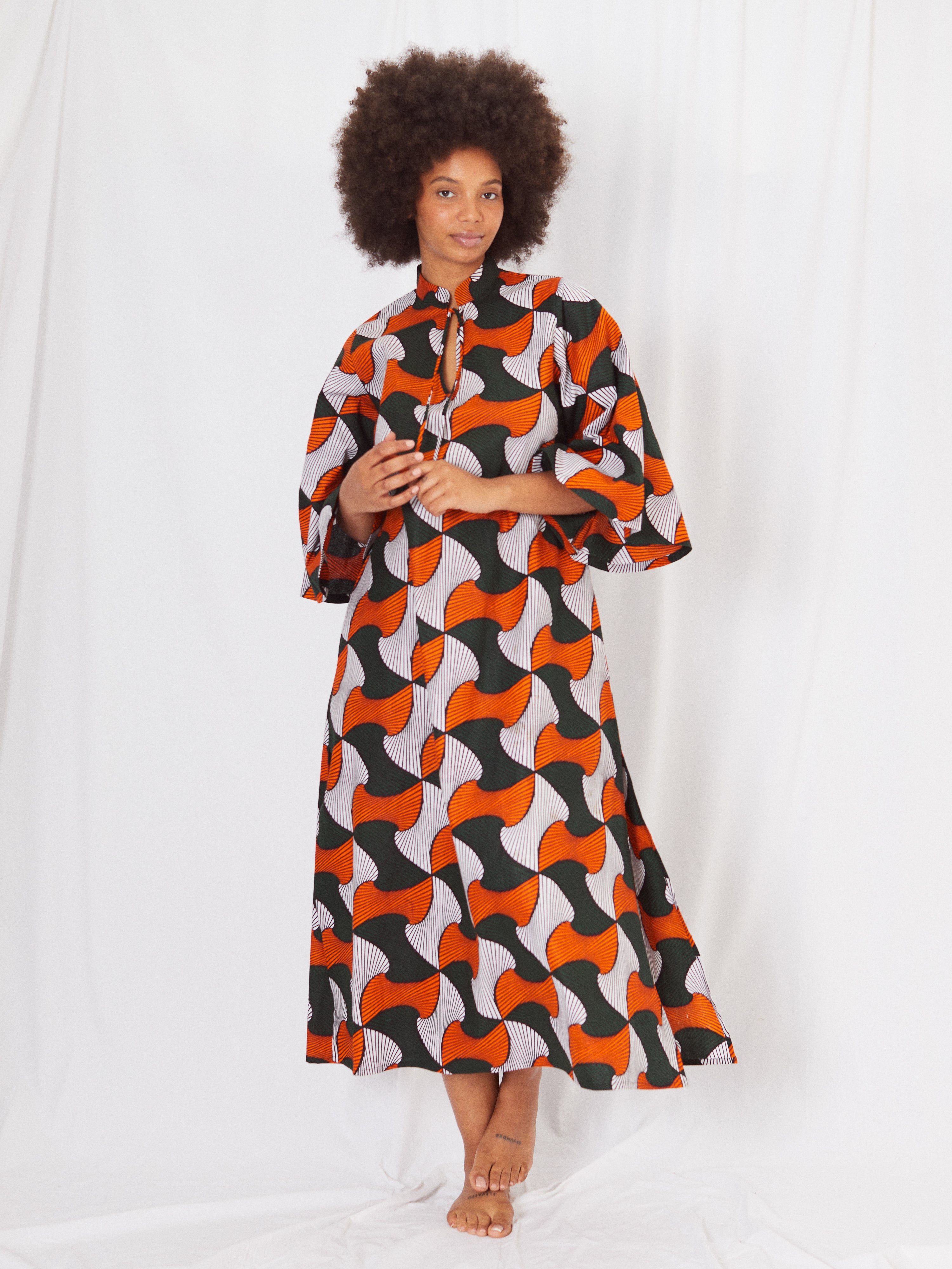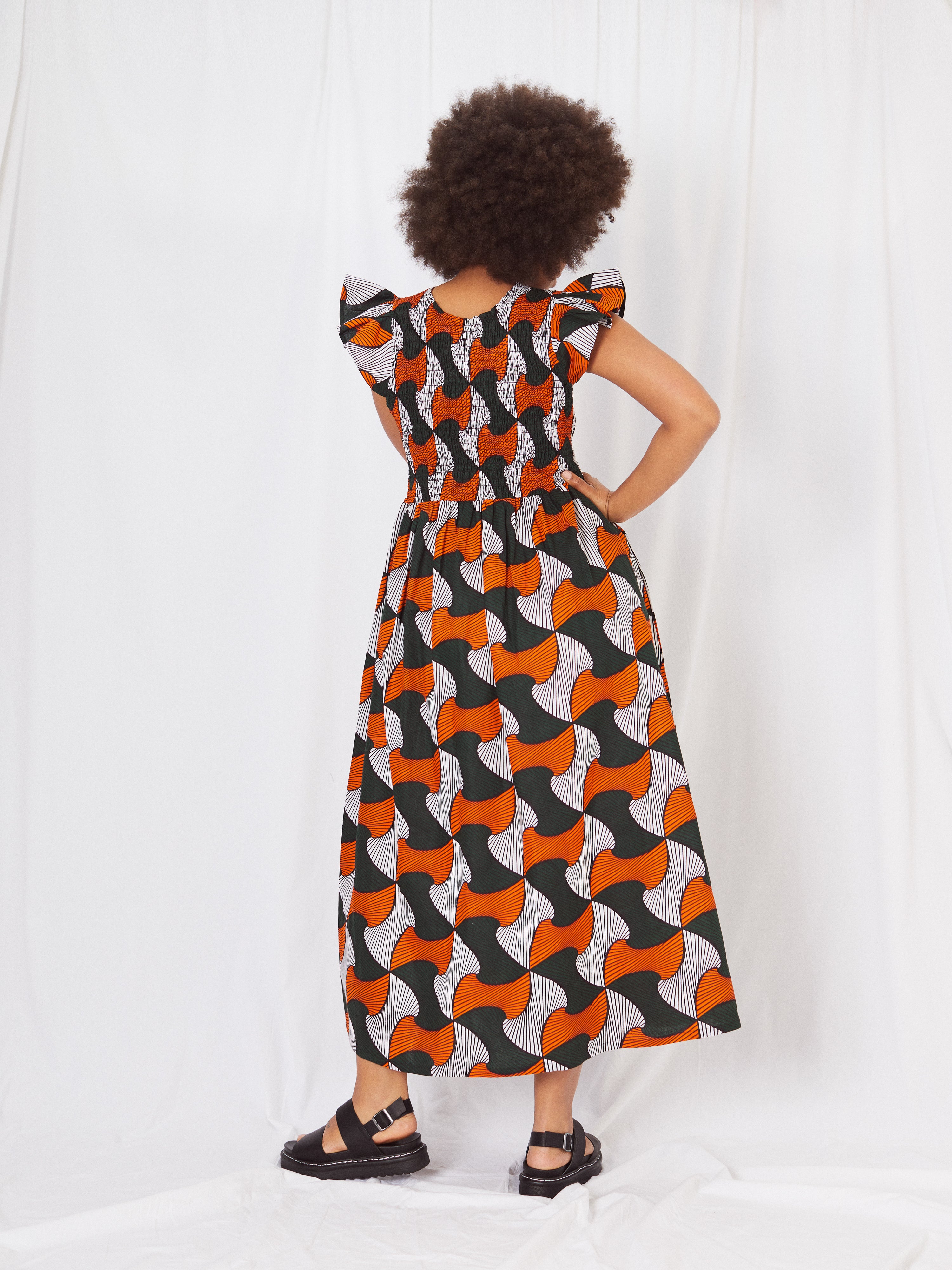 Yemi Full Gathered Midi Skirt – Structured Dutch Wax Cotton