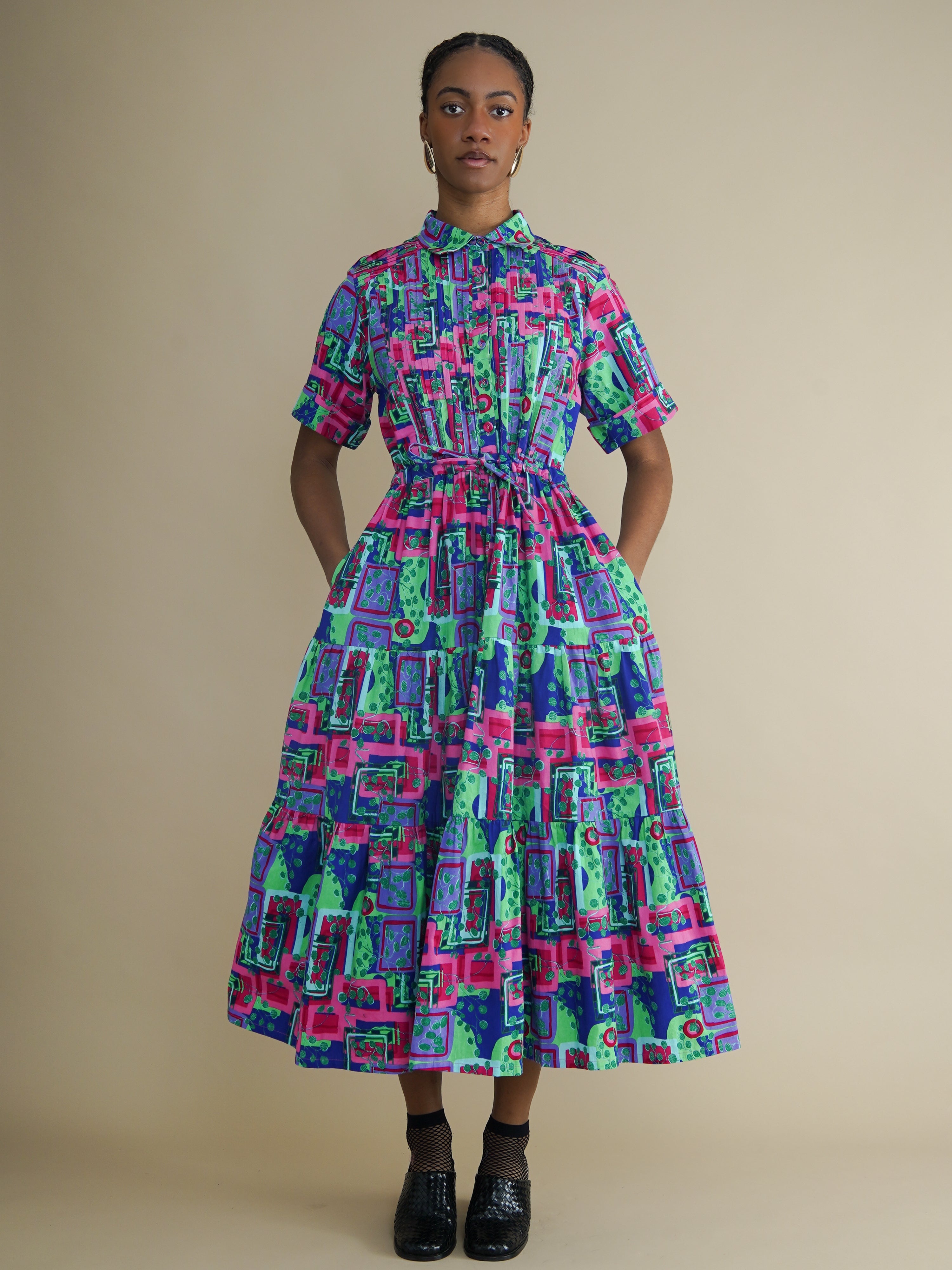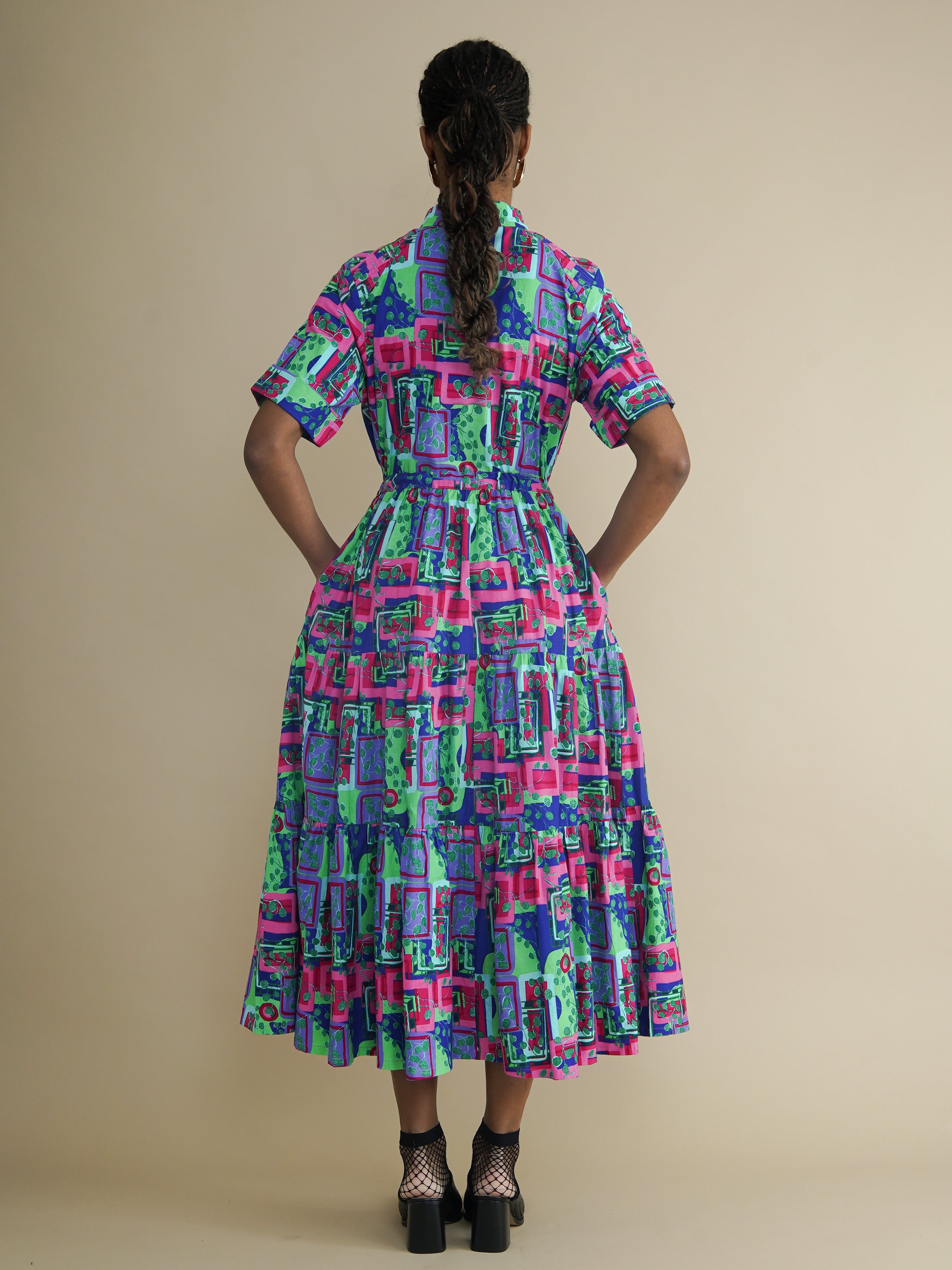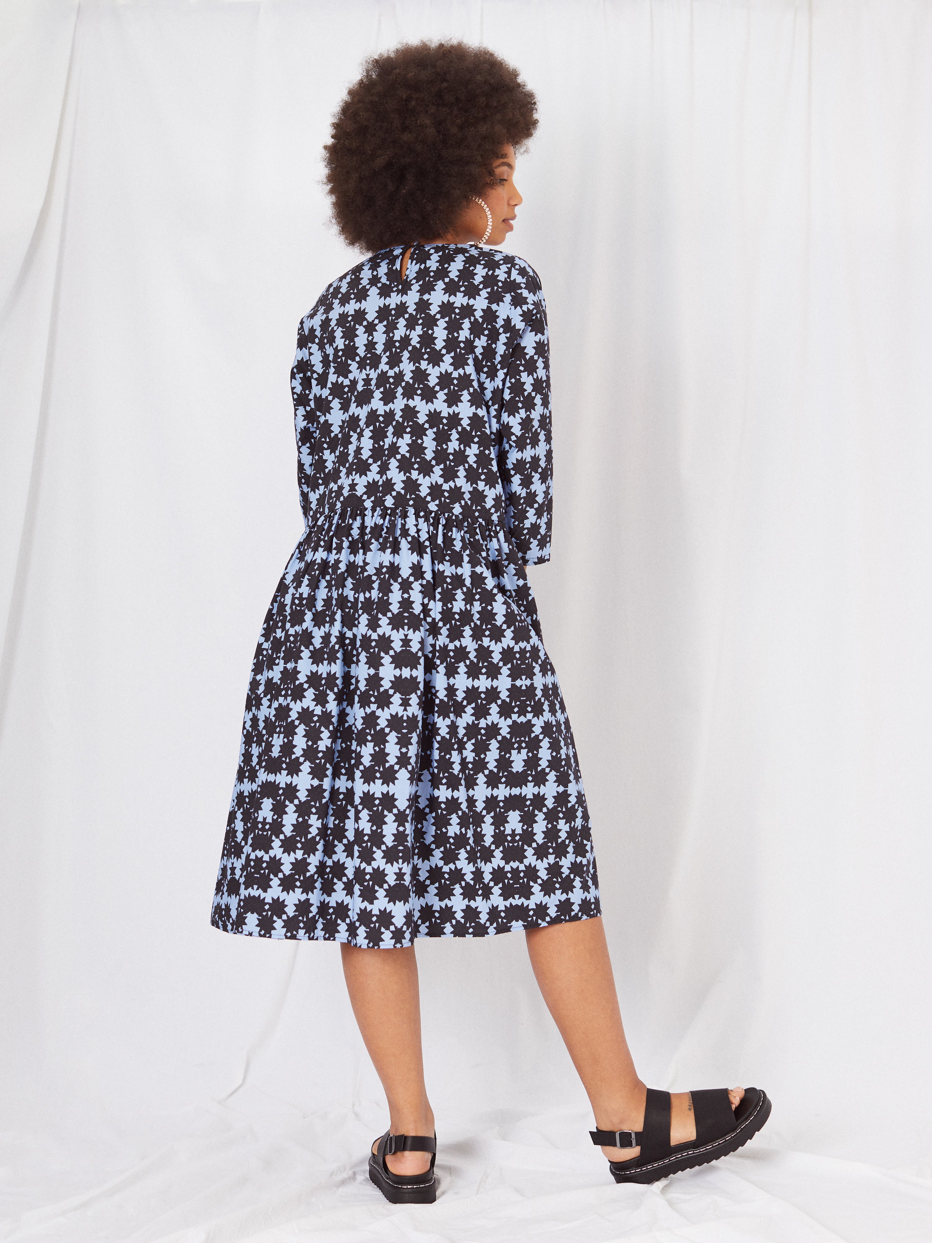Enitan Dress with Elasticated Waist & Turn-Up Sleeves
