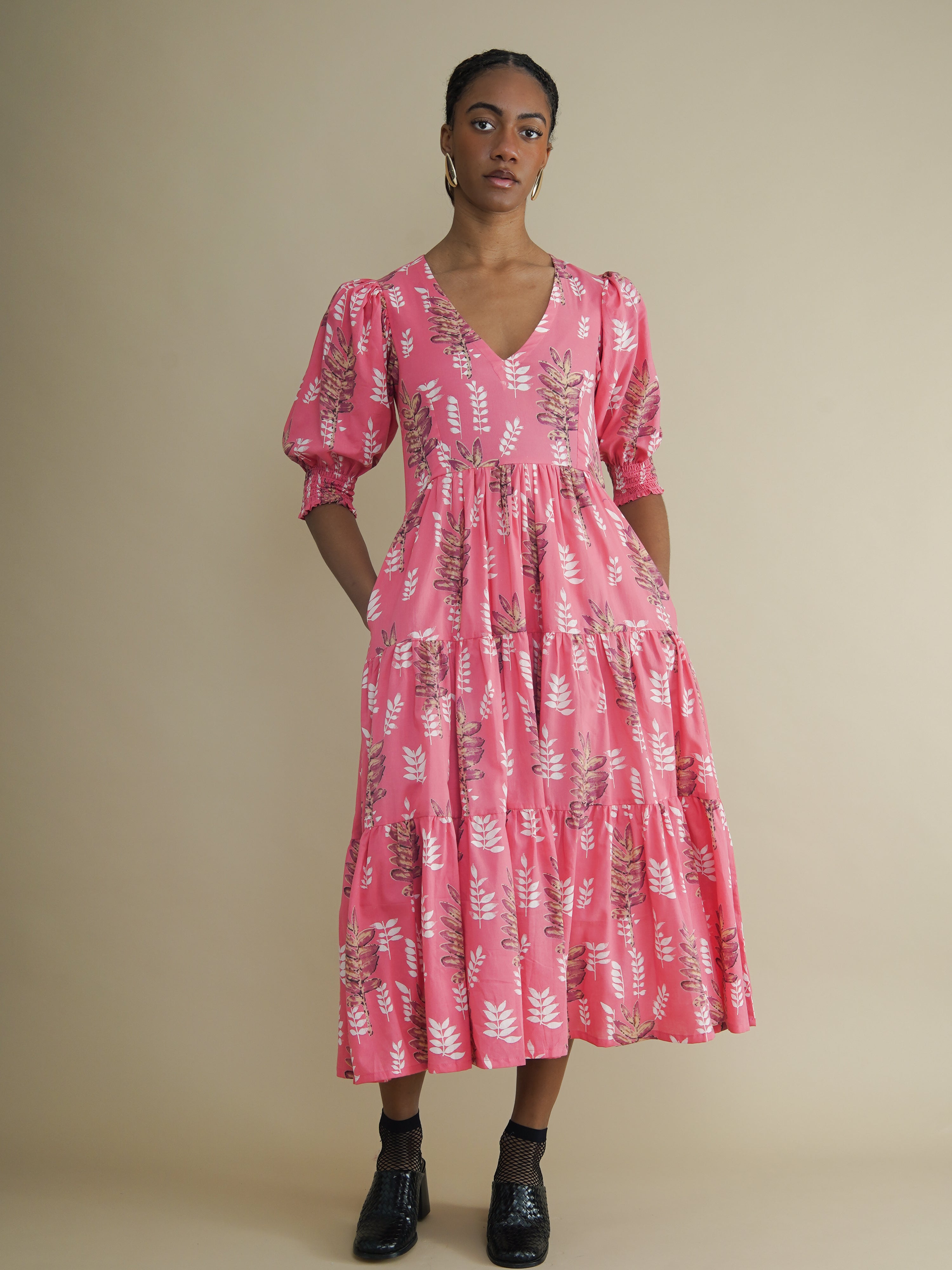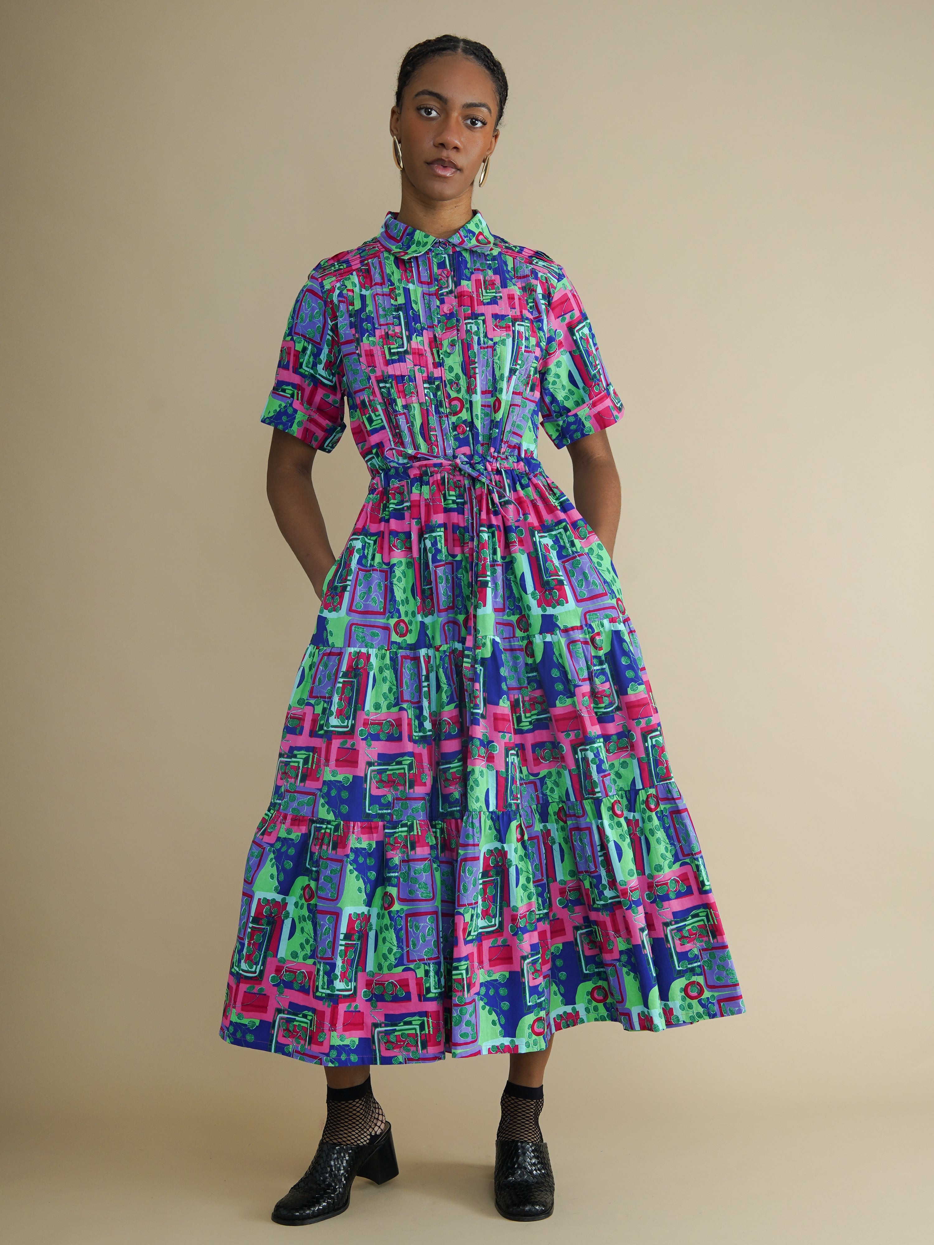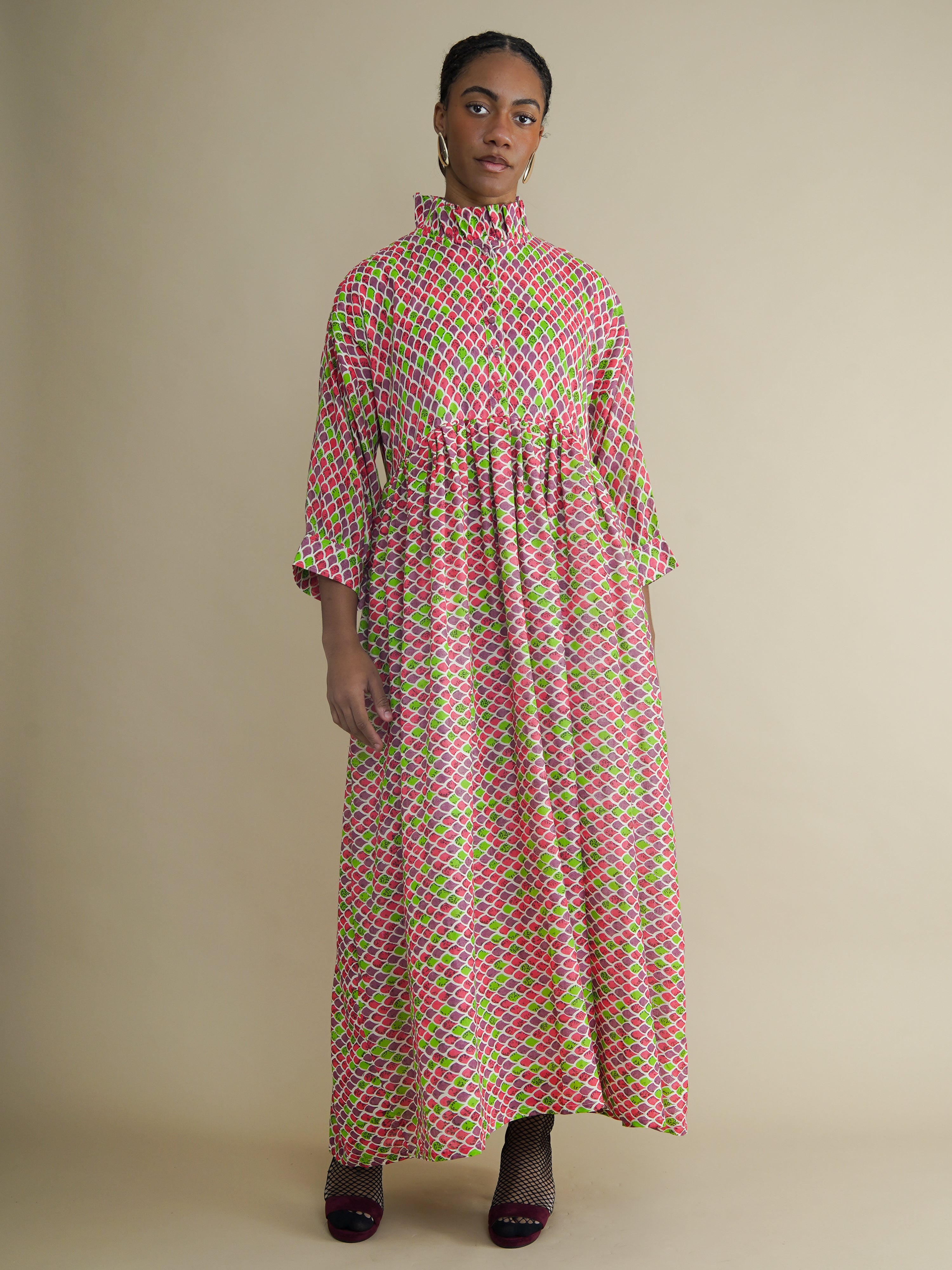 Enitan Dress with Elasticated Waist & Turn-Up Sleeves