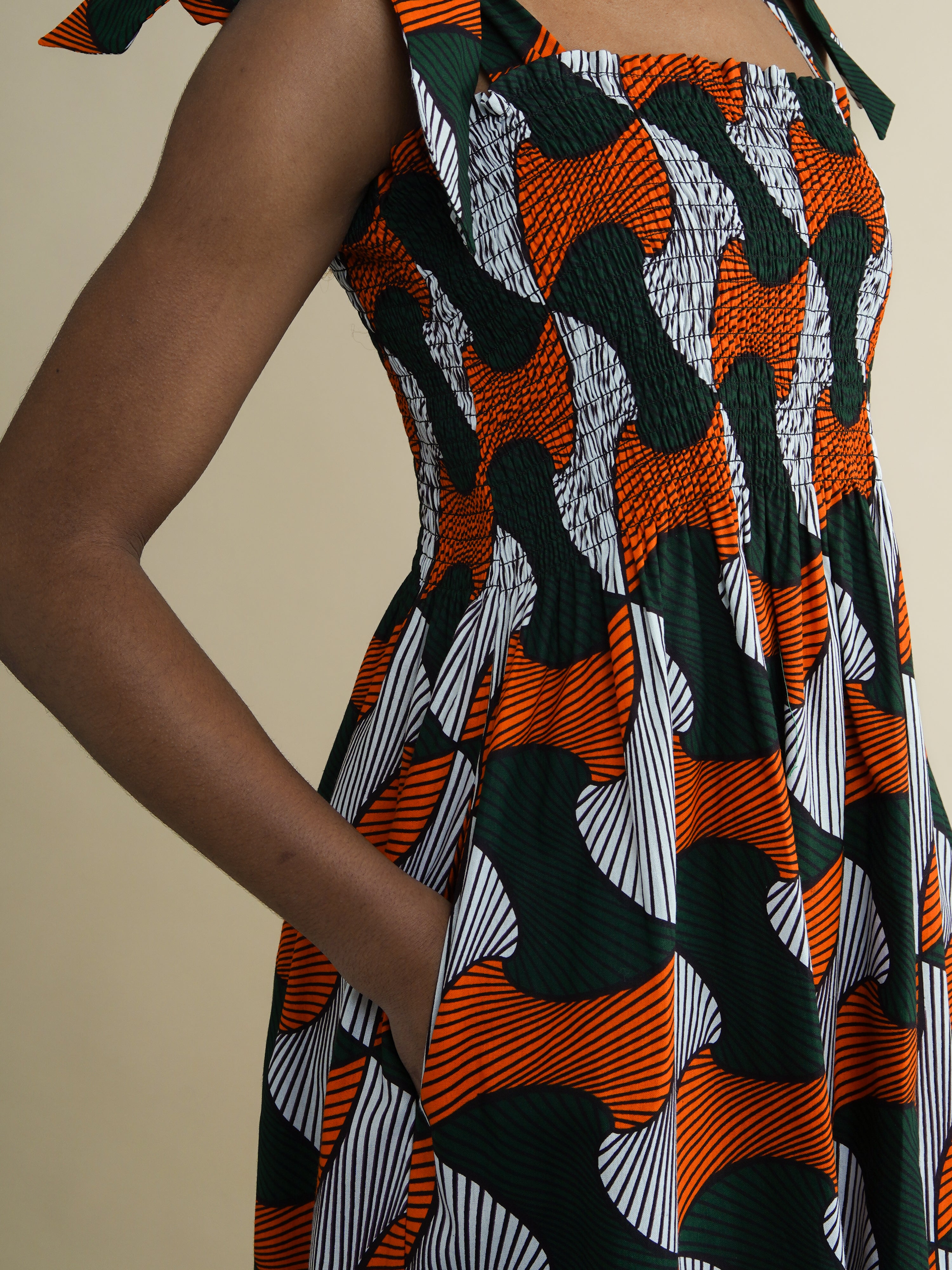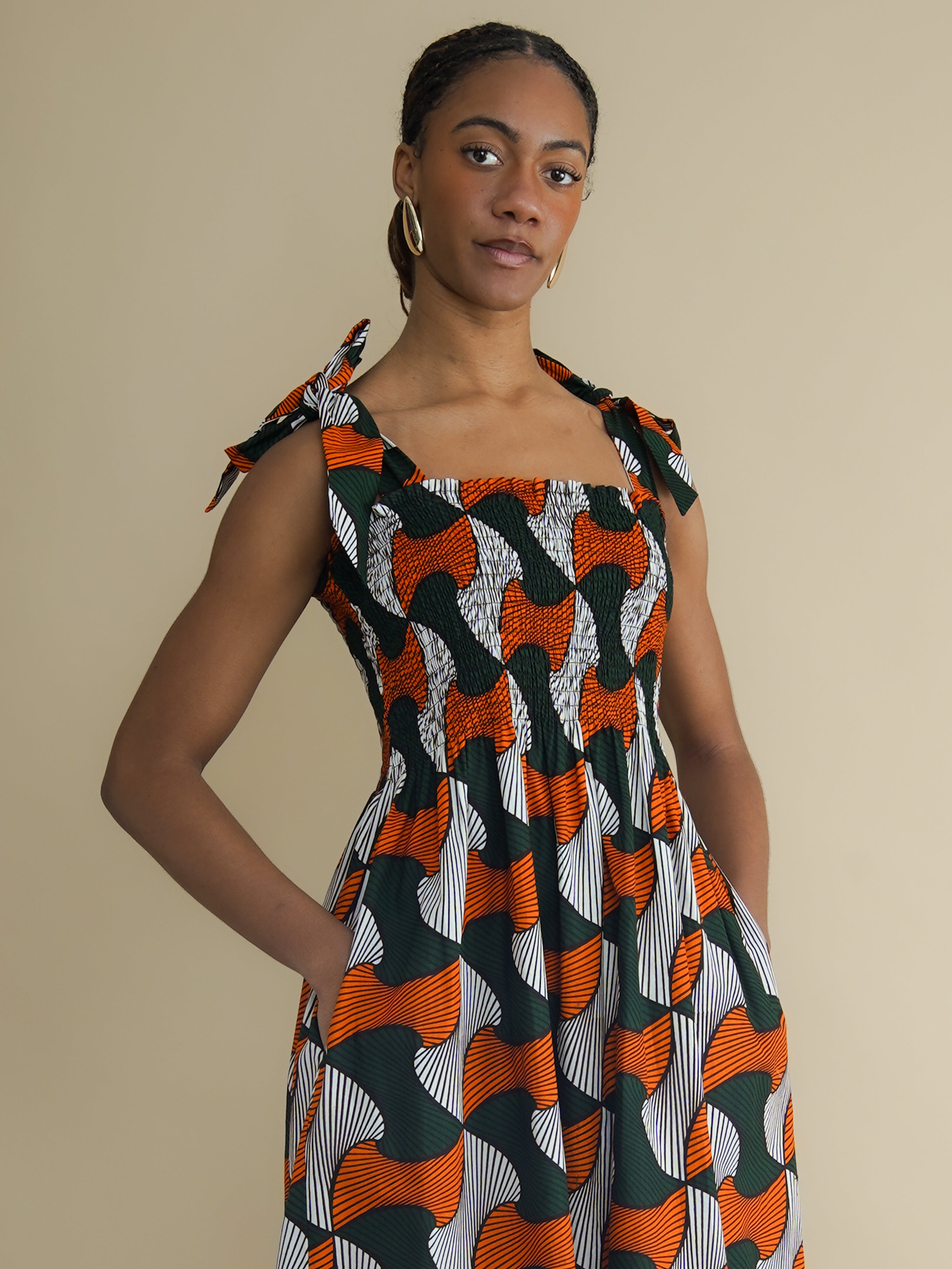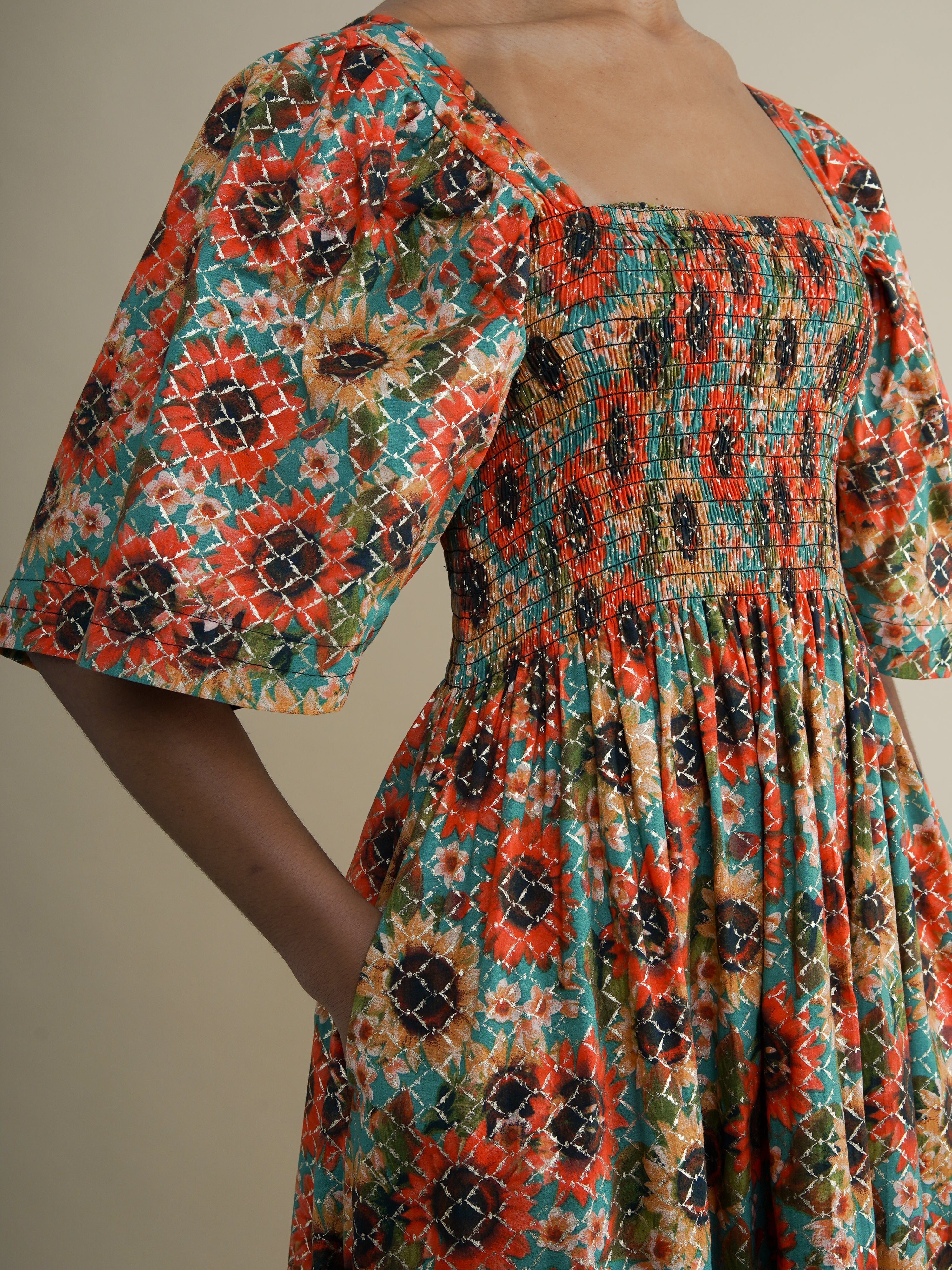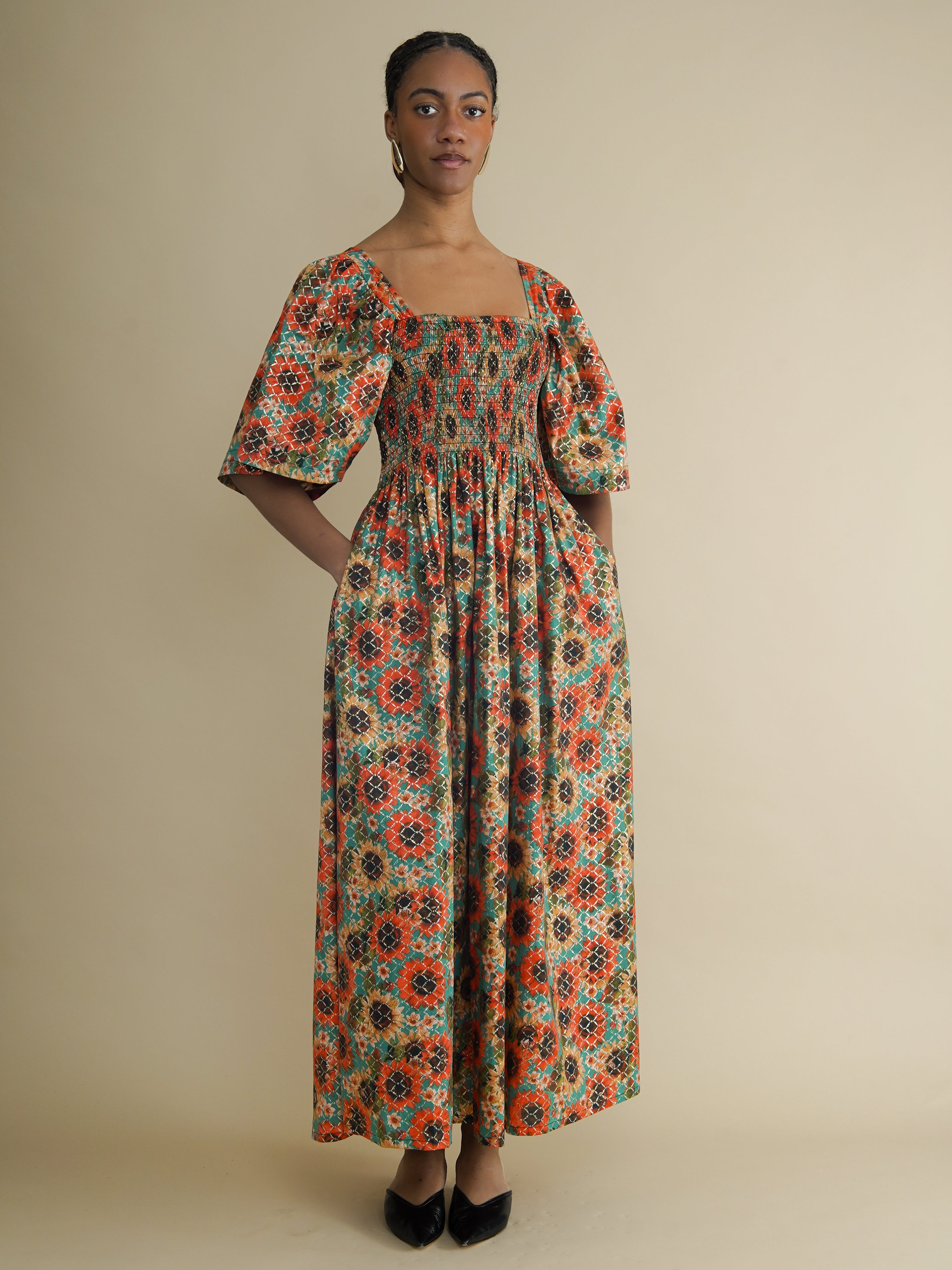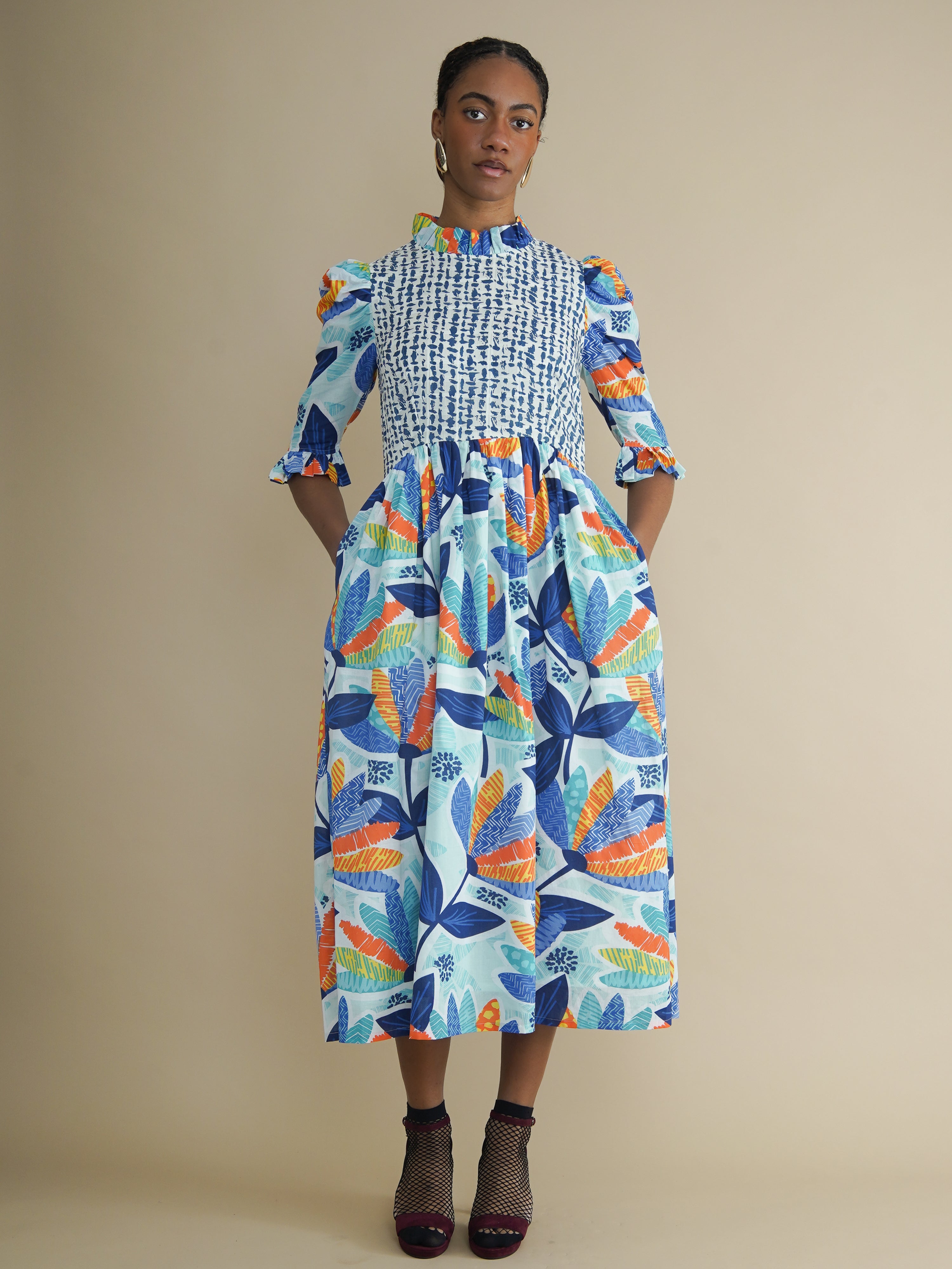 Mandy Smocked Midi Dress - Soft Cotton, Smocked bodice