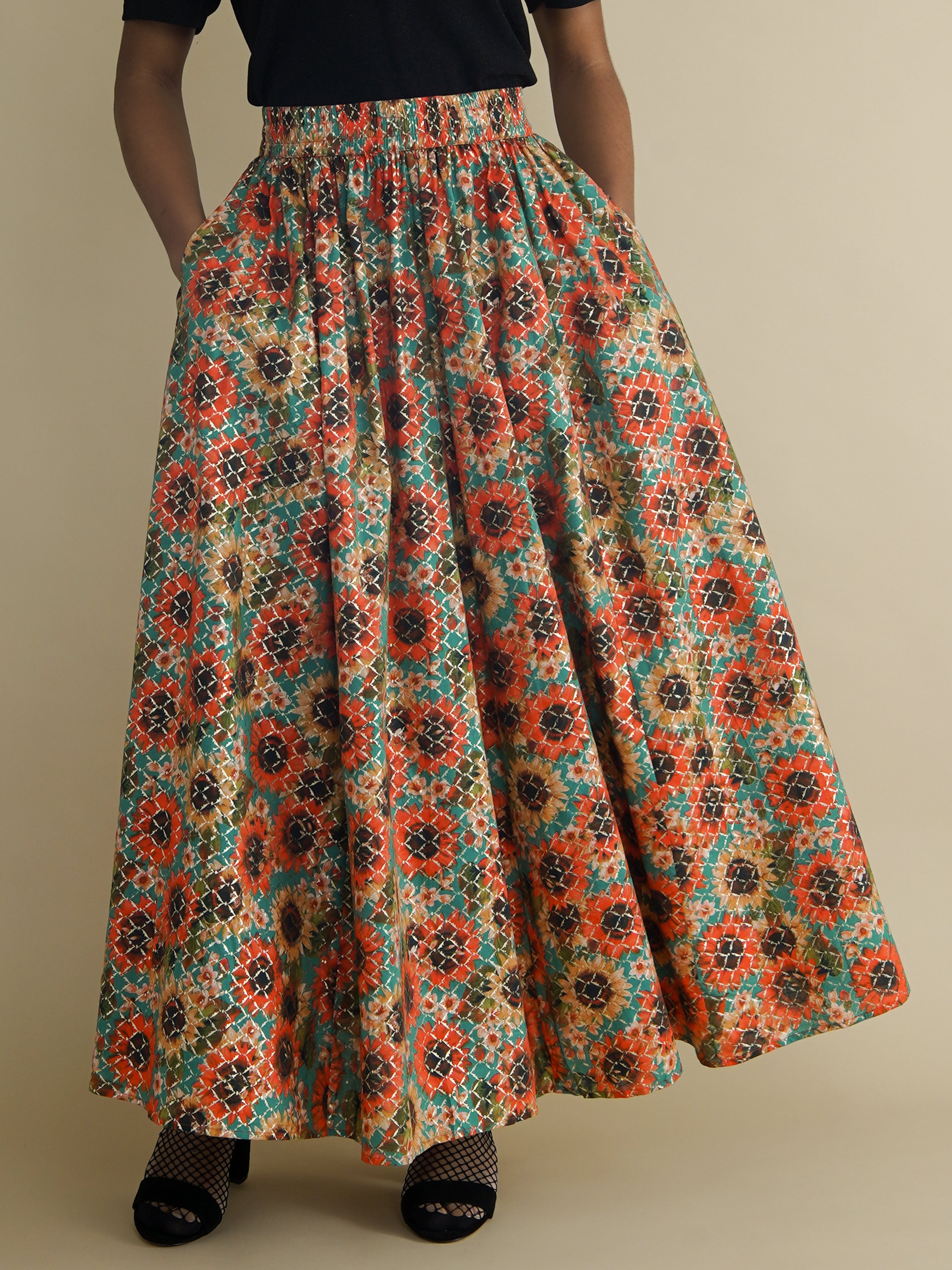 Yetunde Sunflower Cotton Bold Maxi Skirt