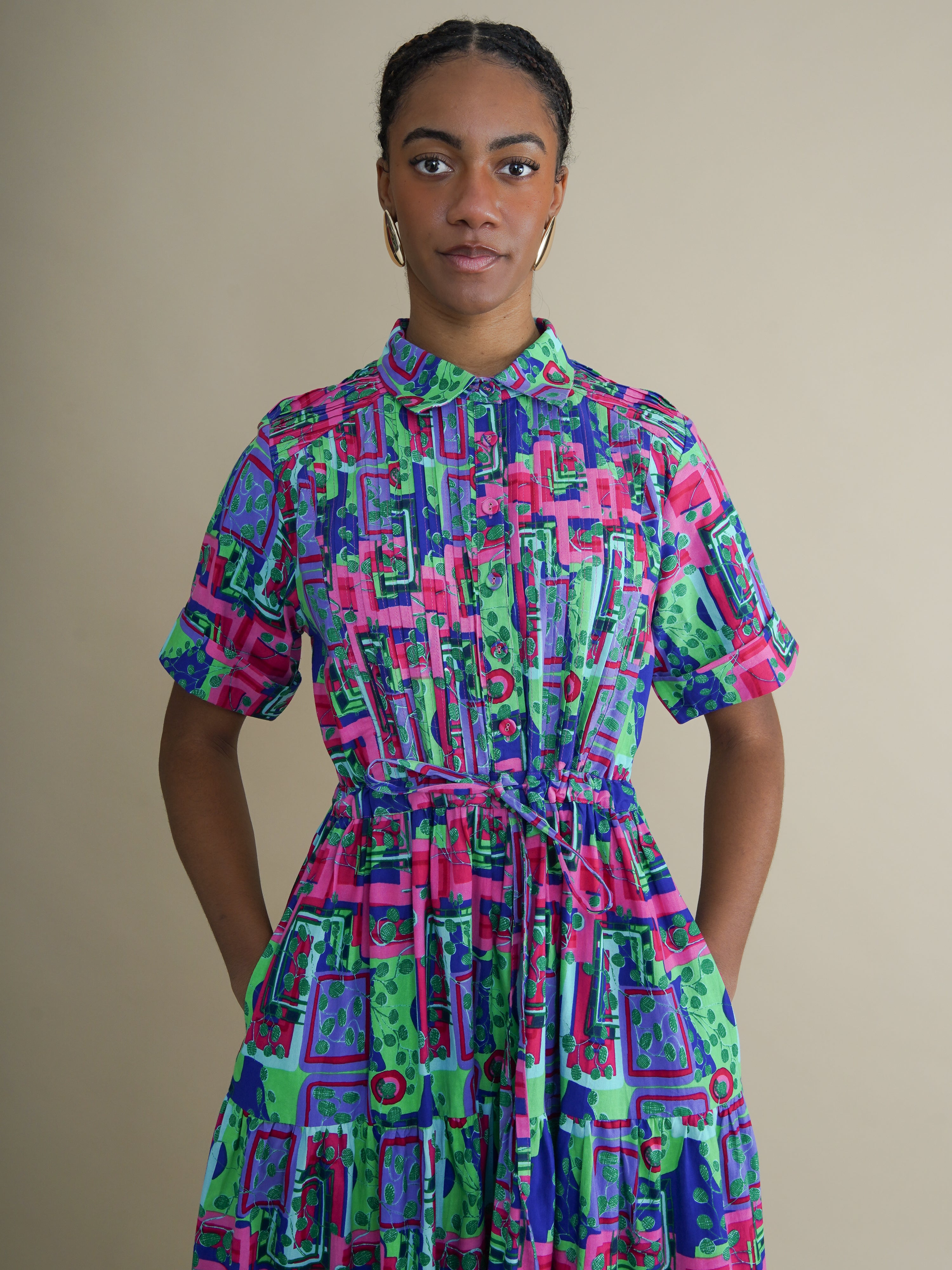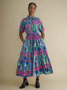 Finished with a classic shirt collar, button-through front, short sleeves with turn-ups, and a layered skirt, the Ayodele is as practical as it is thoughtful. Wear it with trainers or sandals in warmer months, or boots when the weather turns cooler.