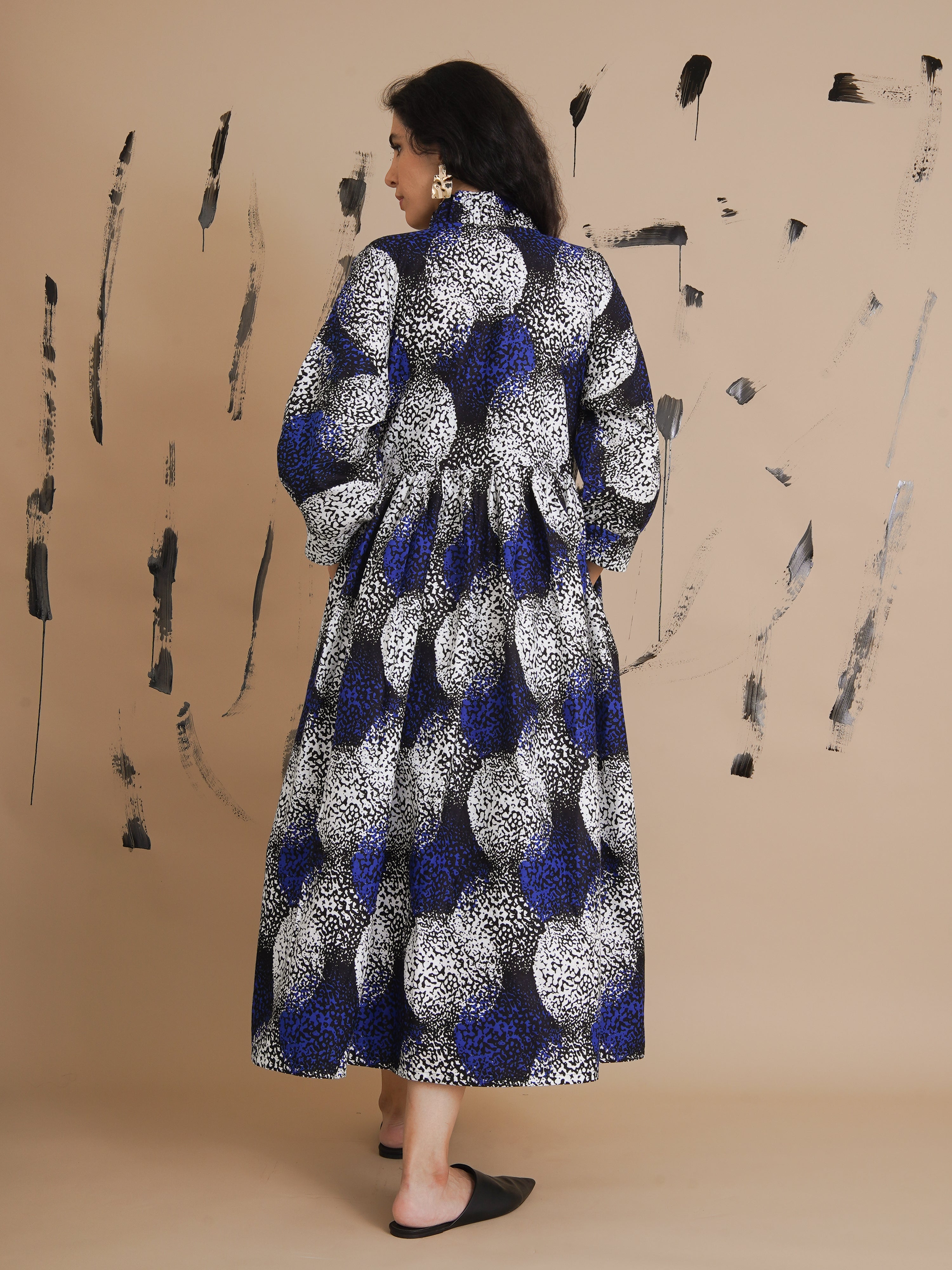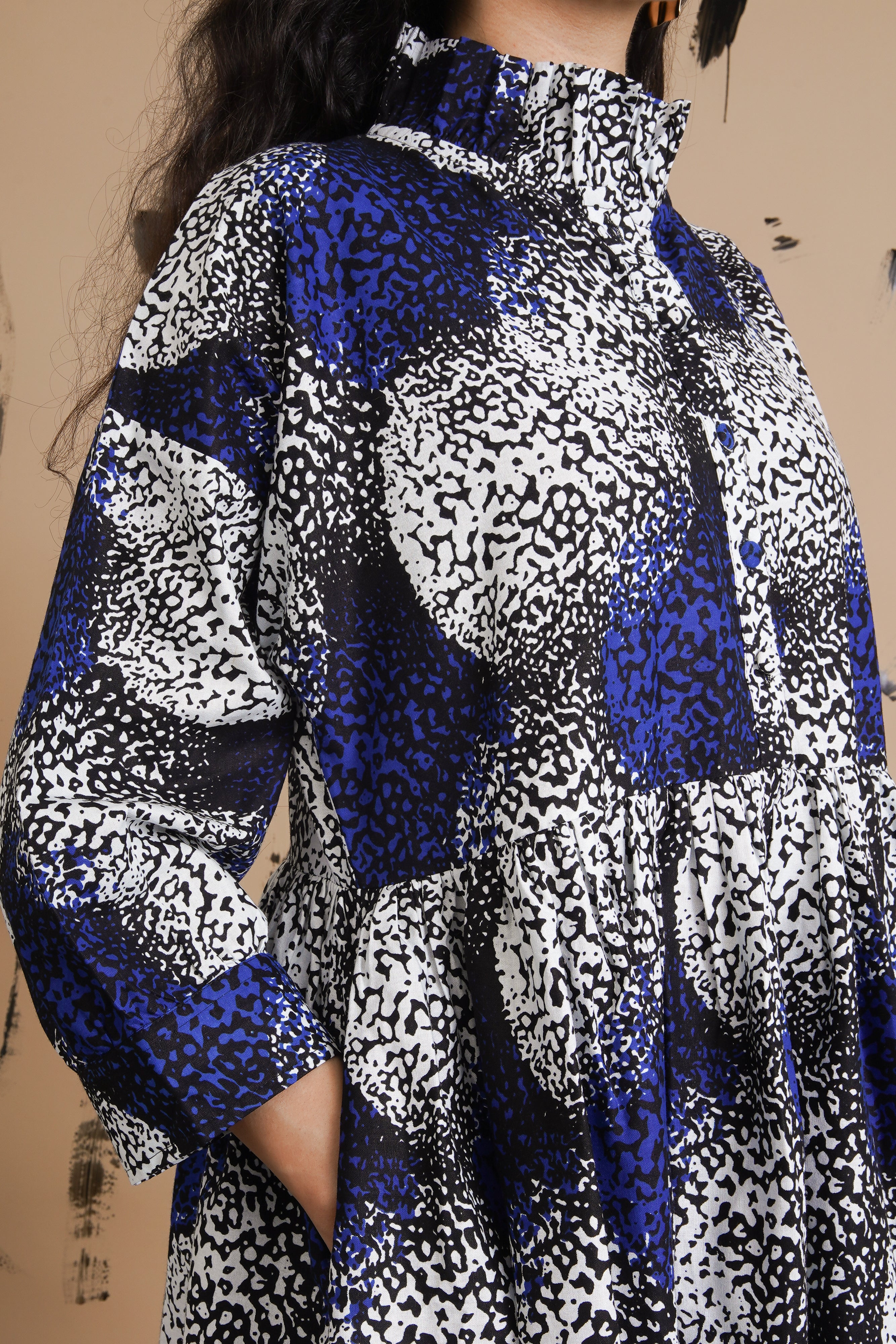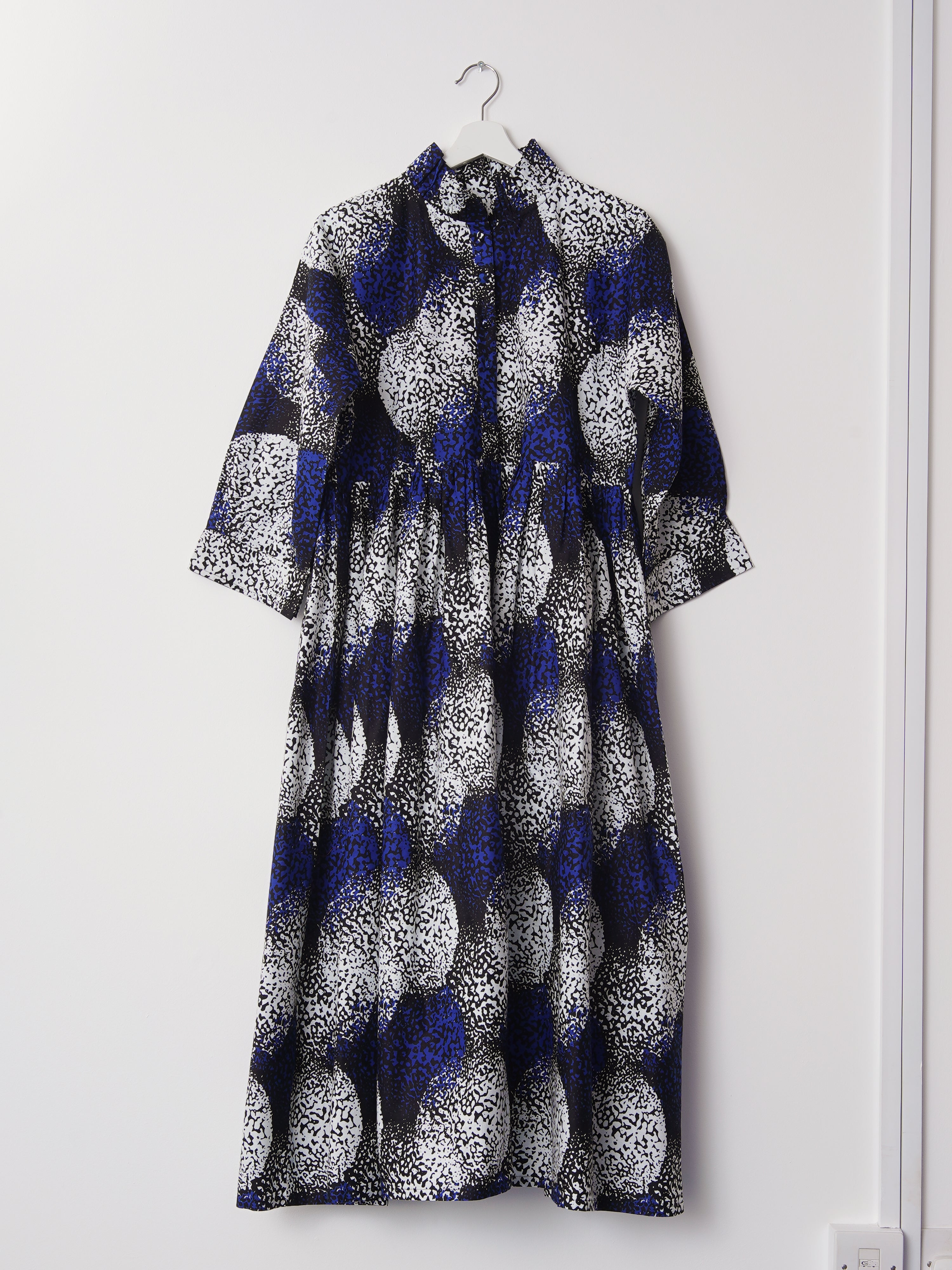 Inspired by Yvonne's love for Scandinavian and Japanese relaxed-fit dresses, this dress will not disappoint you. It is the perfect relaxed-fit dress that still makes a statement with its high collar and voluminous sleeves.