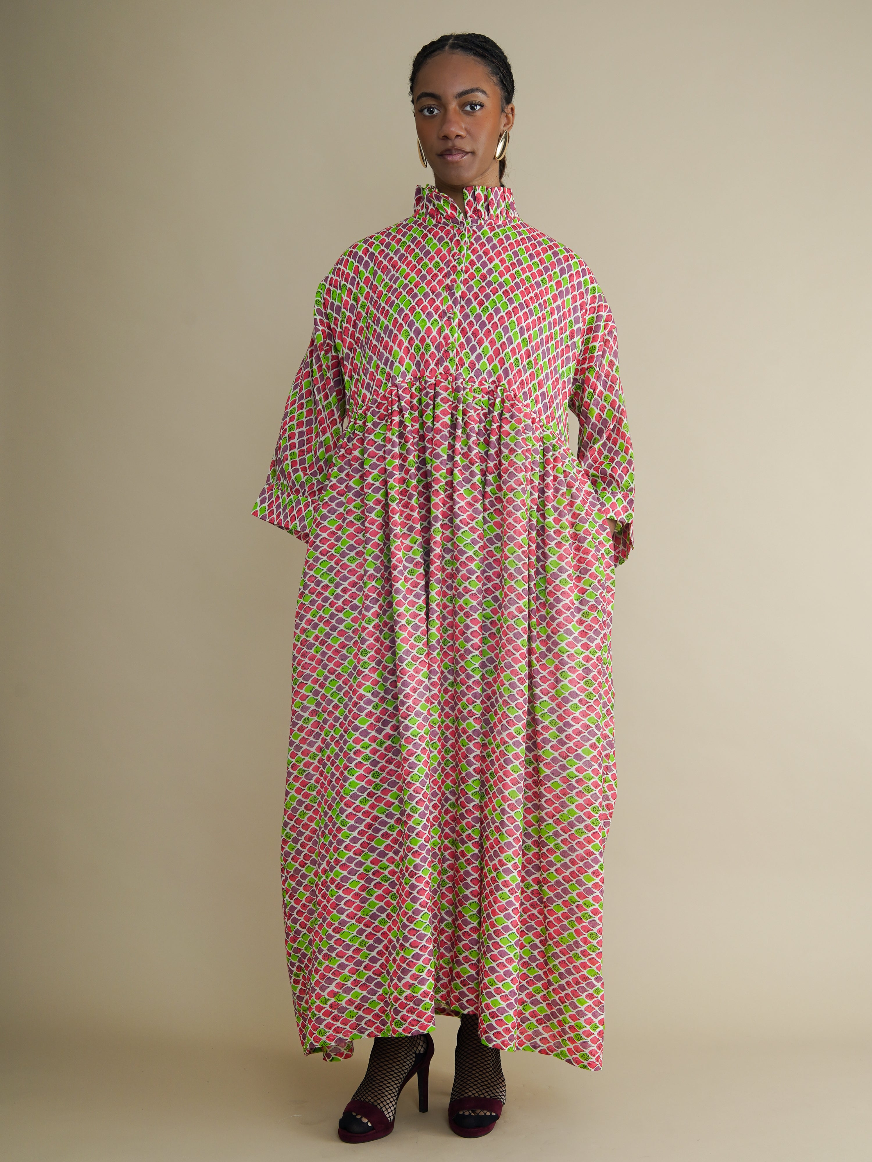 Inspired by Yvonne’s love of Scandinavian and Japanese relaxed-fit dressing, the Sade Garden Maxi Dress is designed for ease, volume, and quiet impact. This is a dress that doesn’t try to follow the body — it gives you space to move, breathe, and feel comfortable while still making a statement.