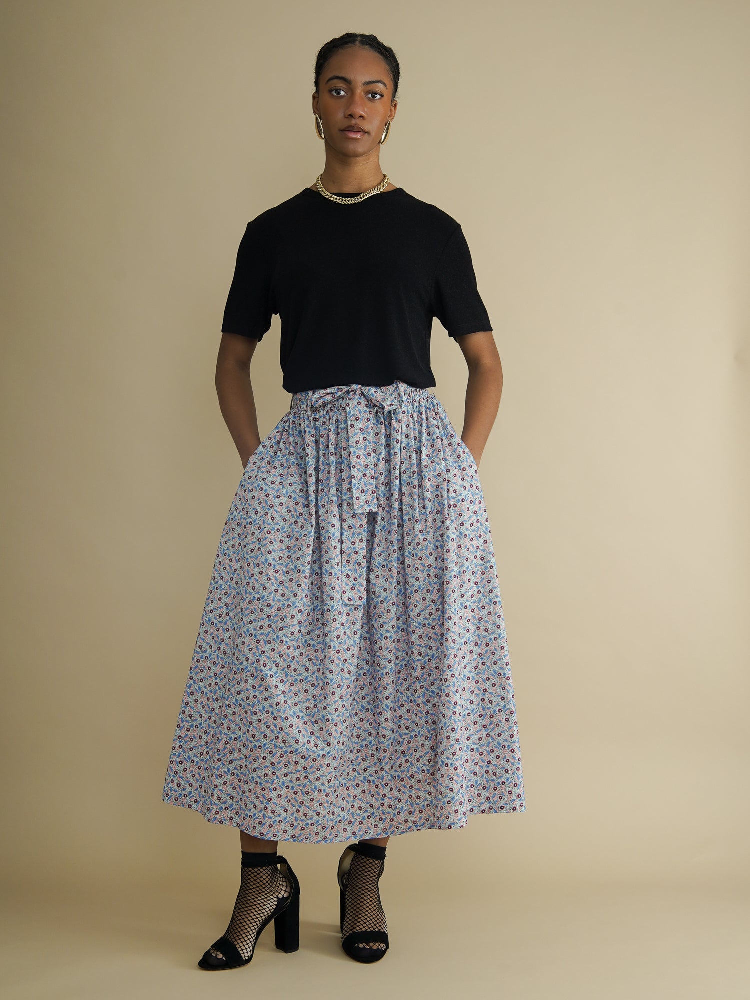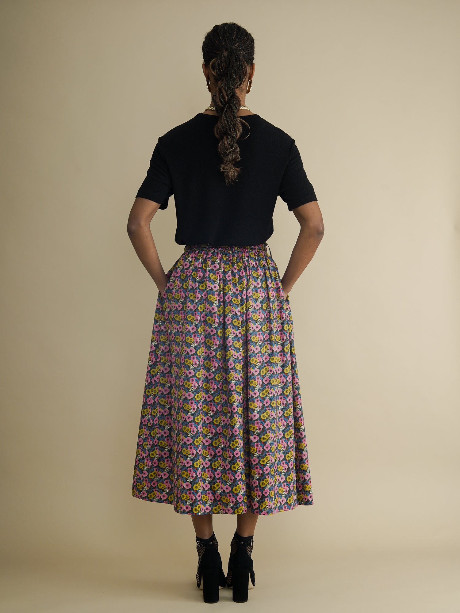 Harriet Midi Skirt – Cotton, Belted, Floral Print
