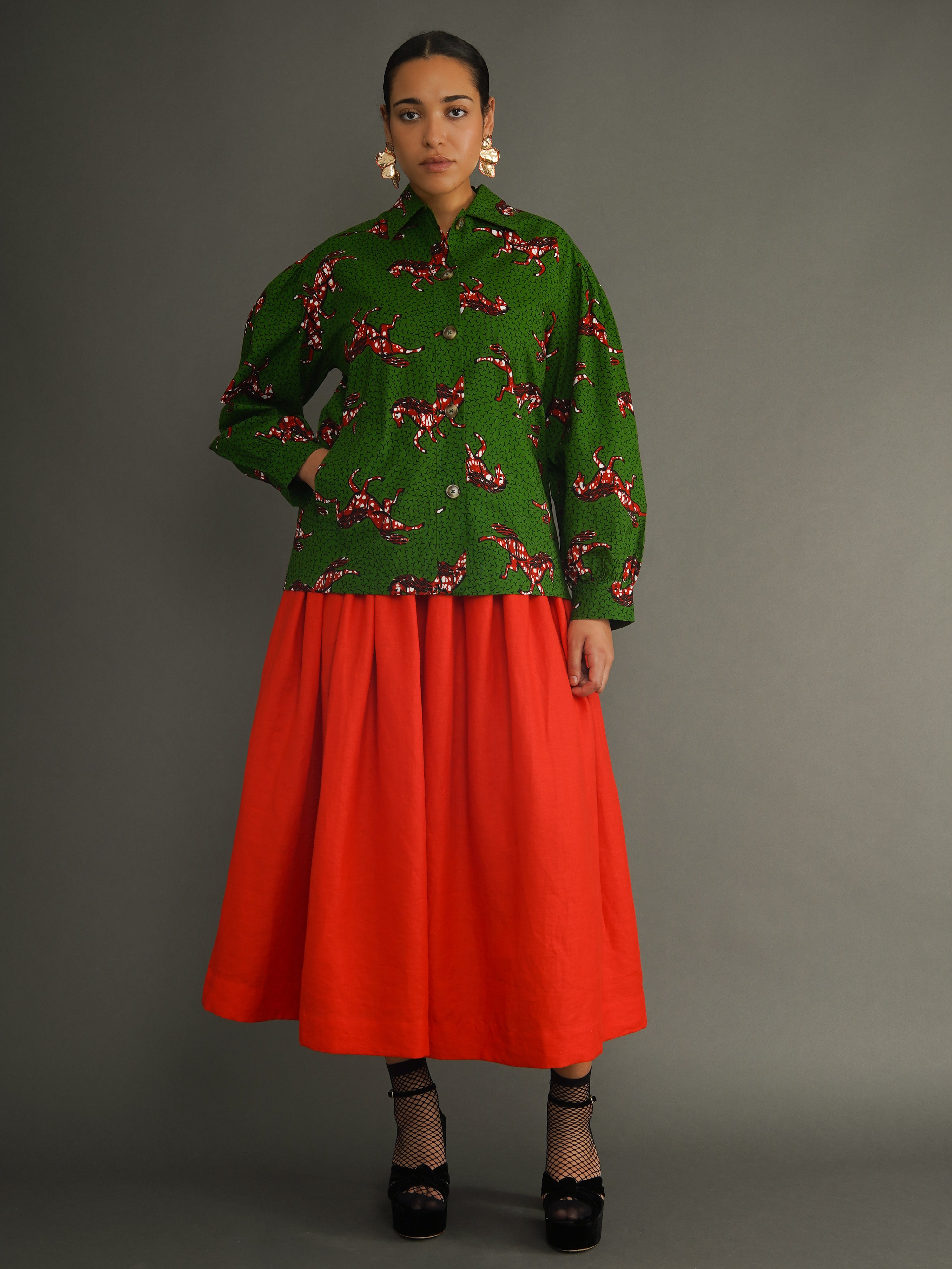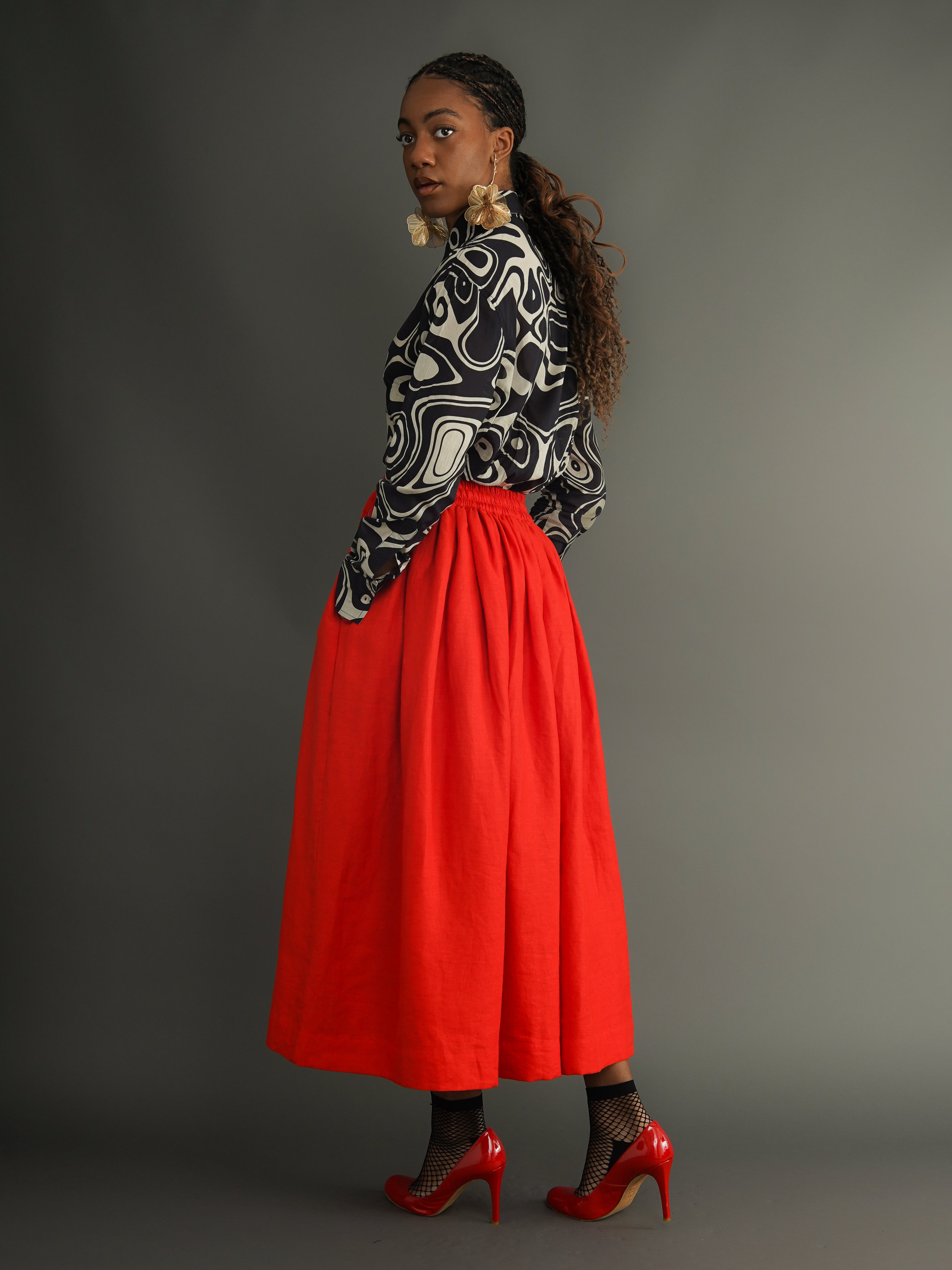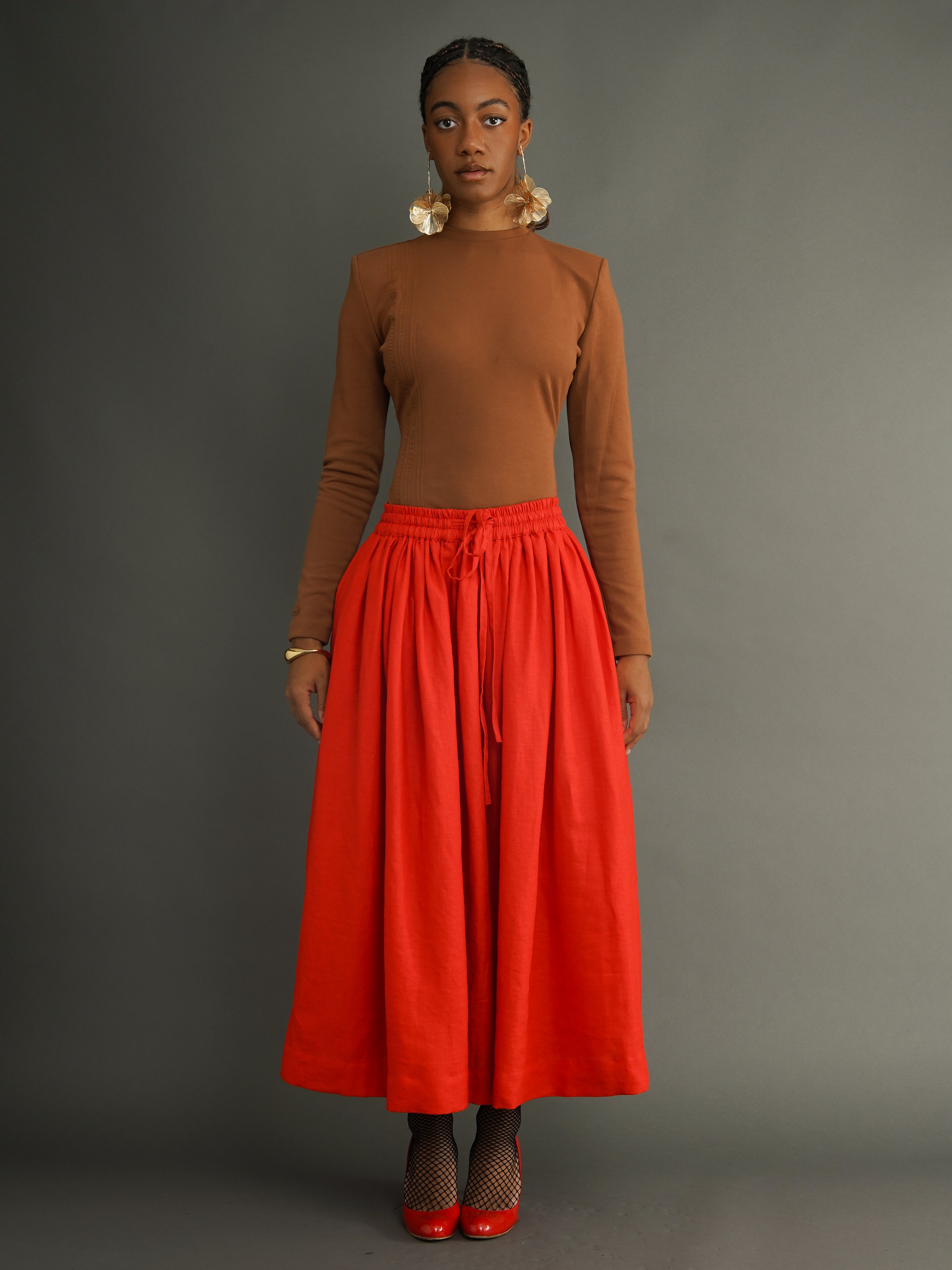 An elasticated waistband adds all‑day ease, and the adjustable drawstring lets you fine‑tune the fit. Functional side pockets mean the skirt is both beautiful and practical. Amina is the one you reach for when you want bold colour, fluid movement, and a shape that feels both relaxed and elegant.