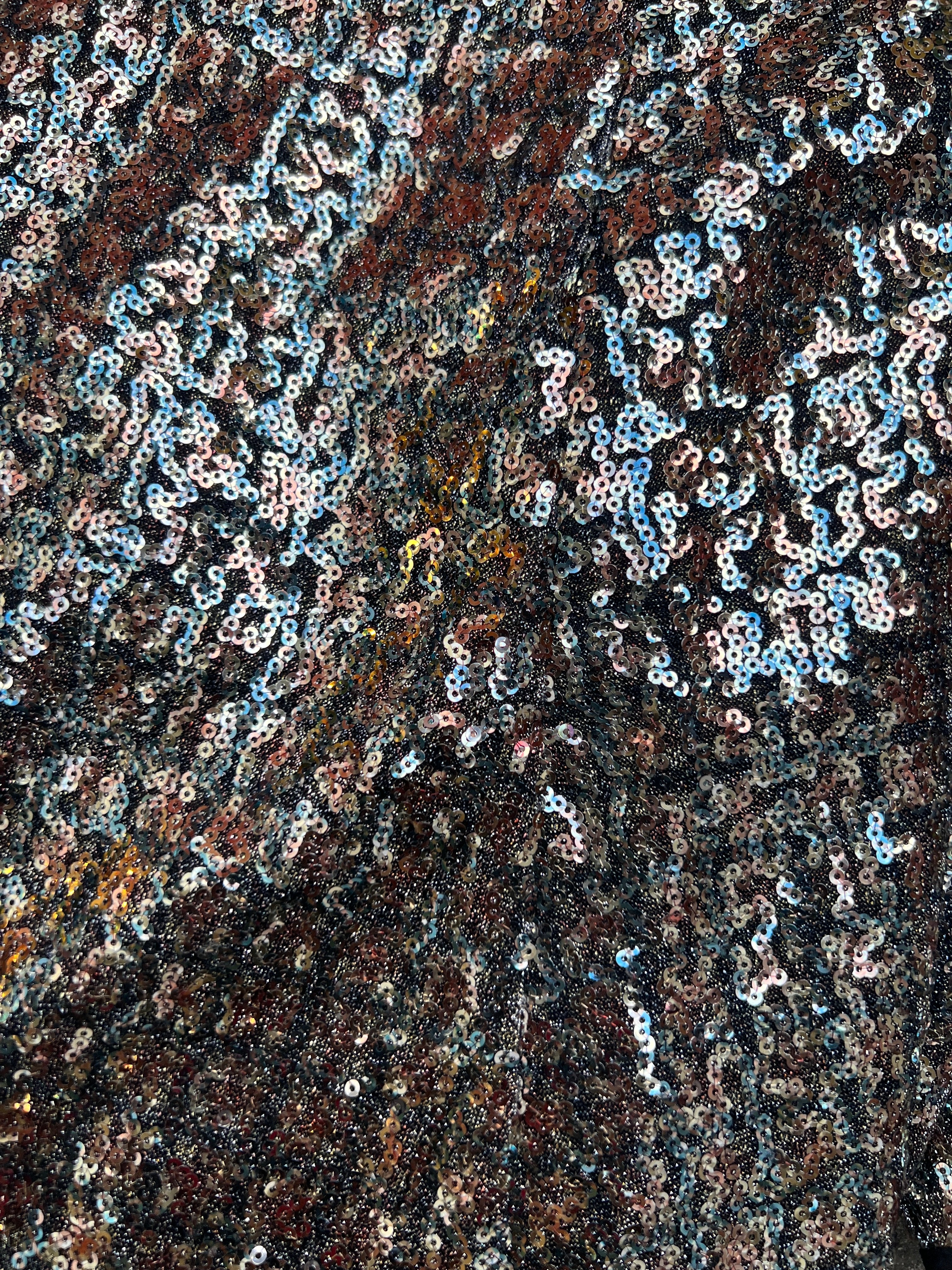 Because sequins and metallic fabrics reflect light differently, the skirt may appear brighter or darker depending on the lighting and the screen you’re viewing it on.