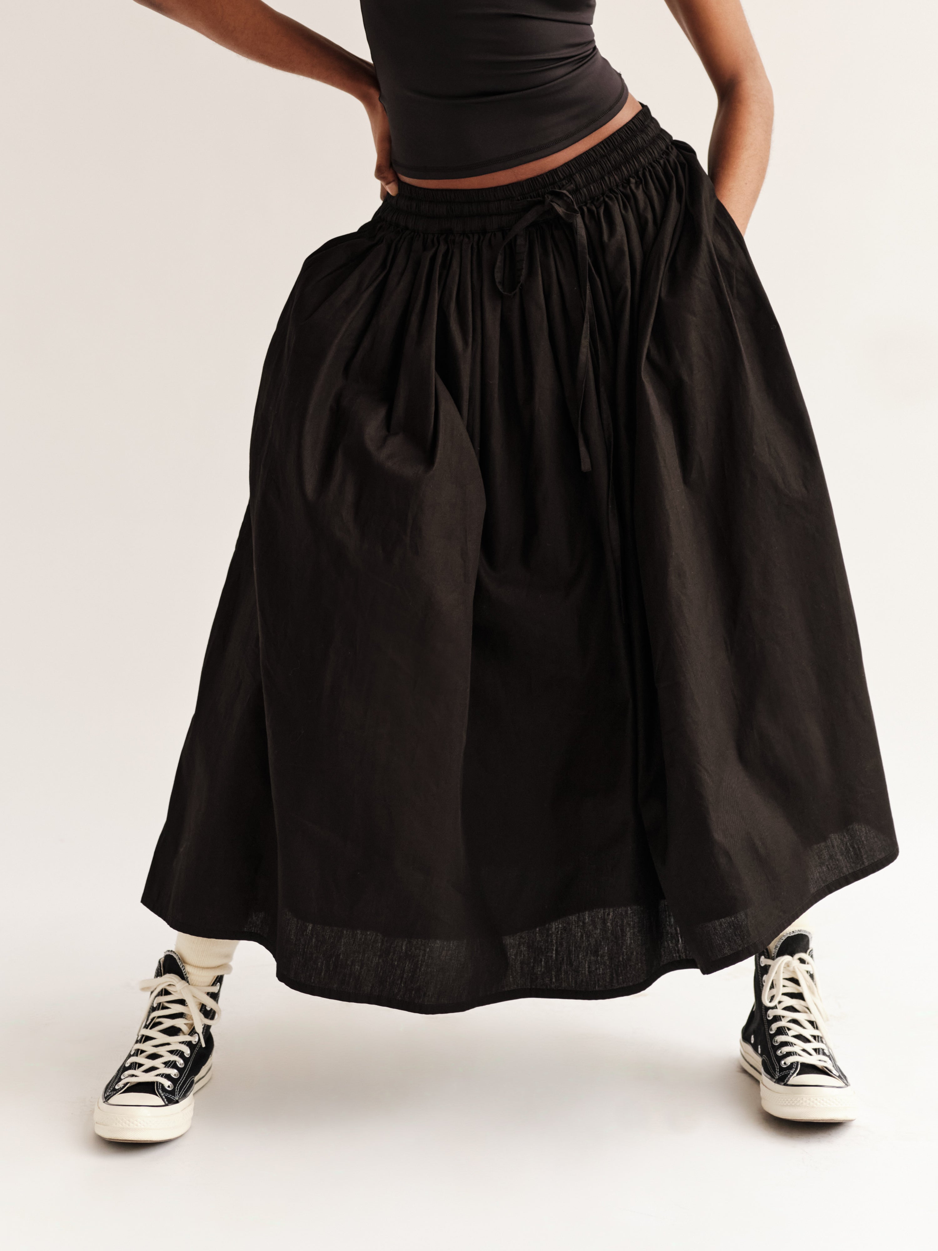Mariam Full Gathered Skirt – Cotton Midi Skirt with Drawstring & Pockets