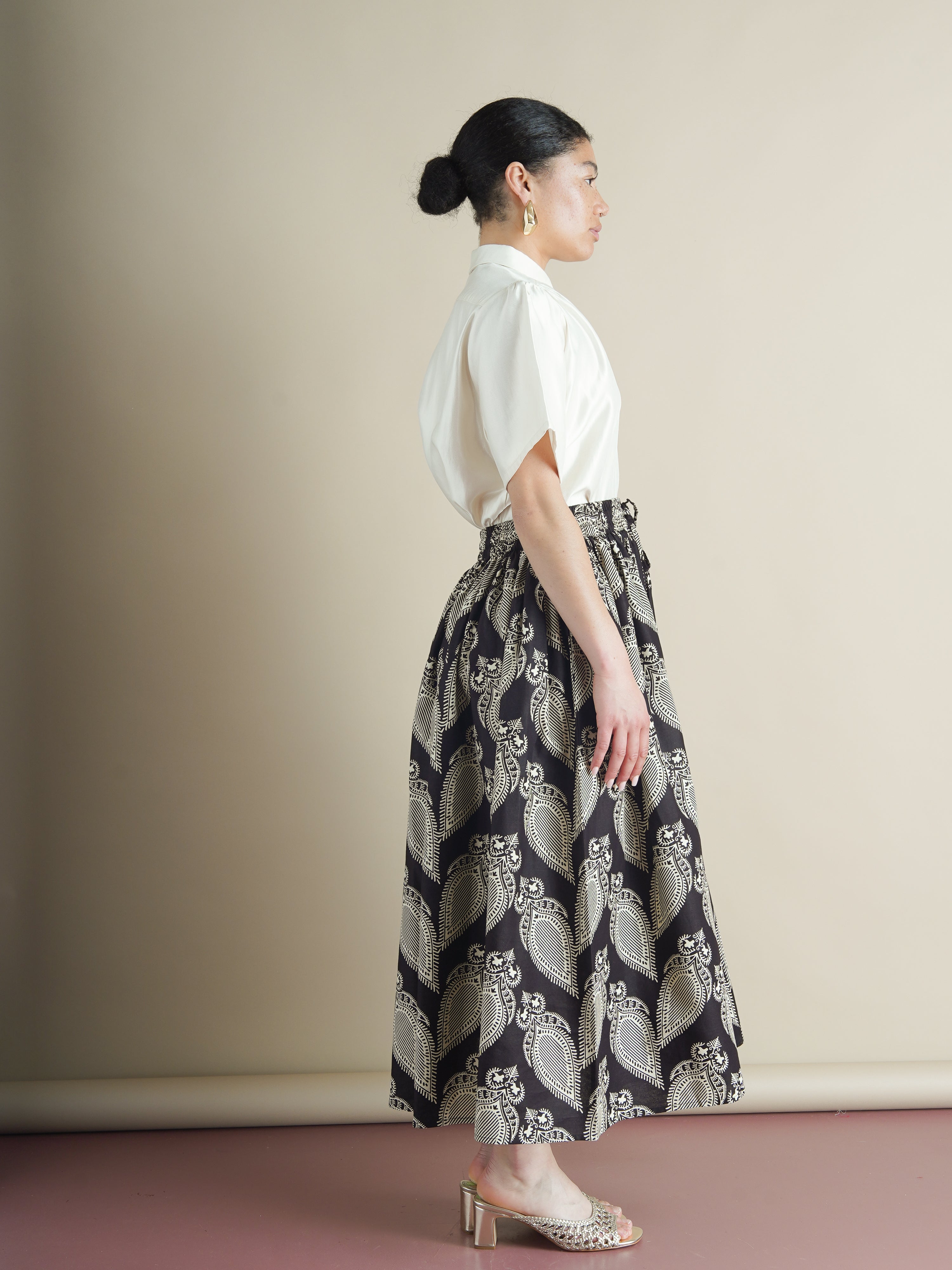 Mariam Leaf Gathered Skirt in Dutch Wax Cotton