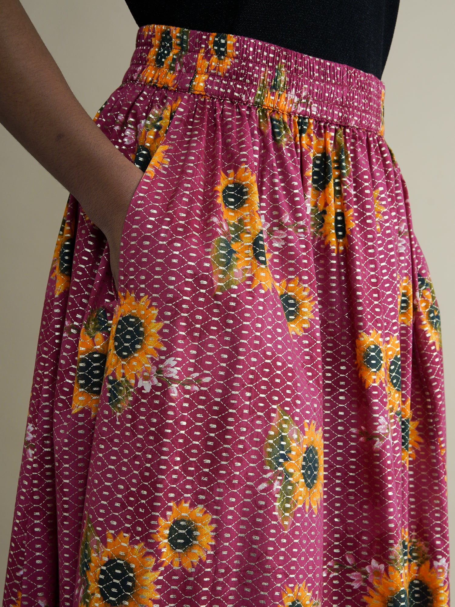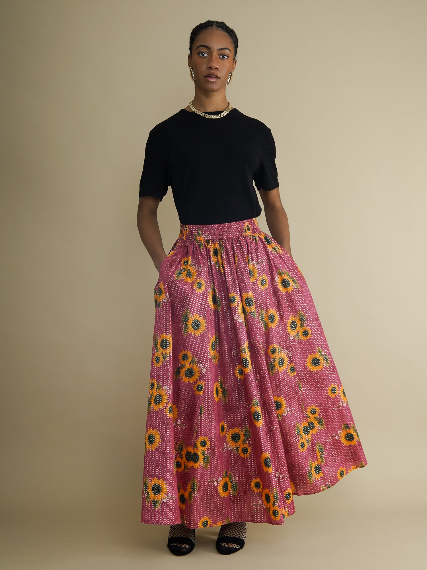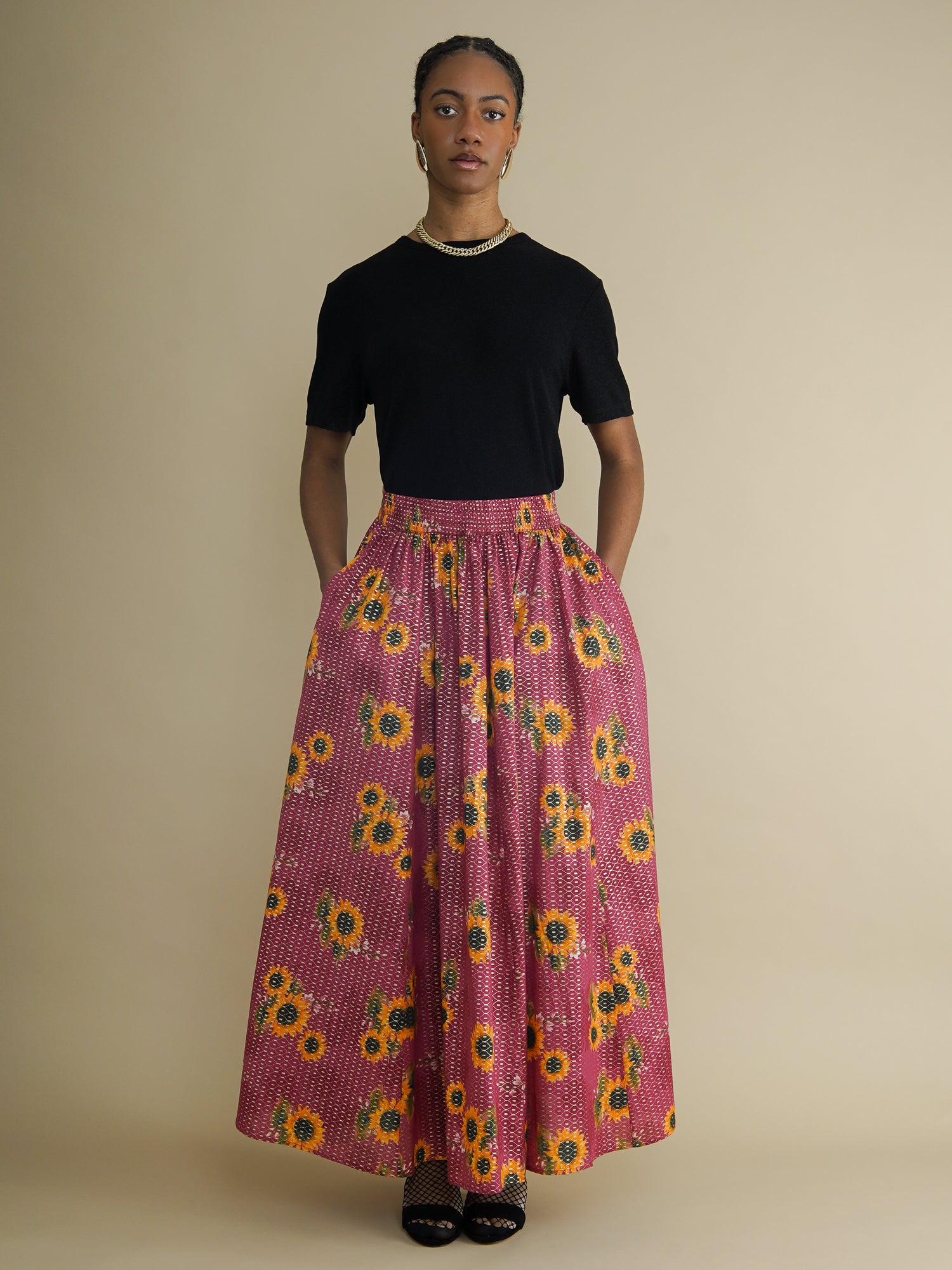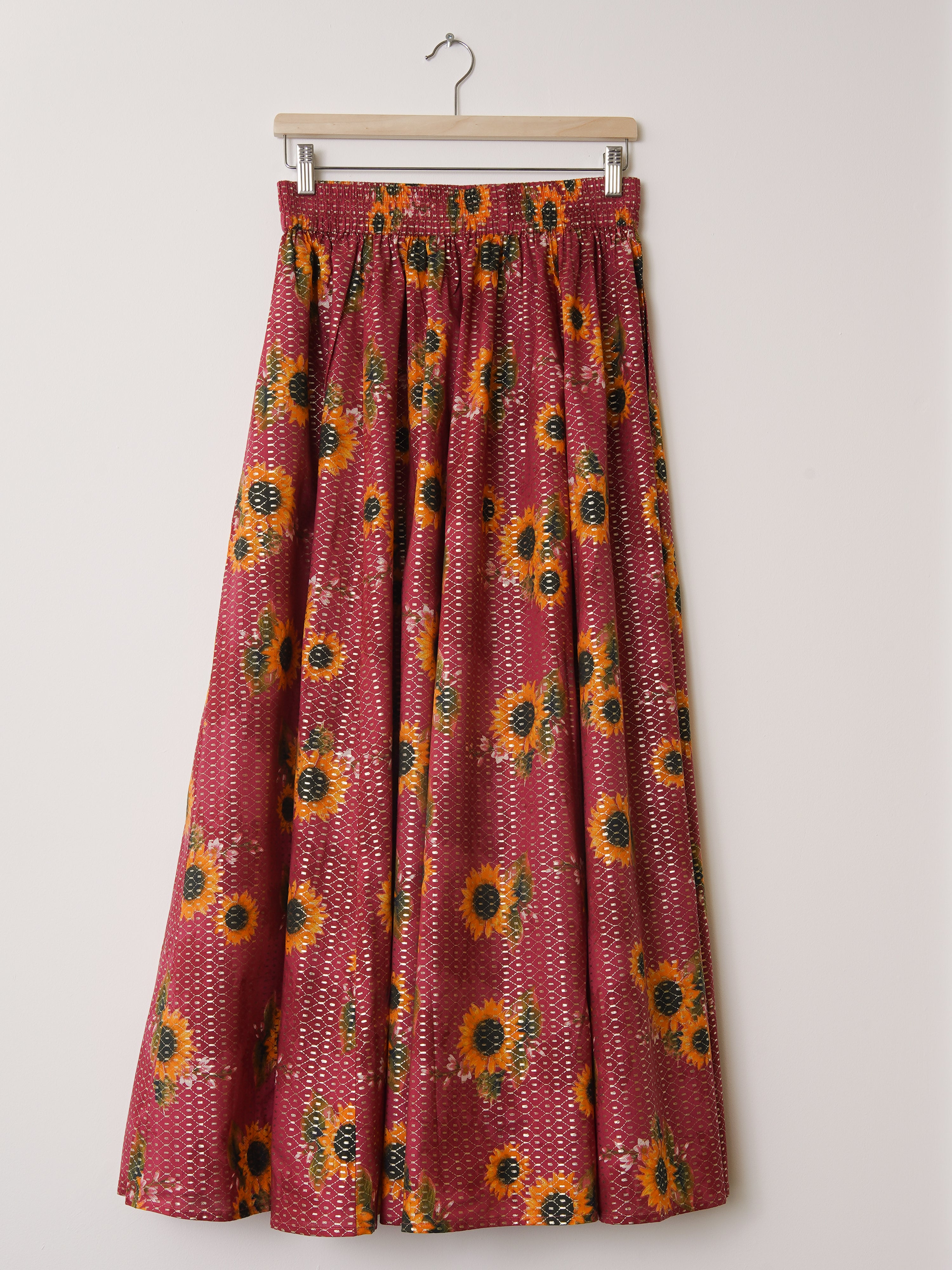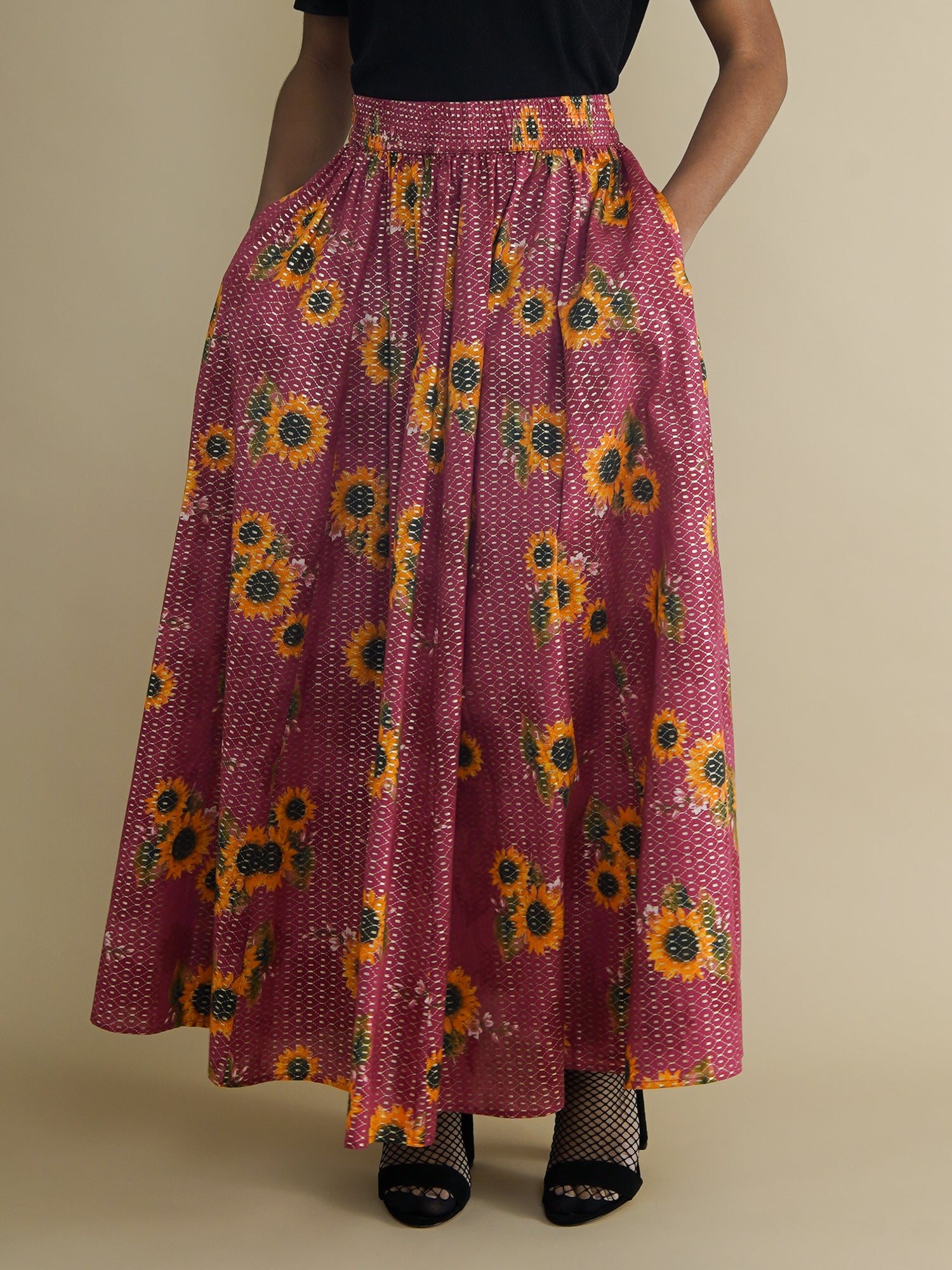 The Michelle Sunflower 8 Panel Maxi Skirt is all about movement, ease, and impact. Cut from lightweight 100% cotton, this skirt swishes beautifully as you walk, thanks to its generous 8-panel construction that creates volume without heaviness.