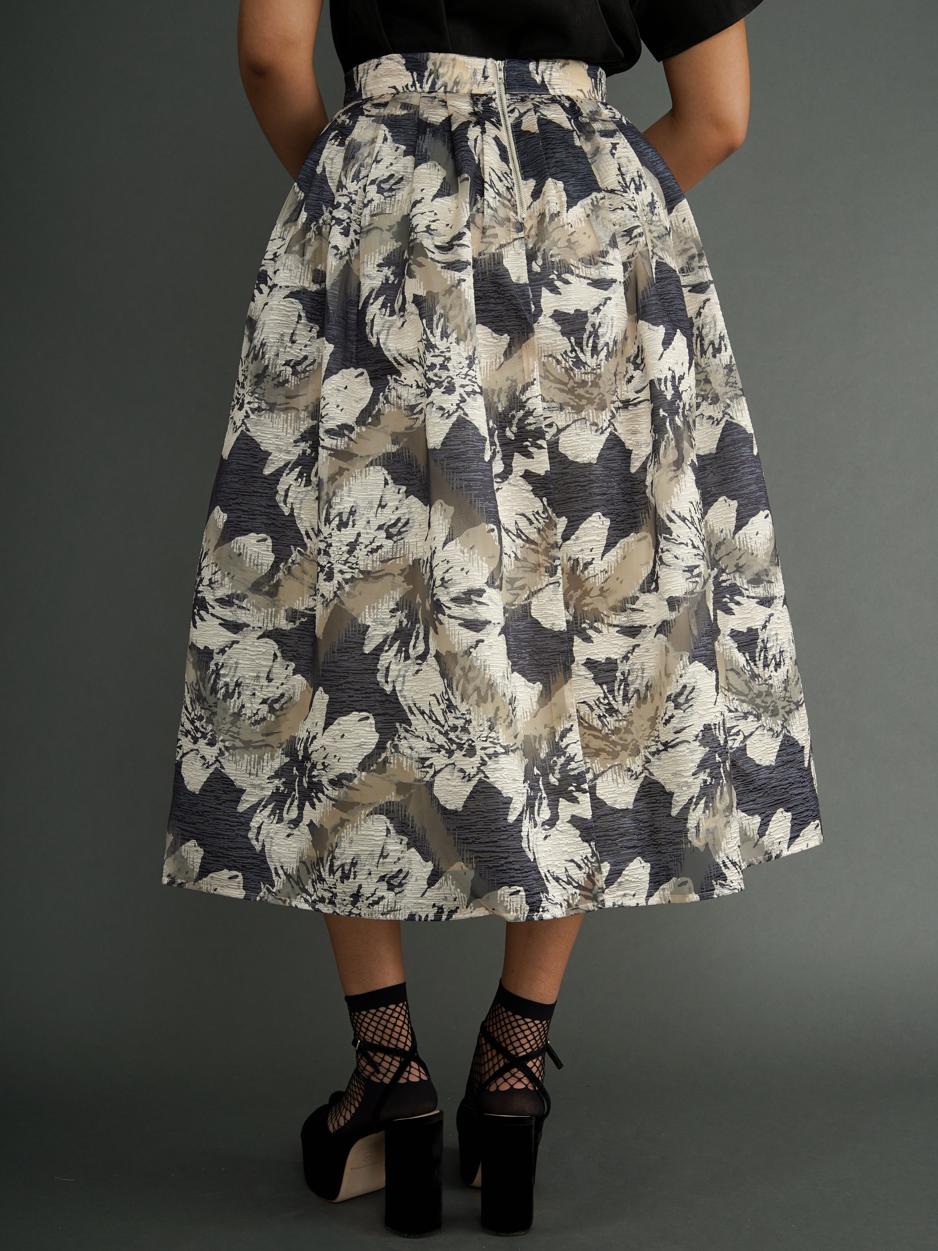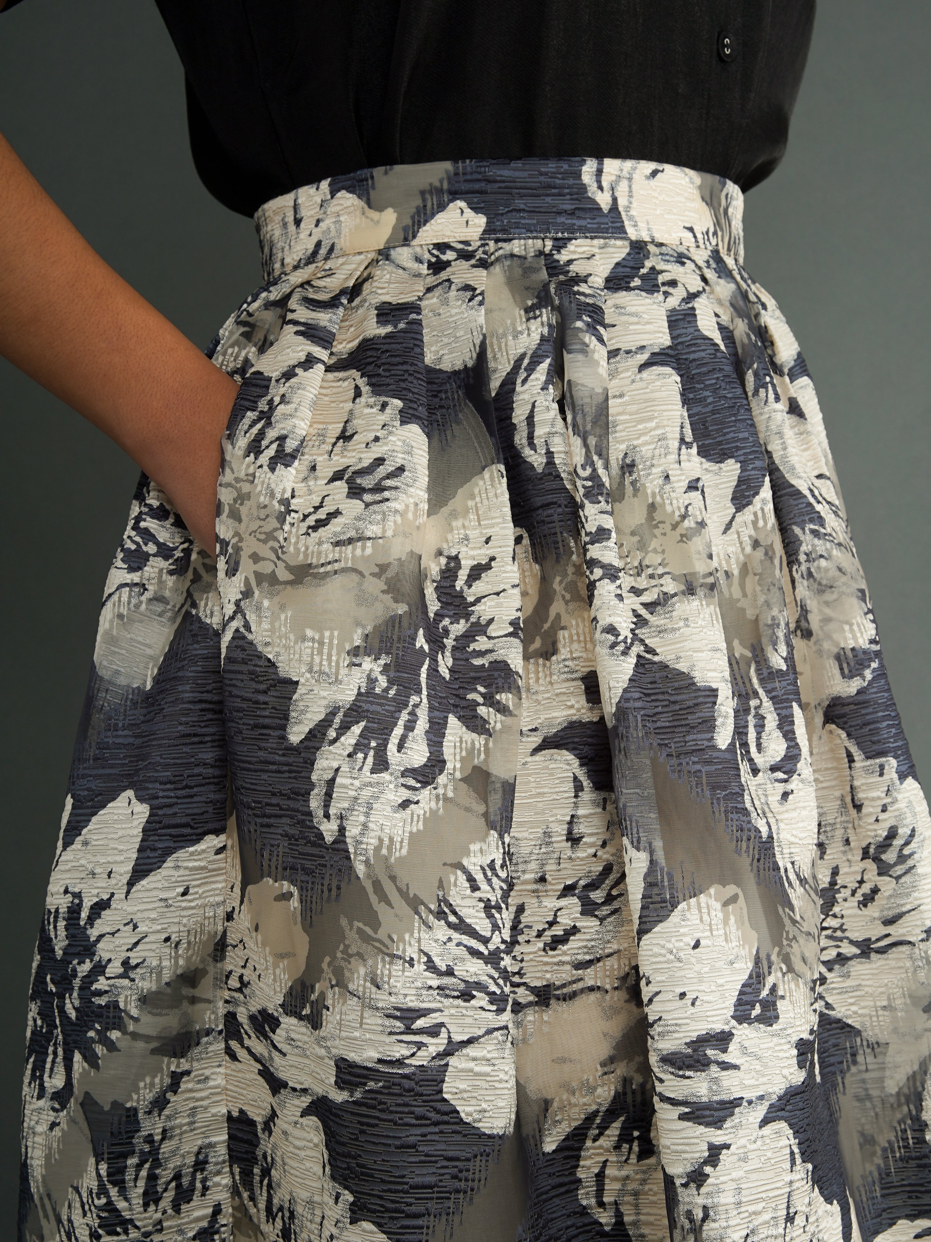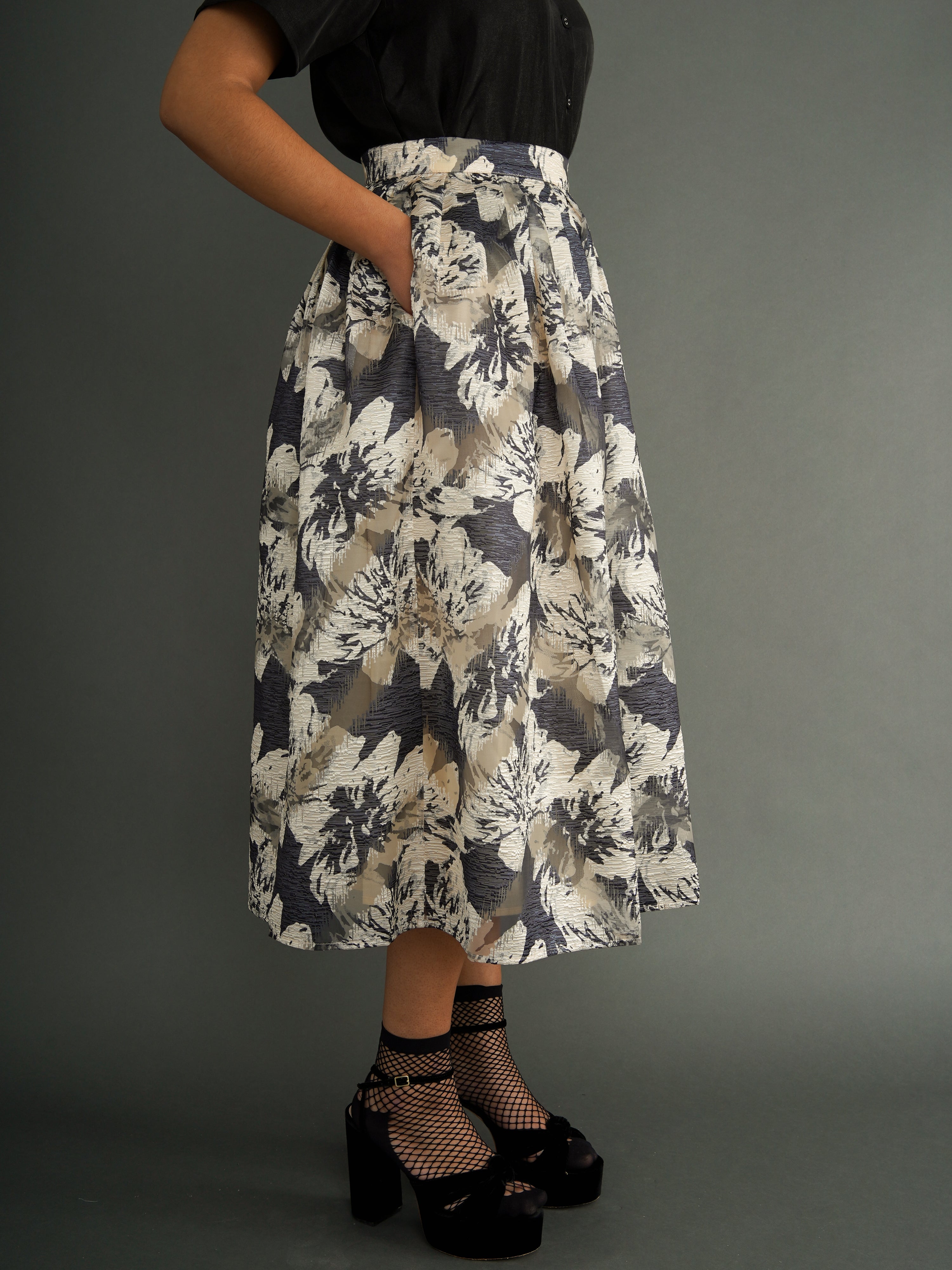 A skirt designed for movement and expression. The Omolara Skirt is cut from a silk-blend fabric with a soft sheen, pleated for volume and graceful drape. Its floral print is bold yet timeless—an elegant statement piece that elevates everyday wear and occasion dressing alike.