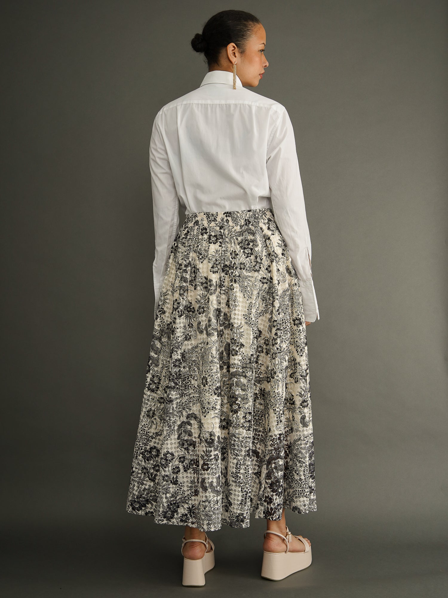 Panel construction. Full Maxi length. Elasticated at the waist. Swishy silhouette. Deep side pockets. Made in small batches.