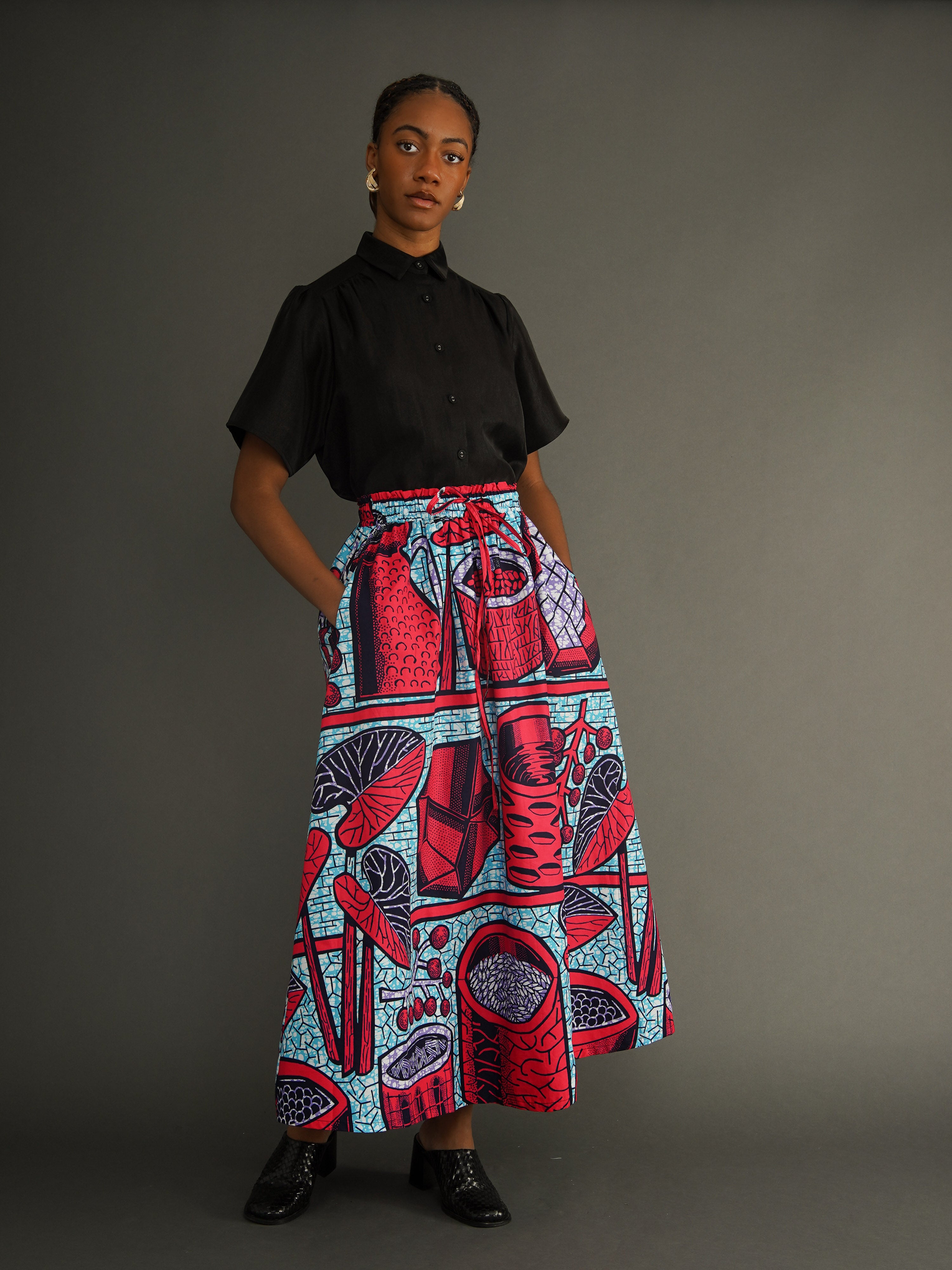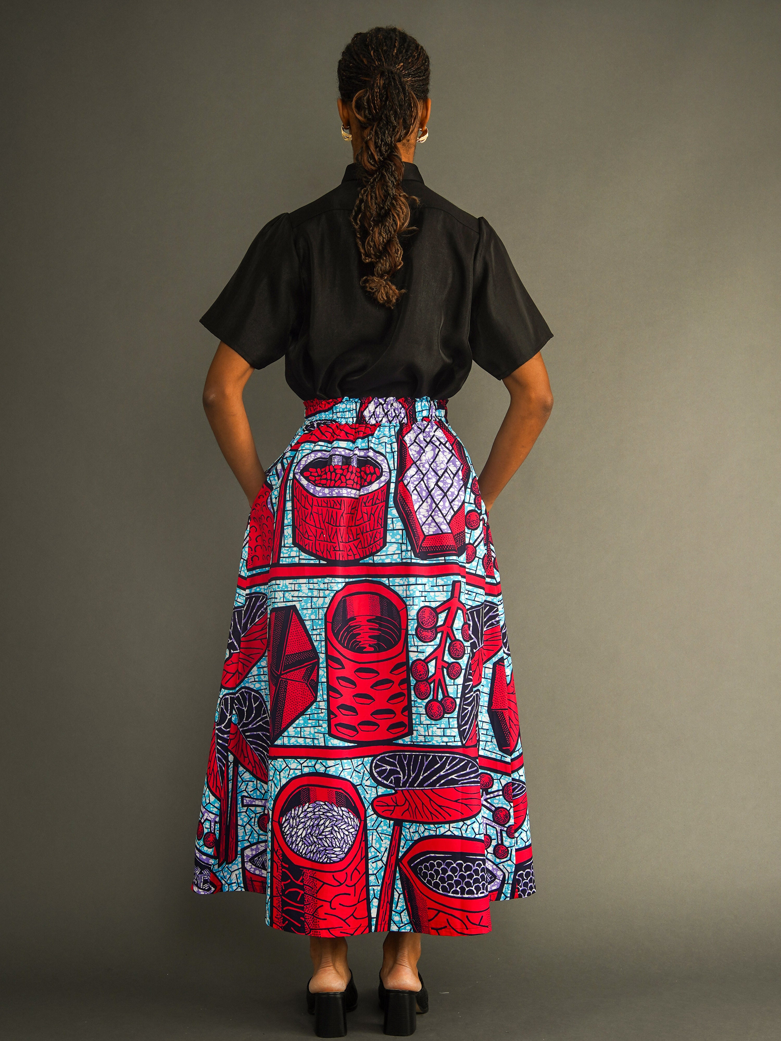 The Tina Maxi Skirt is a bold, easy-to-wear statement skirt made from vibrant Dutch wax cotton. Designed for comfort and impact, it’s the kind of piece that does the talking before you do.