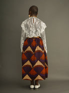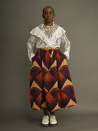 The Tokunbo Midi Skirt is crafted from Dutch wax cotton—bold in print, crisp in feel, and beautifully sculpted. Its gathered silhouette holds its shape and the elasticated waistband ensures comfort, while a matching belt allows for waist definition when you want it. Belt loops and deep side pockets add useful touches.