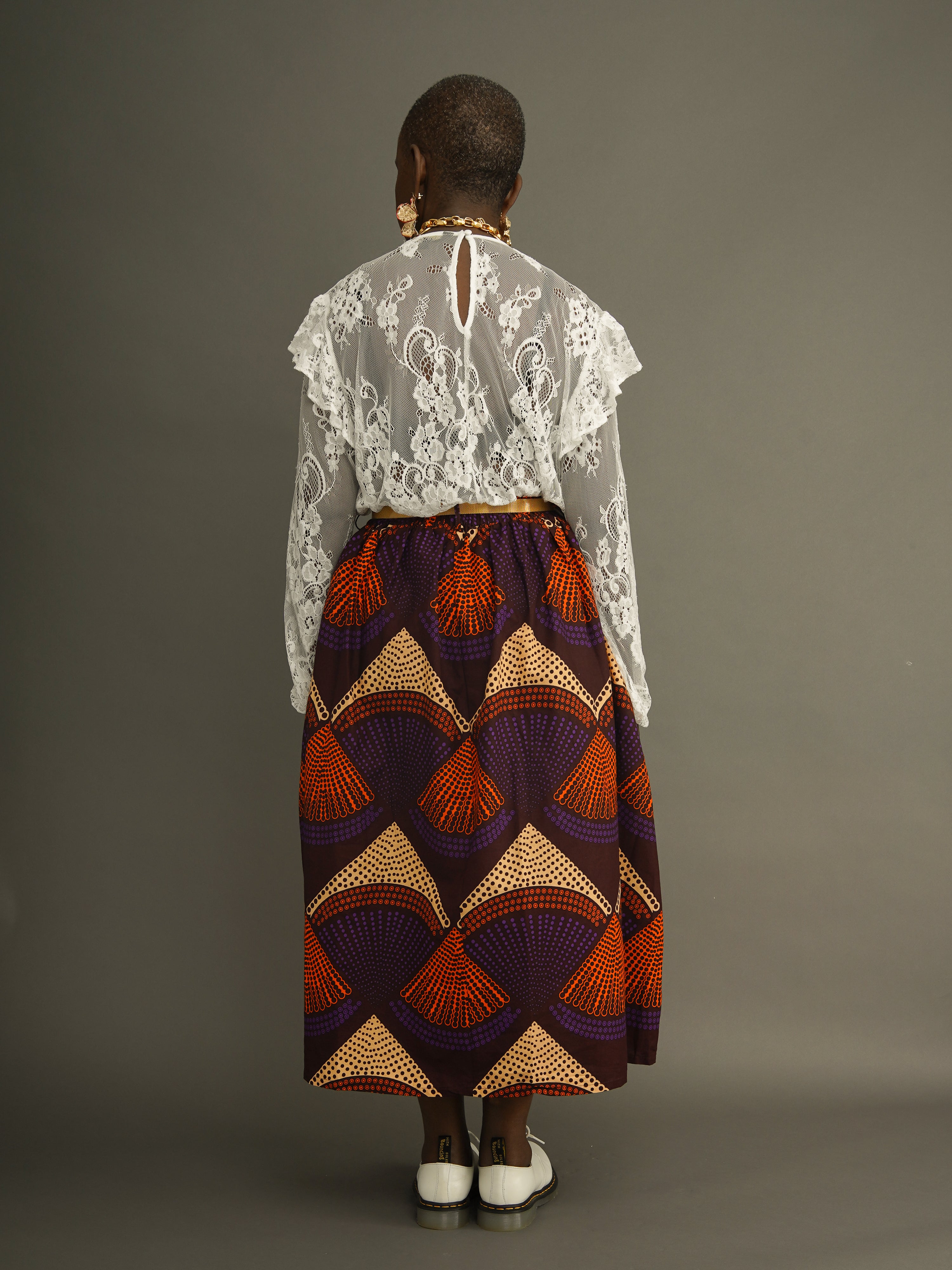 Tokunbo Midi Skirt – Oversized Structured Dutch Wax Cotton