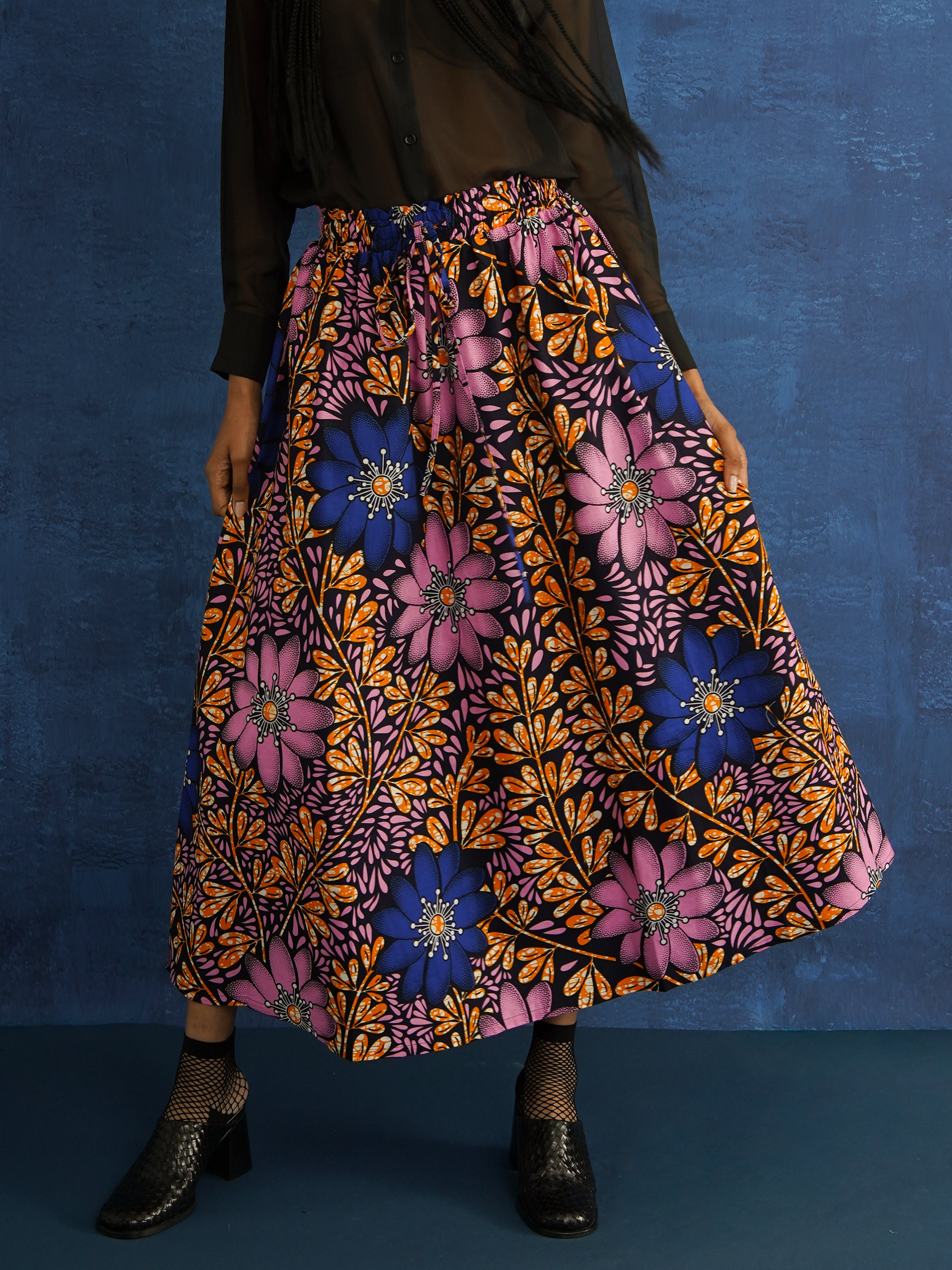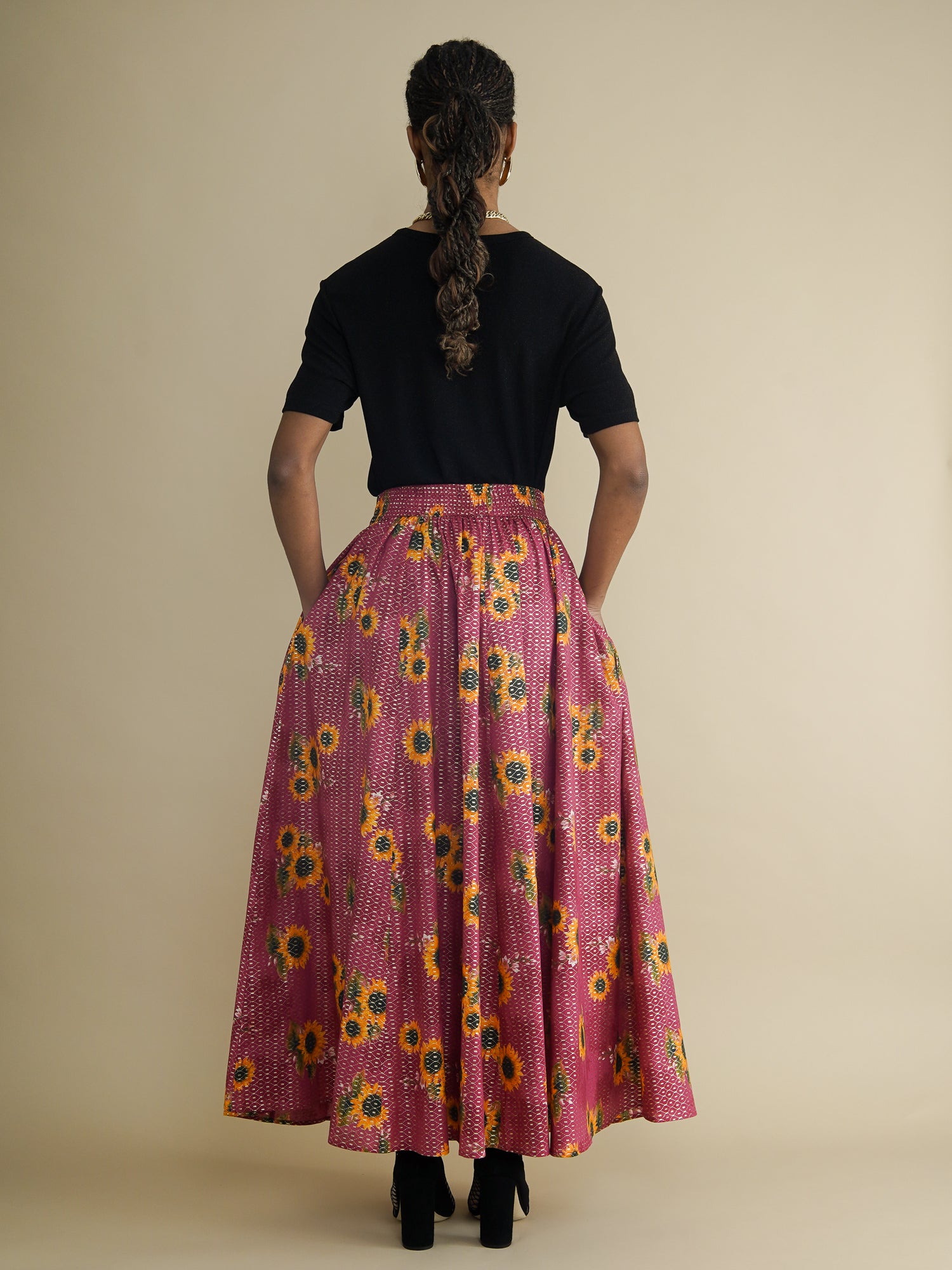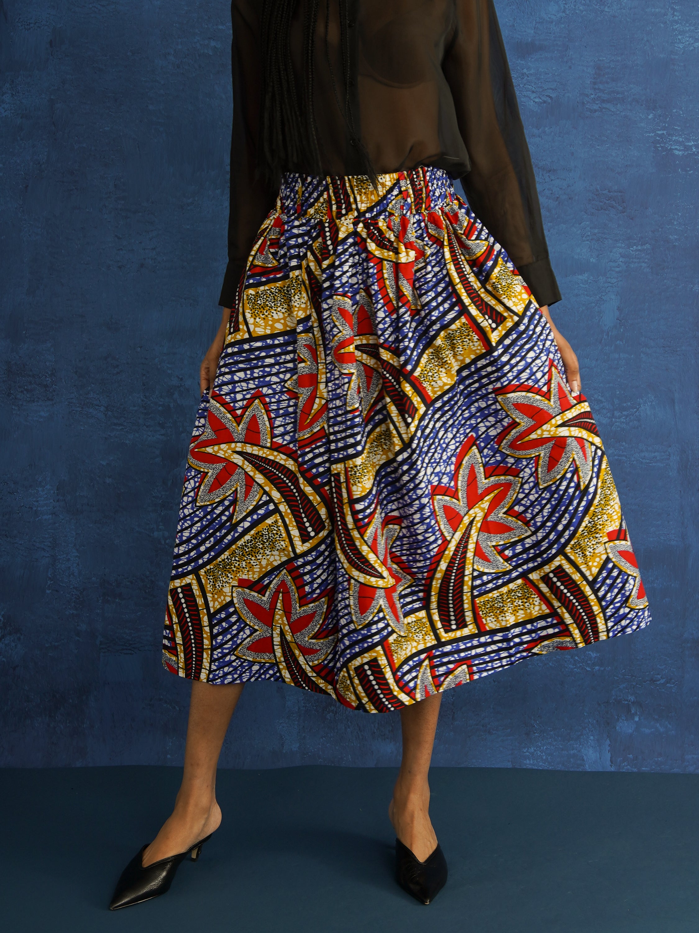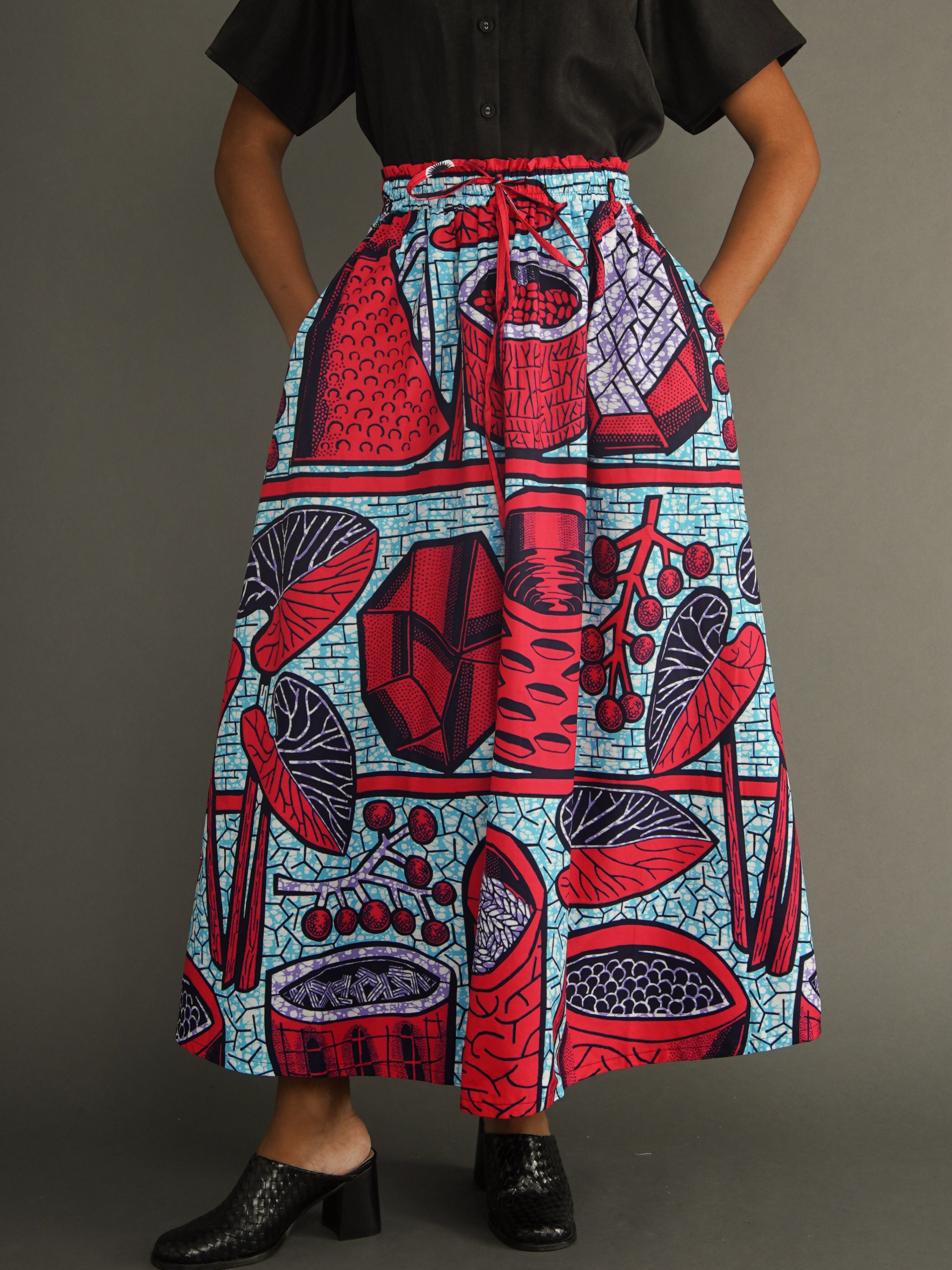 Statement skirts in bold African prints, with gathers, pockets, and breathable cotton for effortless movement.