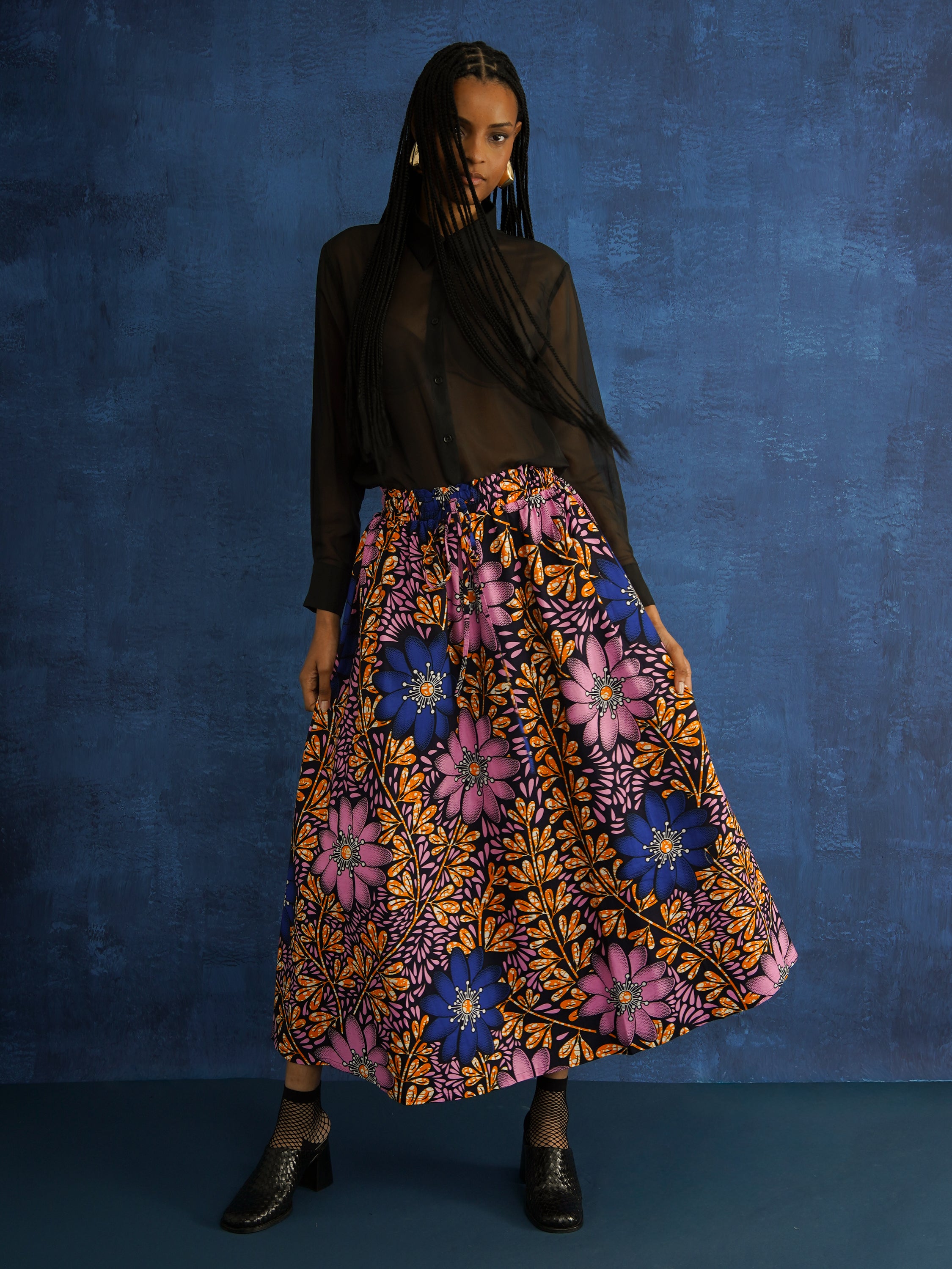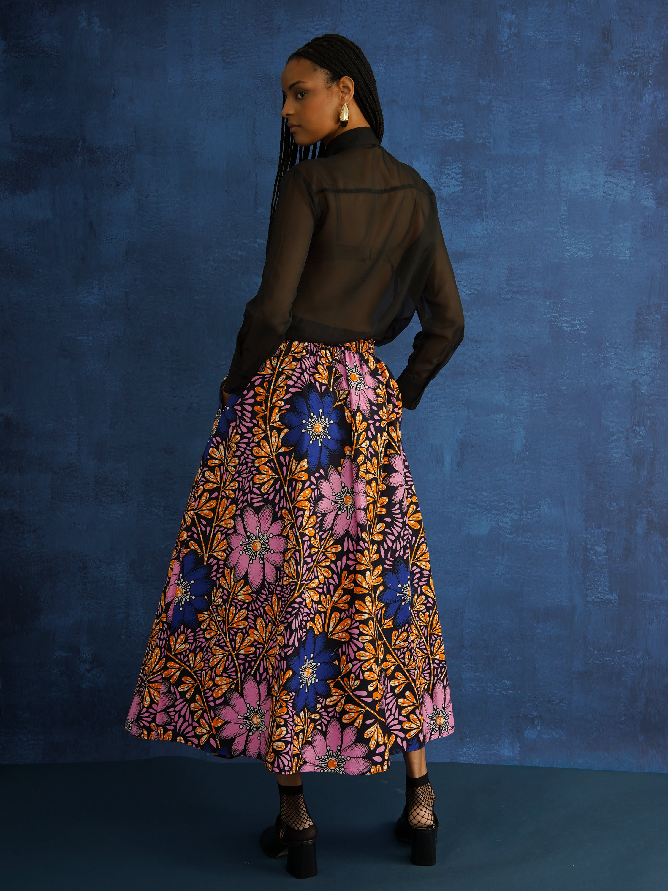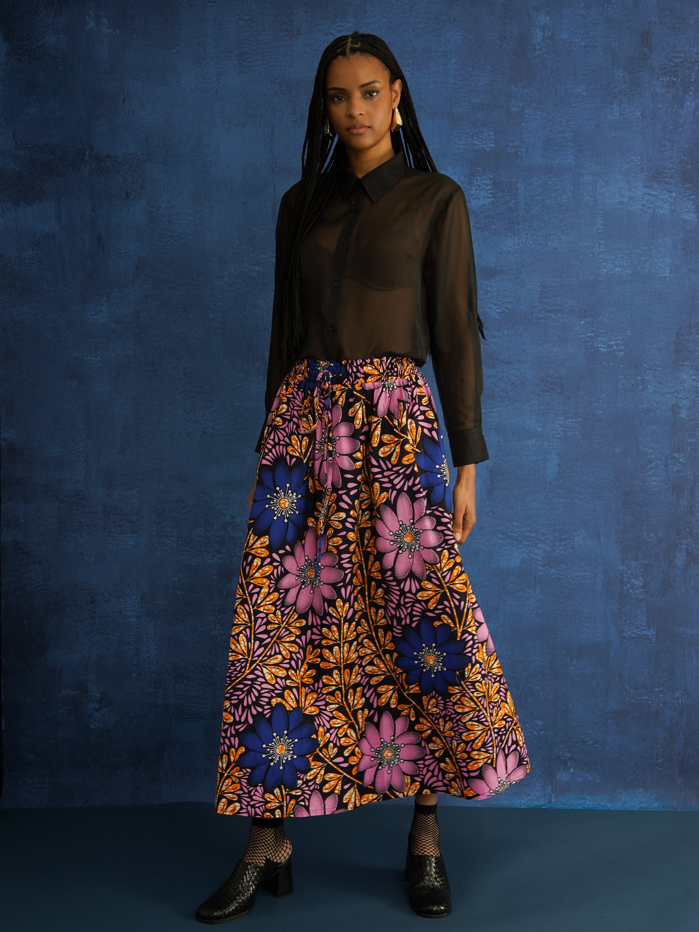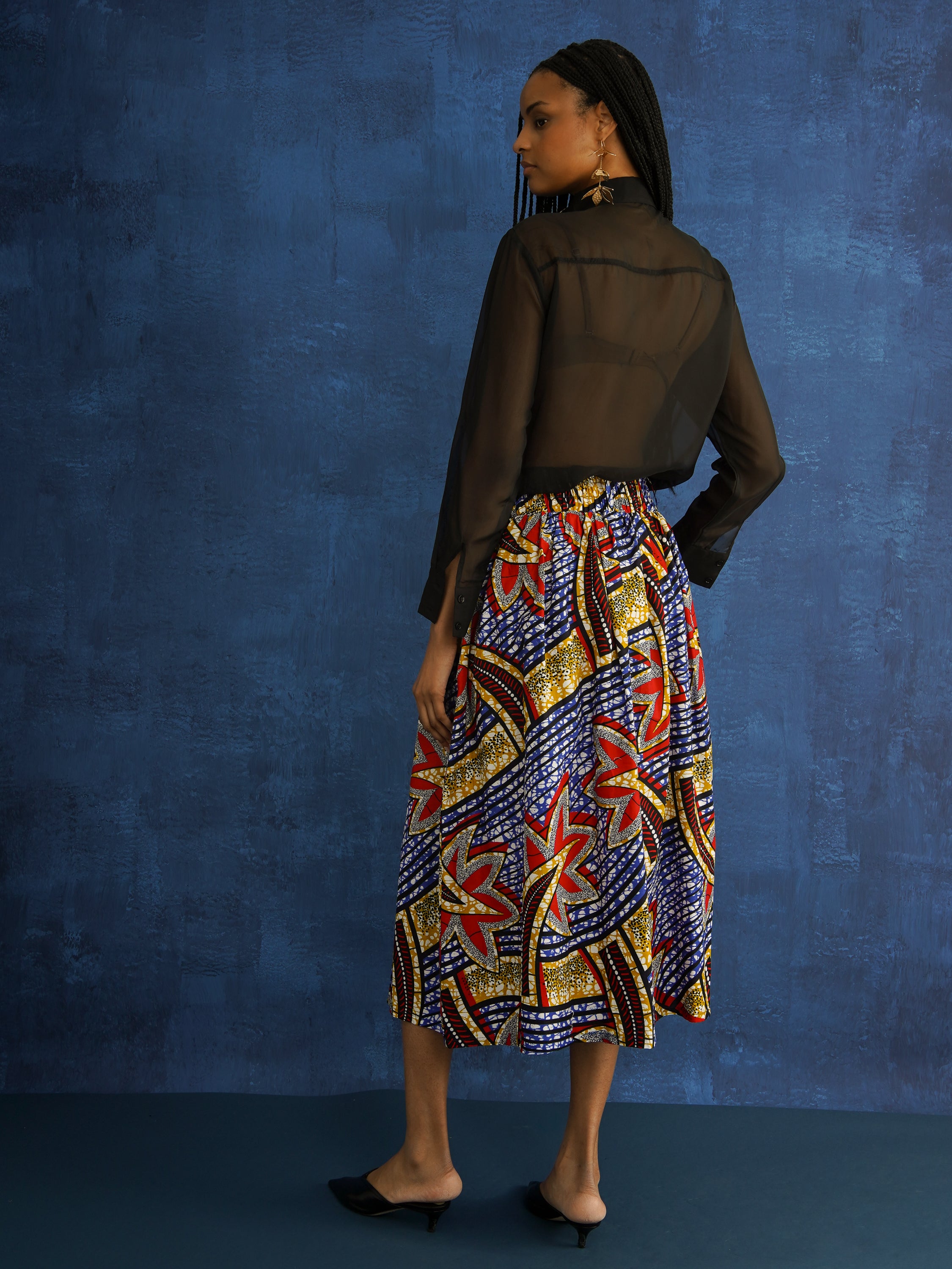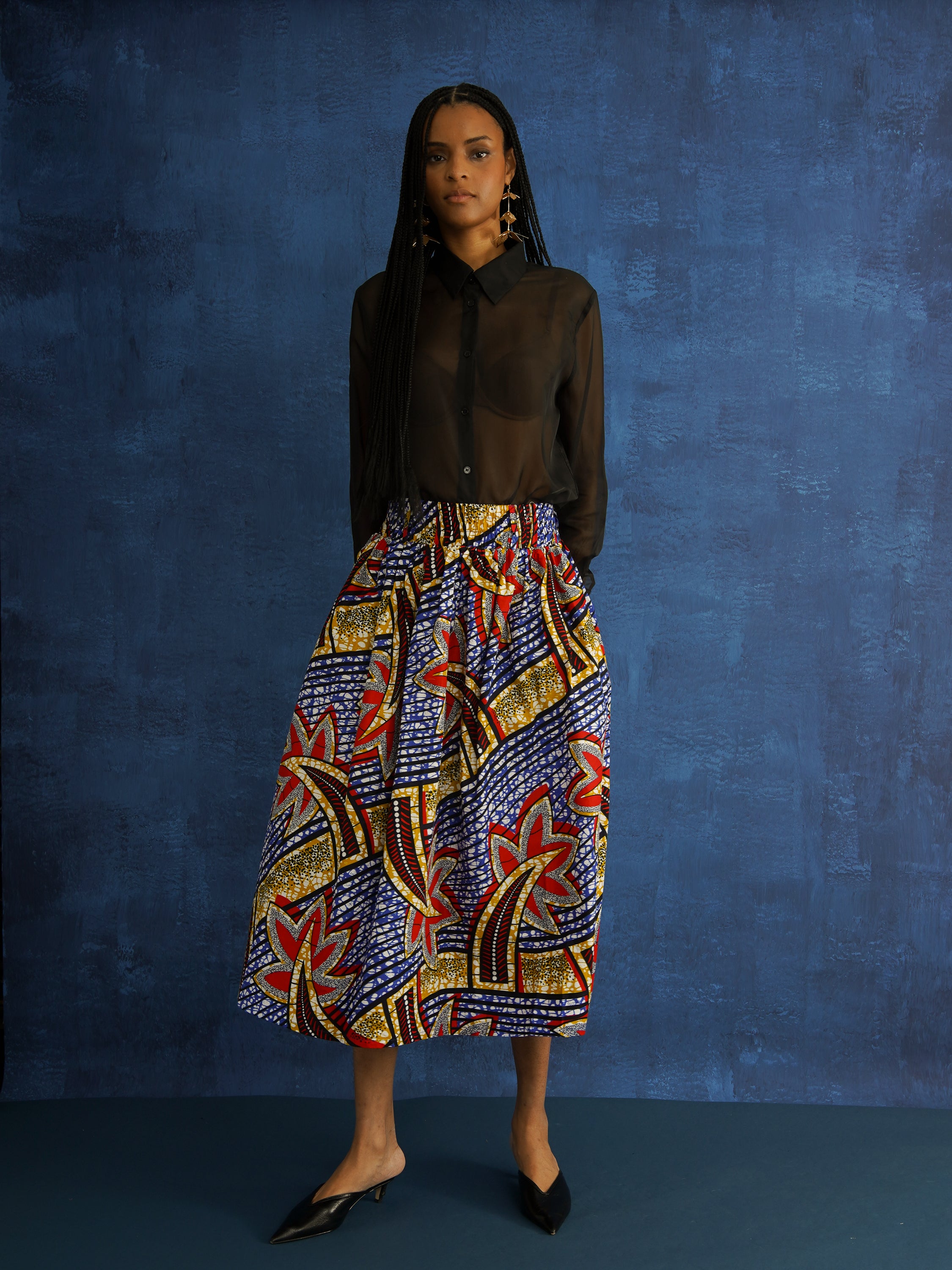 Statement skirts in bold African prints, with gathers, pockets, and breathable cotton for effortless movement.