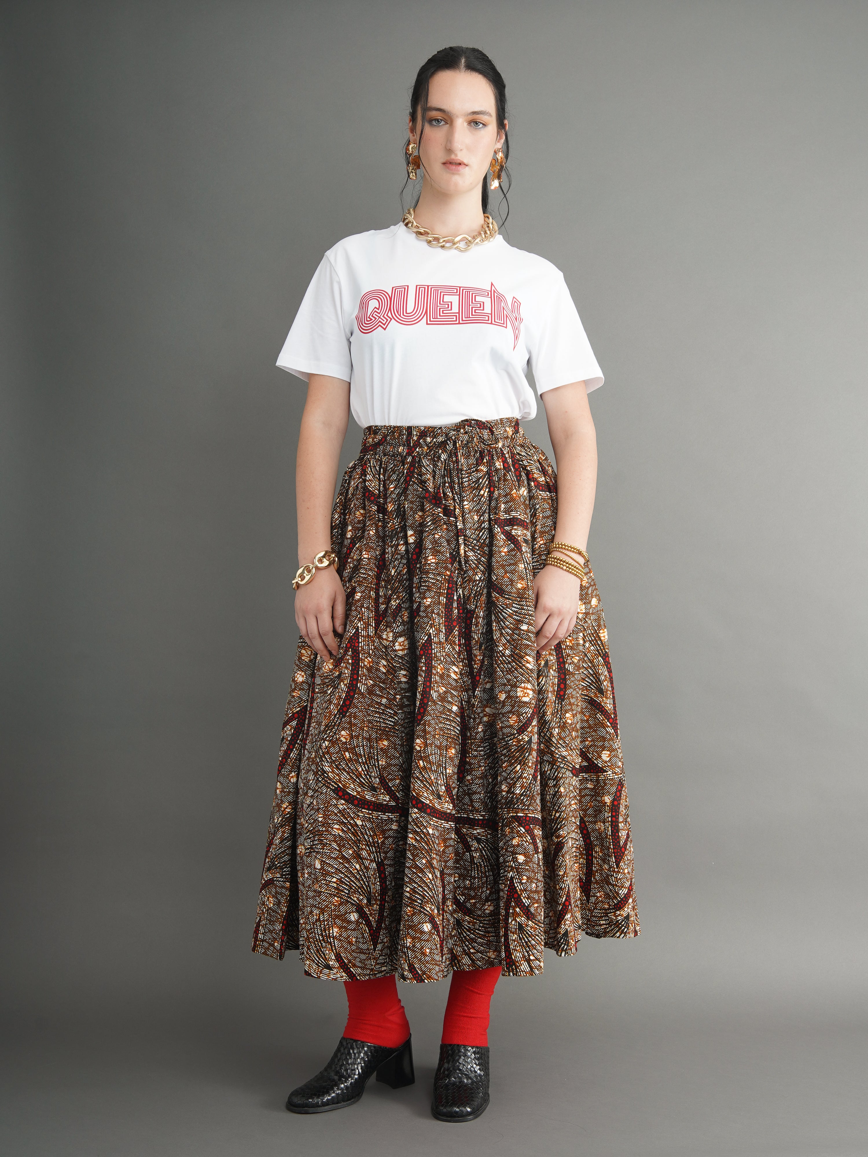 The bold and striking "Queen" slogan printed in vibrant is an empowering message that celebrates the power and strength of all women who are confident in their skin and unapologetically themselves.