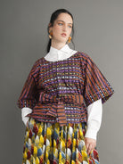 Drawing inspiration from the traditional attire that is worn by women of the Yoruba tribe in Nigeria, Yvonne has created a modern and versatile belted version that can be worn with a skirt or a pair of jeans by any woman.