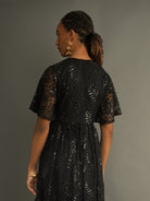 Cut with a round neckline, lightly fitted bodice, and short flared sleeves, the dress flows into a voluminous gathered and tiered skirt. It moves beautifully, giving presence with every step. Tamilore is fully lined for comfort and ease, with the sleeves left unlined so the lace detail can shine through. And of course, it has side seam pockets, because usefulness is beautiful too.
