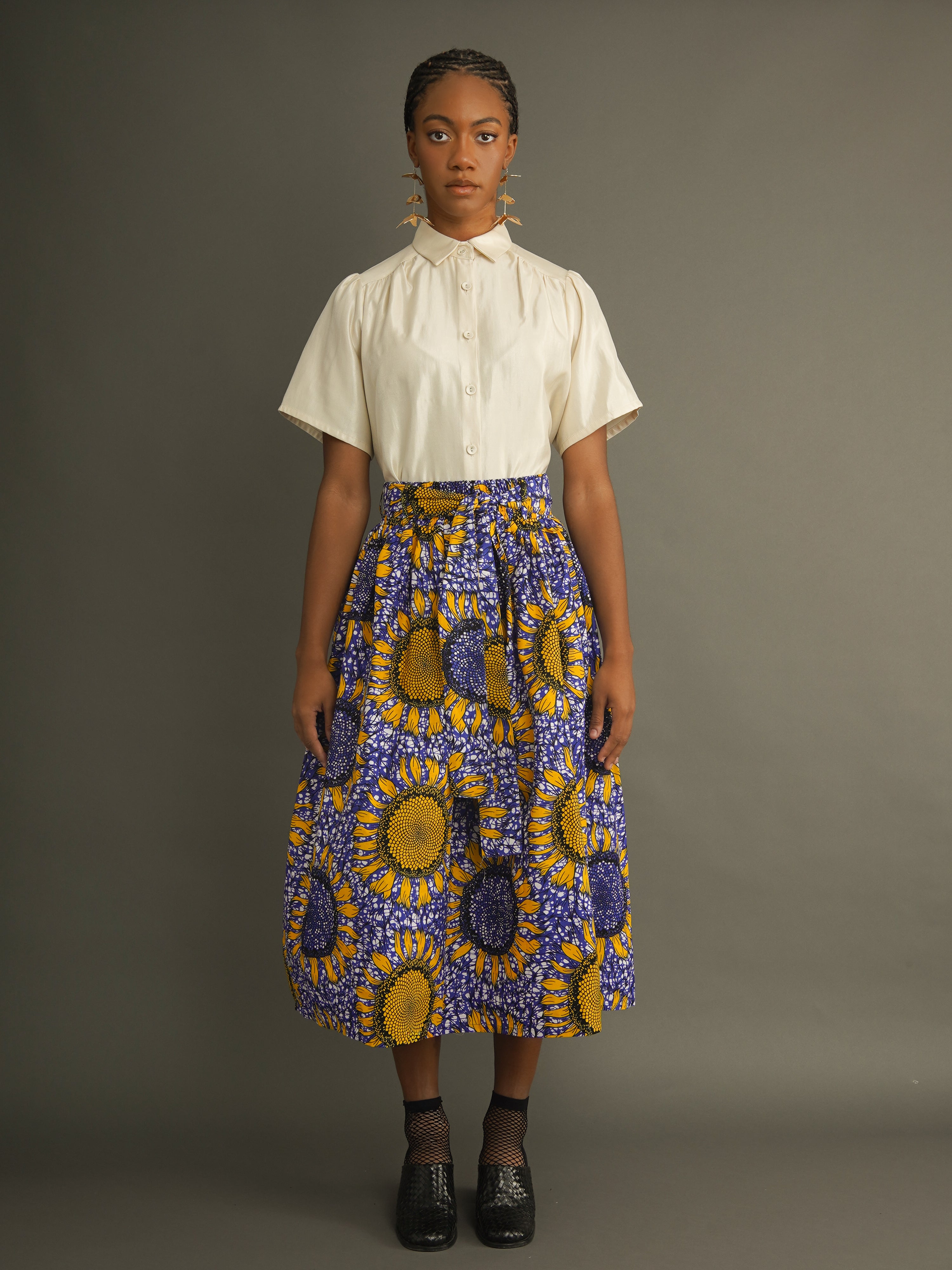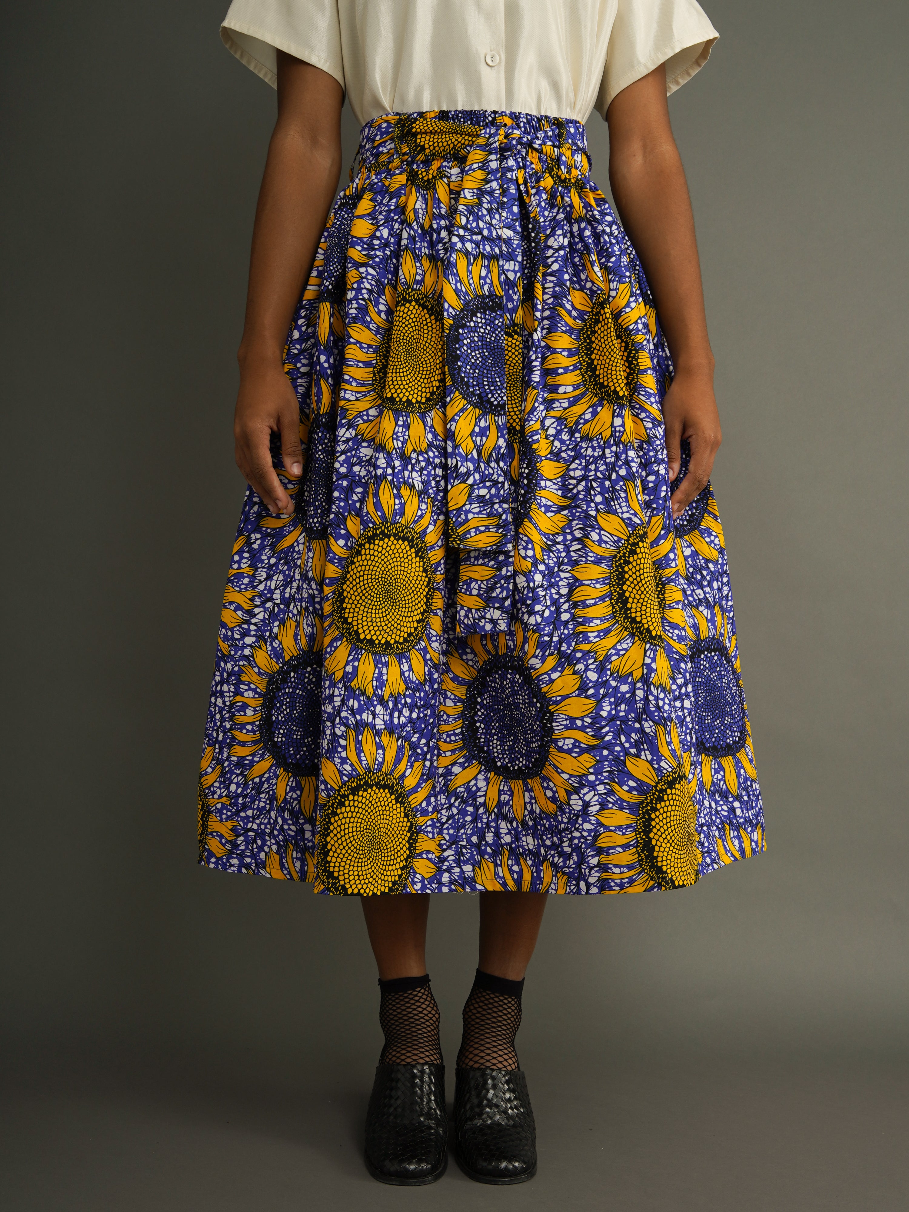 Amelie Cotton Midi Skirt – Structured Dutch Wax Cotton