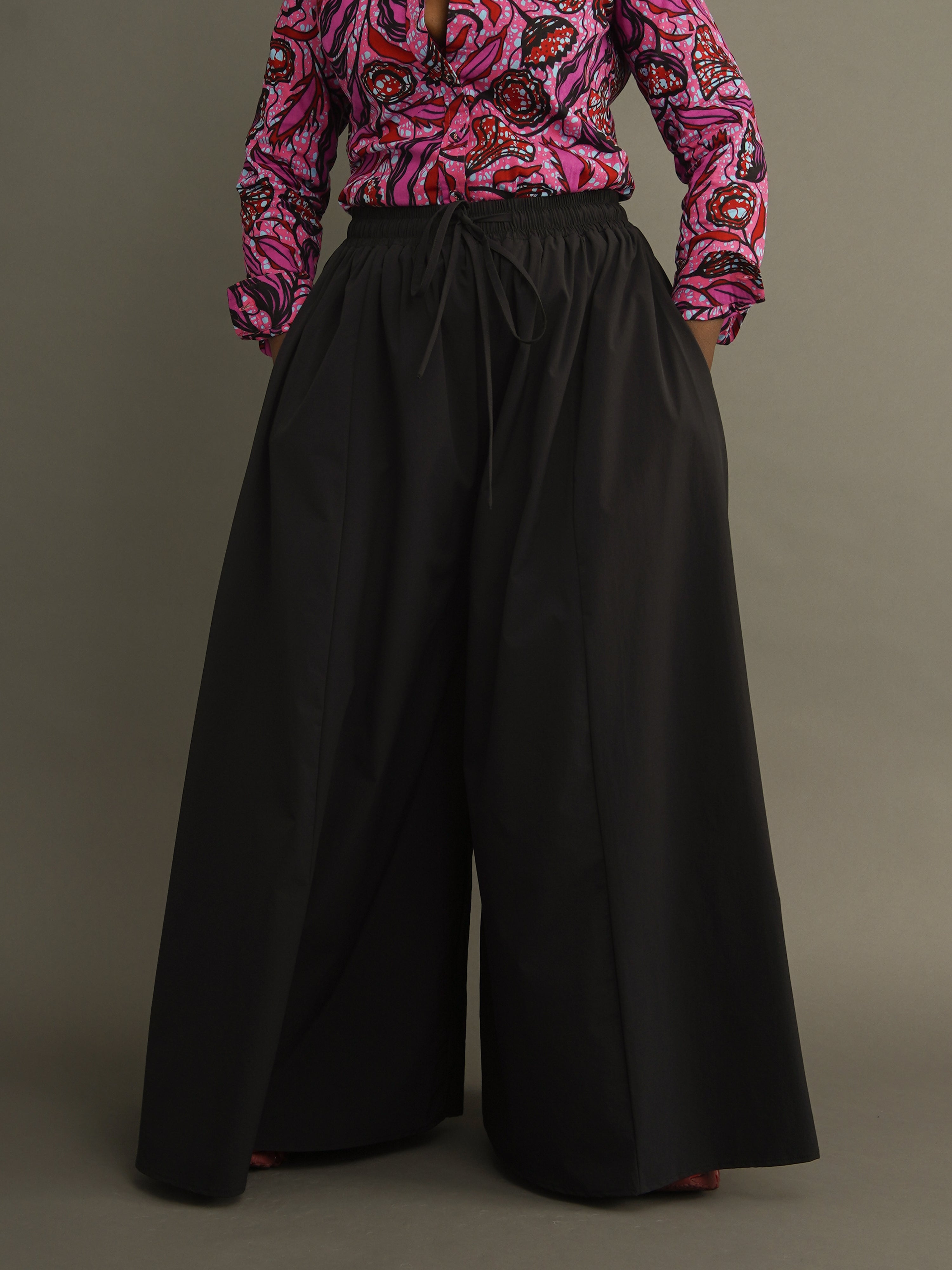 A drawstring elasticated waist. Wide flowing legs. Lined with cotton.Made in small batches. No restocks, no repeats—just yours